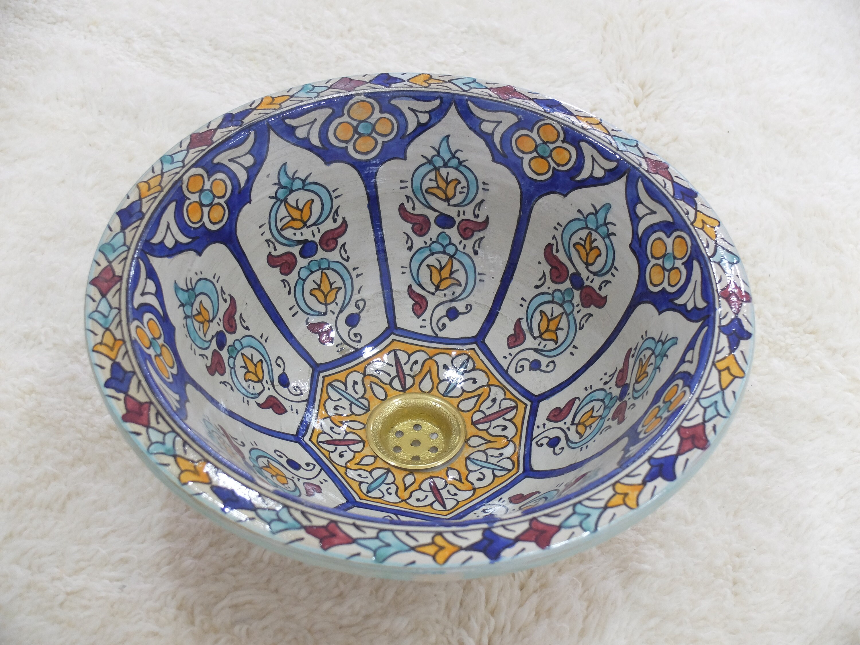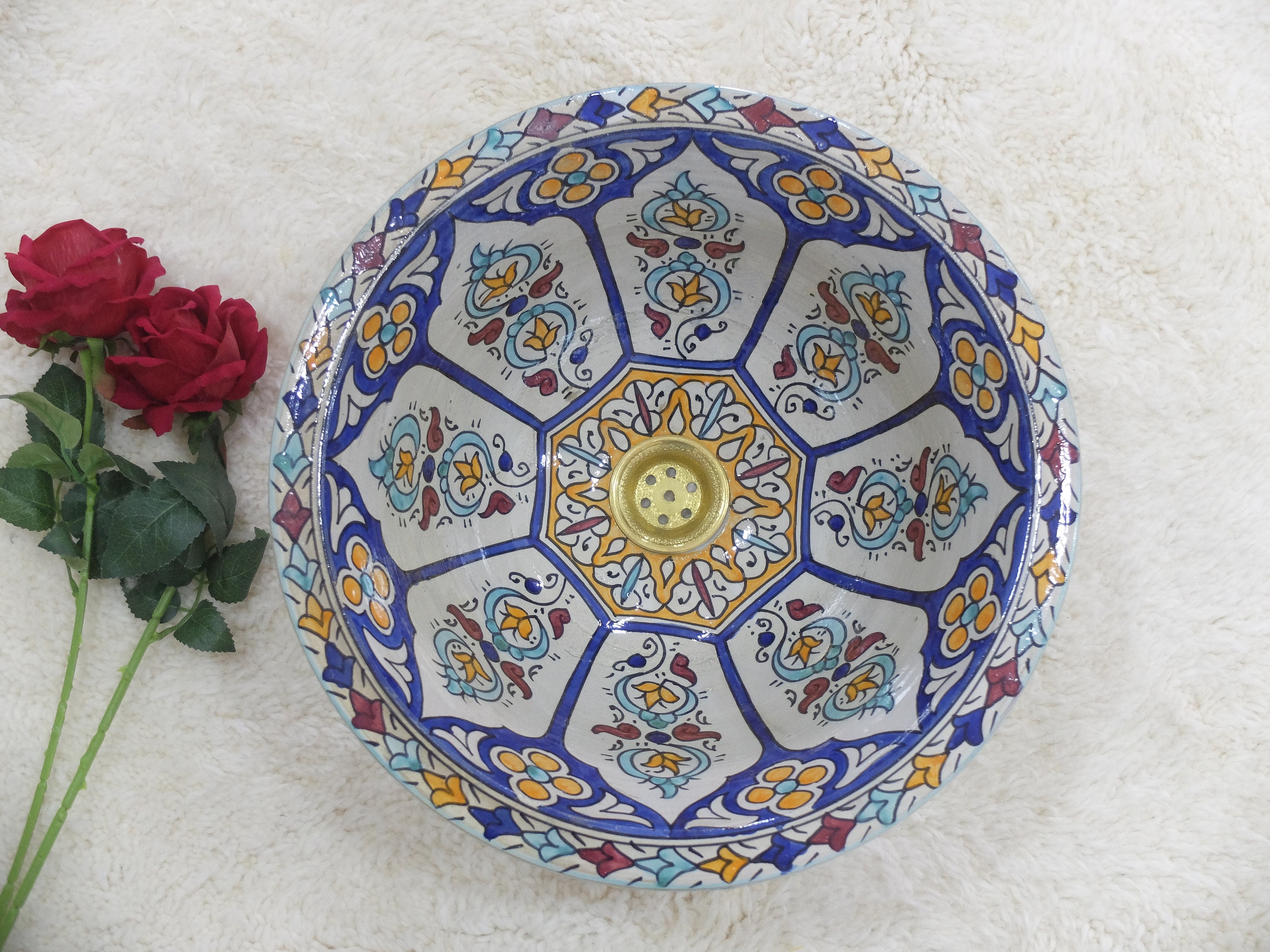 Moroccan ceramics is most representative handicraft of the local culture, include vases,washbasin sinks, plates, pots, dishes, and bowls in a gorgeous traditional design, handmade hand painted by artisans, a great centre piece for bathrooms or kitchens.The moroccan sink will definitely help you to obtain a more personal and beautiful style of your bathroom.