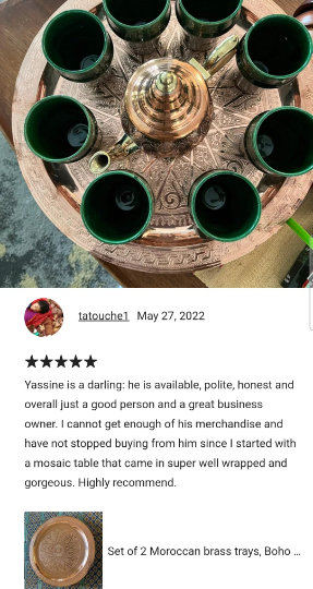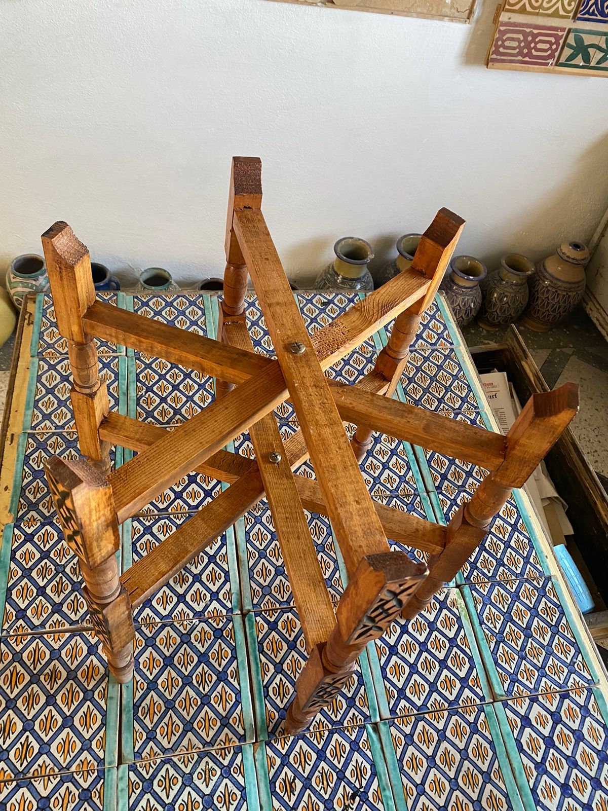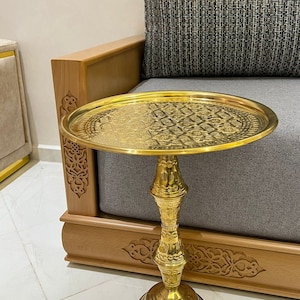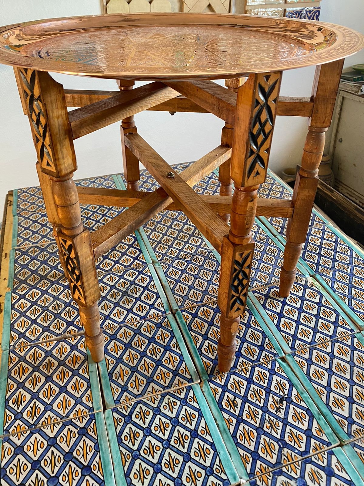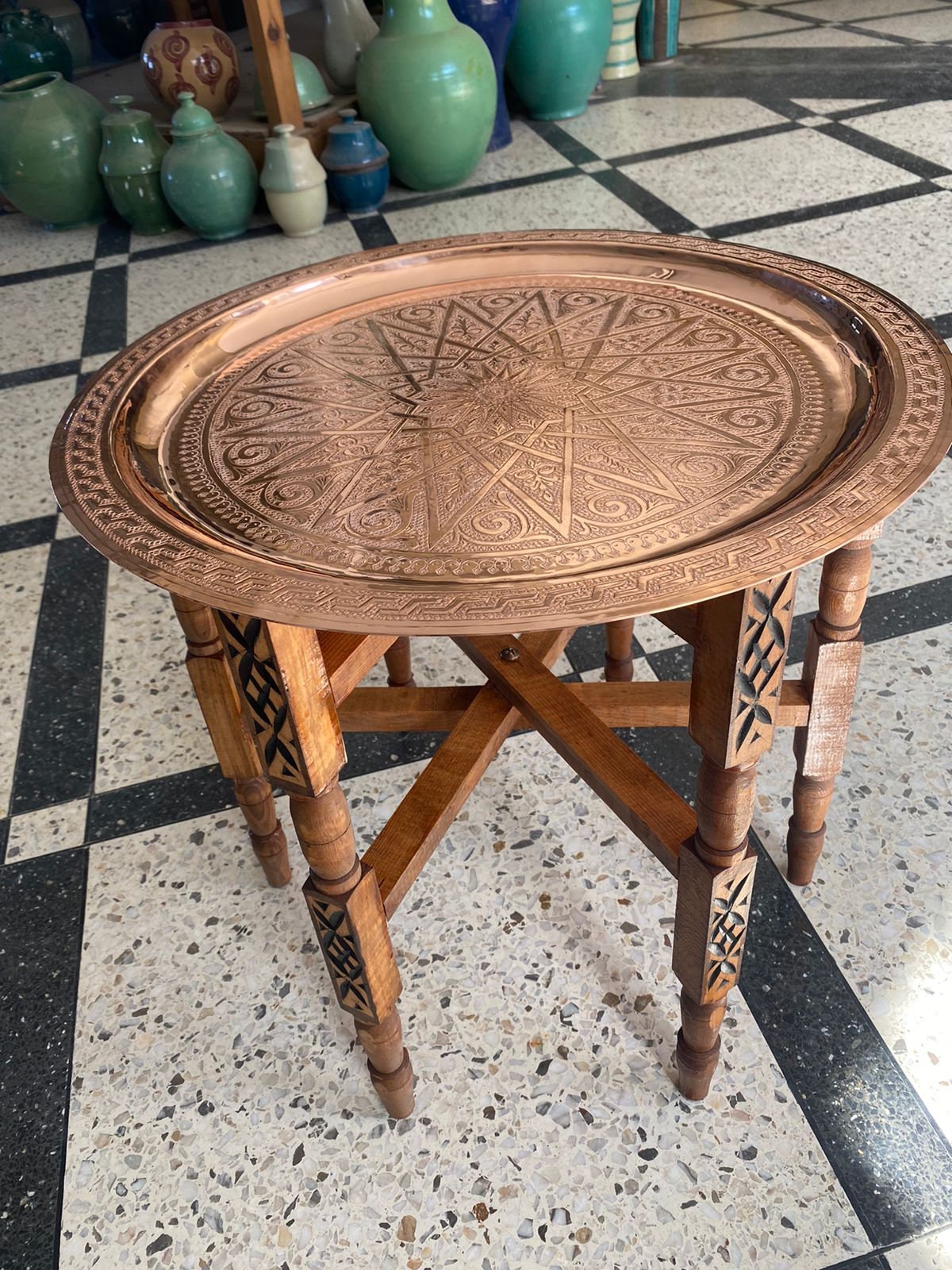 We all know and are certain that Moroccan tea is one of the most delicious types of tea that exist in the world, and when we say Moroccan tea we mean family, friends, lovers, and a hand-carved copper tea tray table like the one we offer because you have a golden copper tray engraved by the most skilled craftsmen, with Table Wood Stand Support Legs and each inscription means something from Moroccan traditions makes your home look like a palace or a castle, especially if you collect some of the beautiful copper decorations such as trays, candle holders, authentic Berber rugs and a beautiful teapot. It's just like u are in some berber Mountains