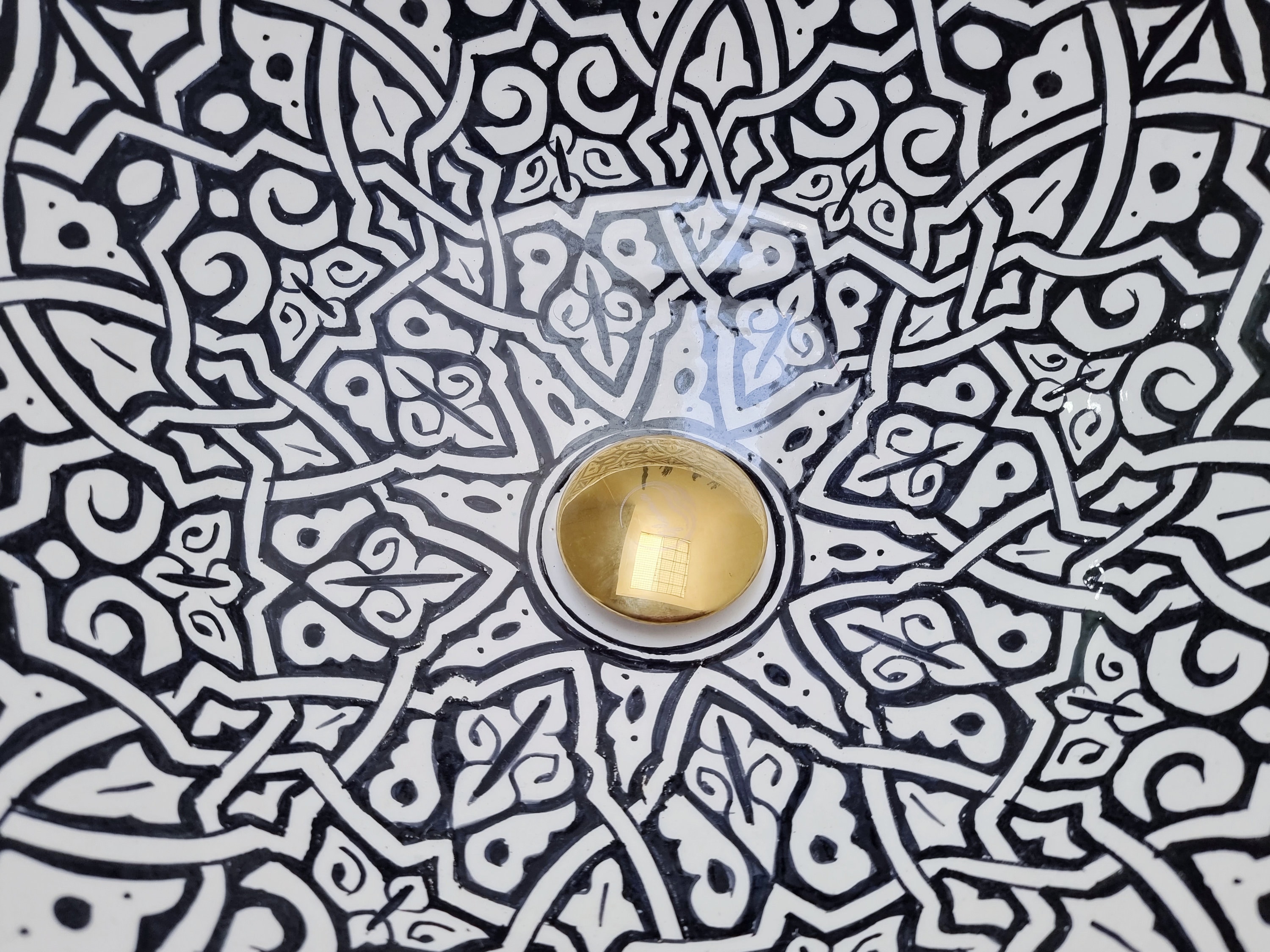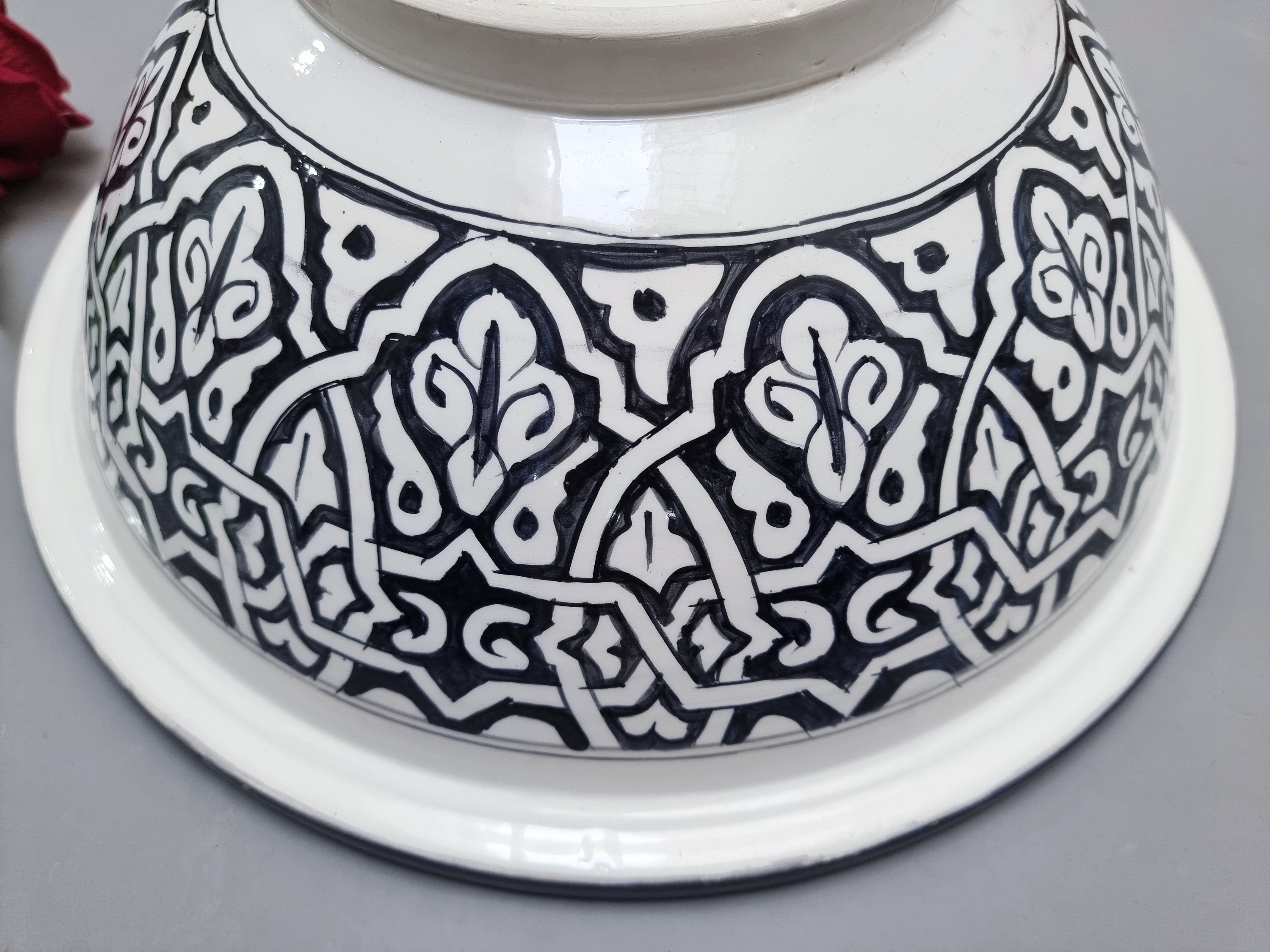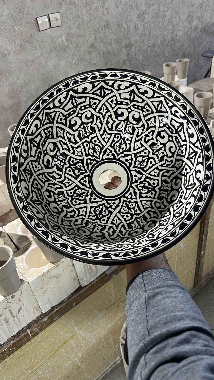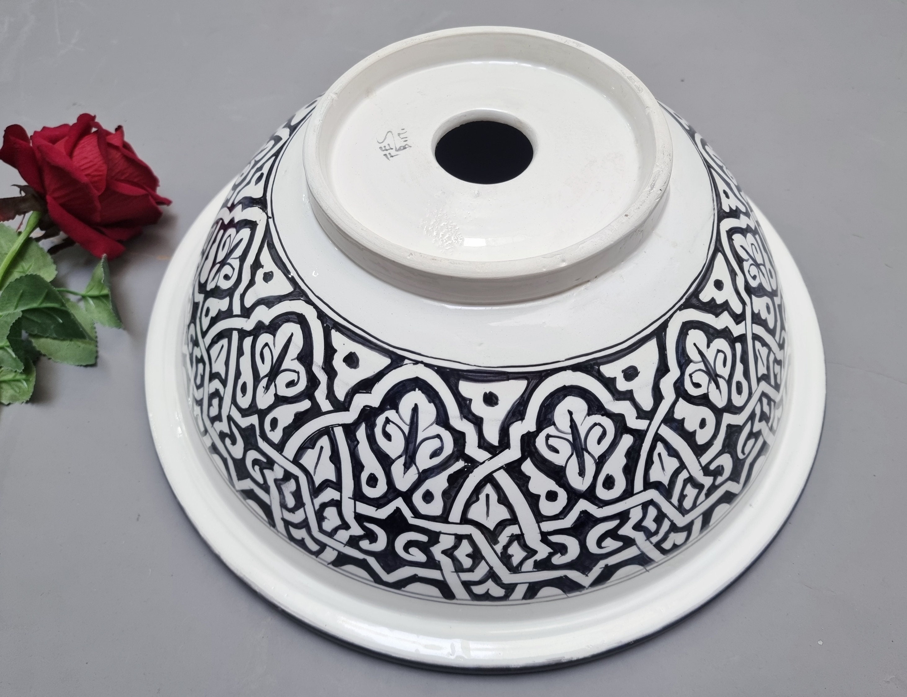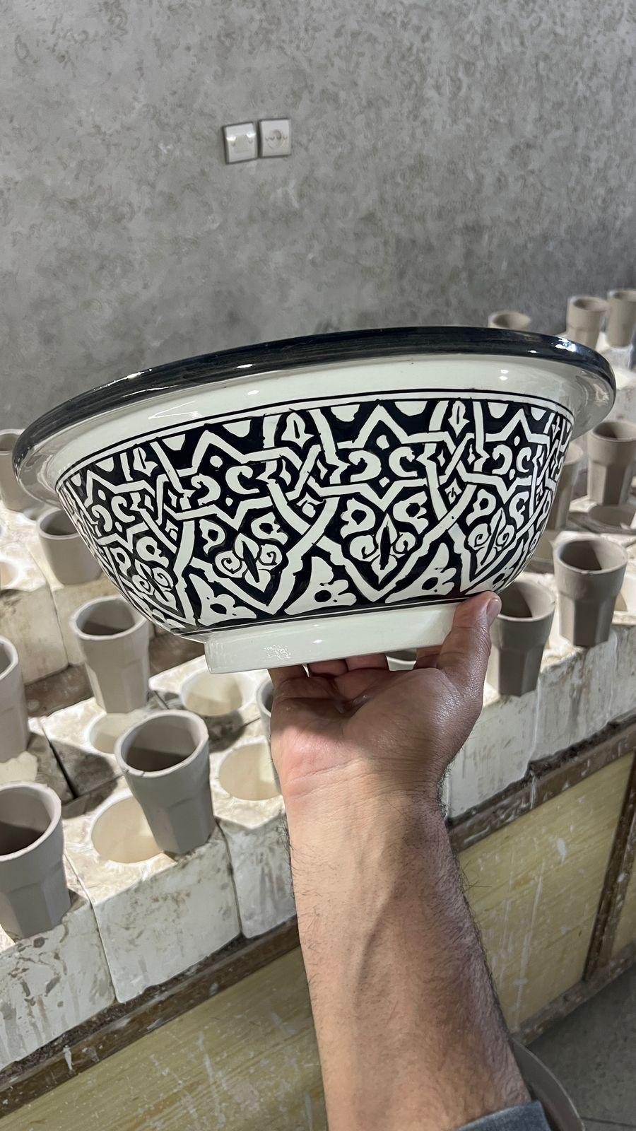 This beautiful Moroccan round ceramic sink is handcrafted by skilled artisans in Fes, made from high-quality clay, and features intricate hand-painted designs with a smooth glazed finish. Made from high-quality ceramic, it is durable, easy to clean, and perfect for bathrooms, kitchens, or powder rooms. Its timeless design adds a touch of Moroccan elegance to any space. The sink comes with both silver and copper drains included for free. Each piece is truly unique, and as a result, minor imperfections are to be expected. If you need a different size, feel free to contact us.