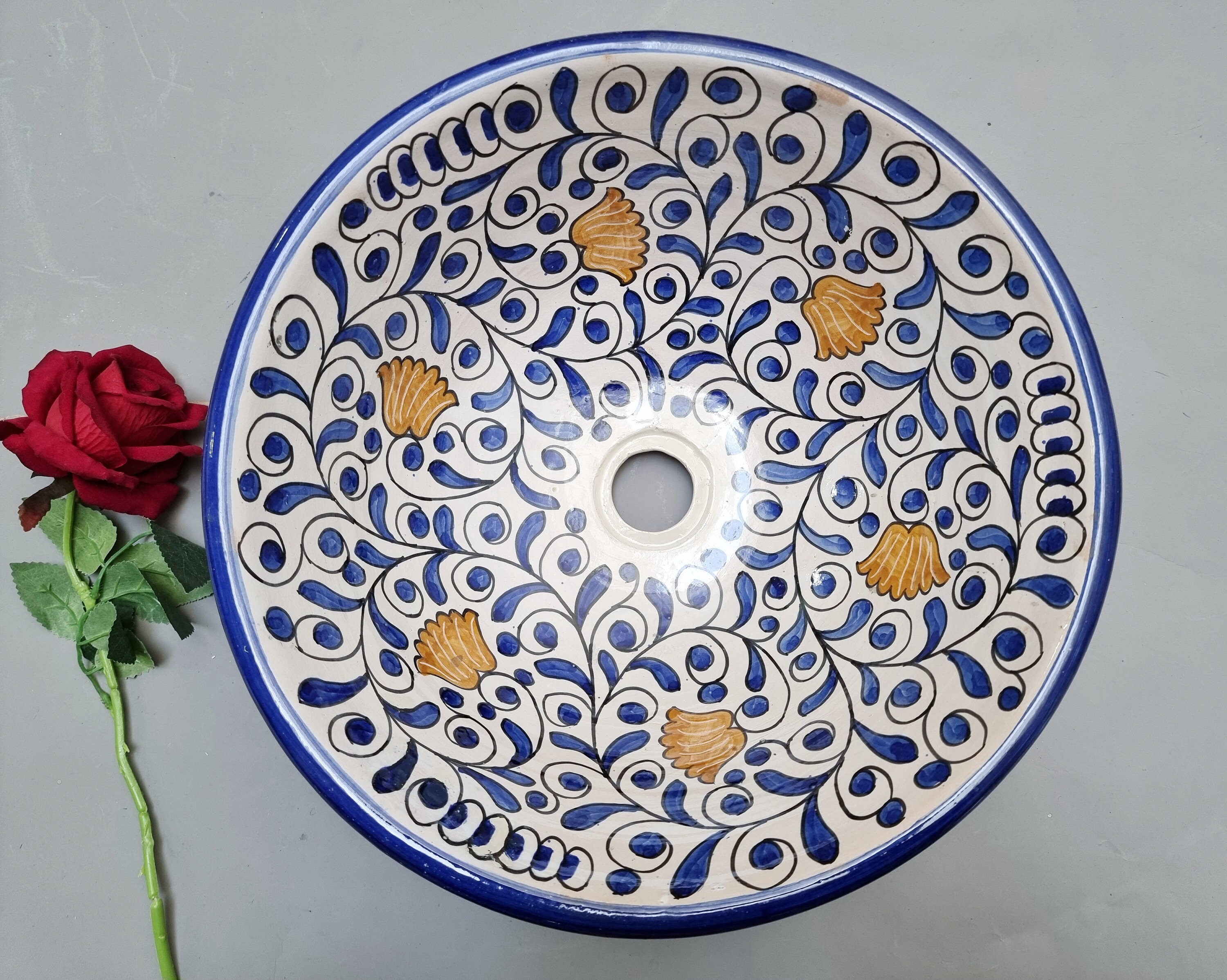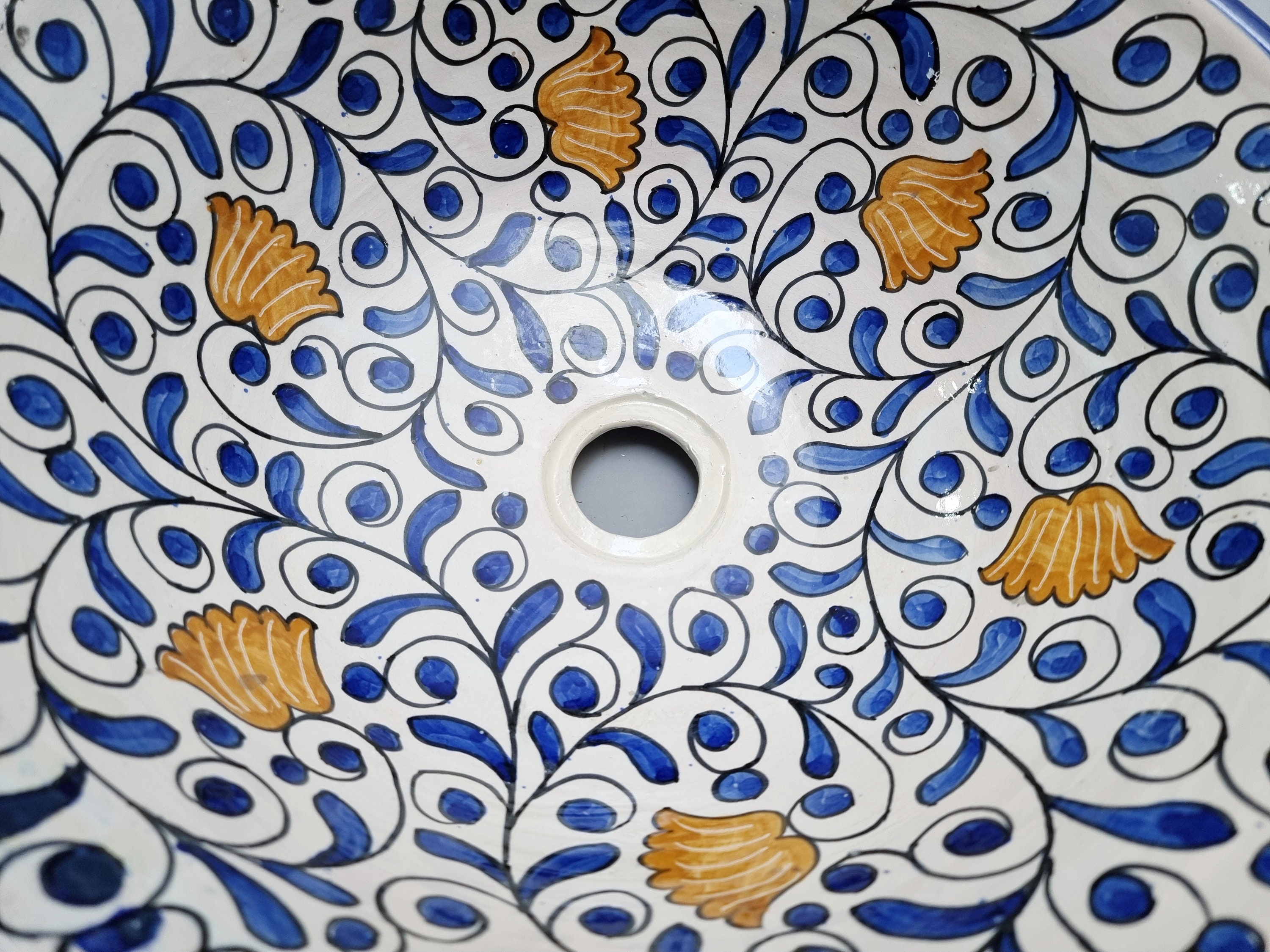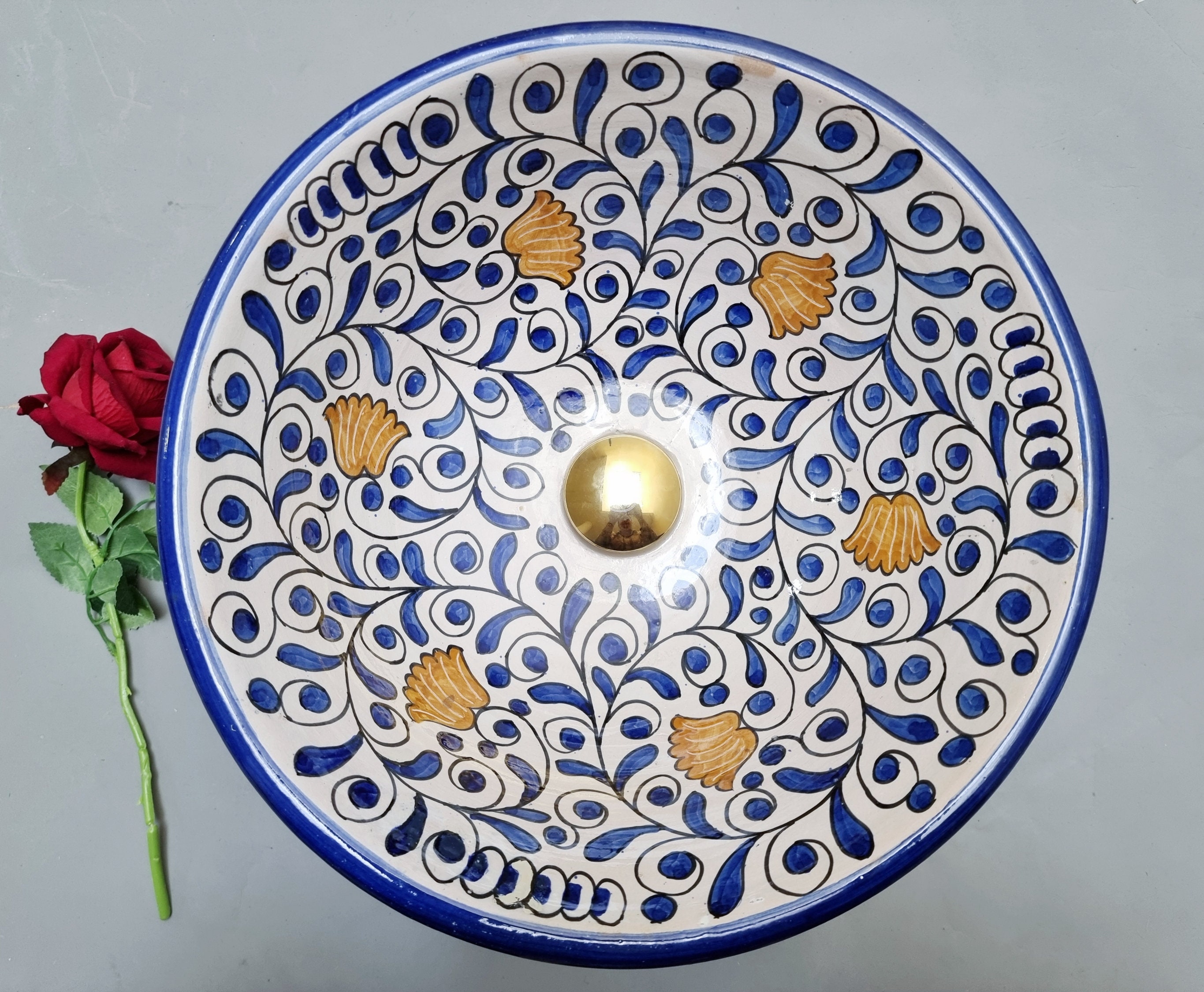 Handpainted Moroccan Ceramic Sink: Bathroom Kitchen Decor