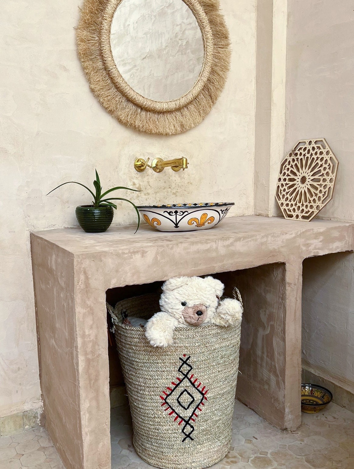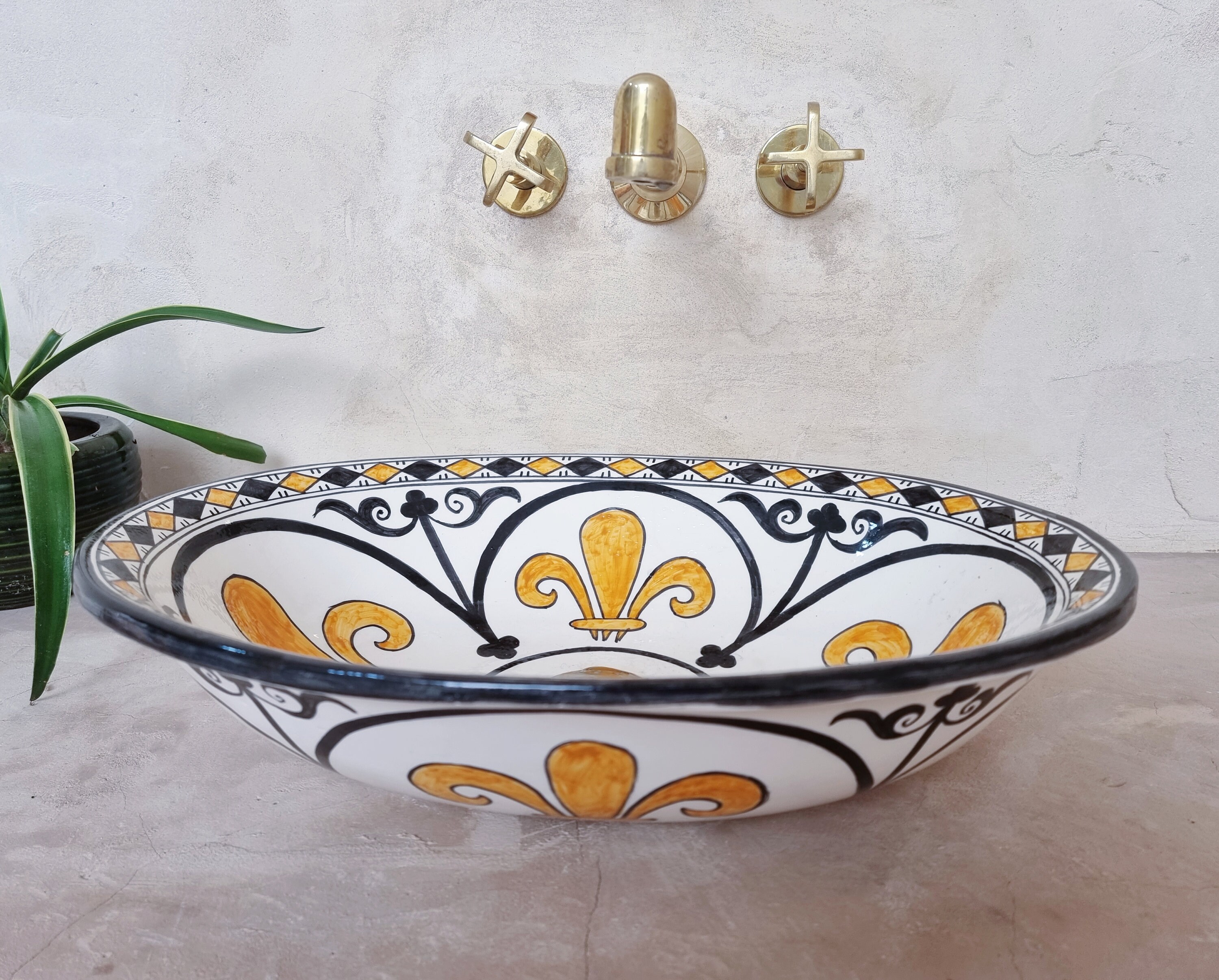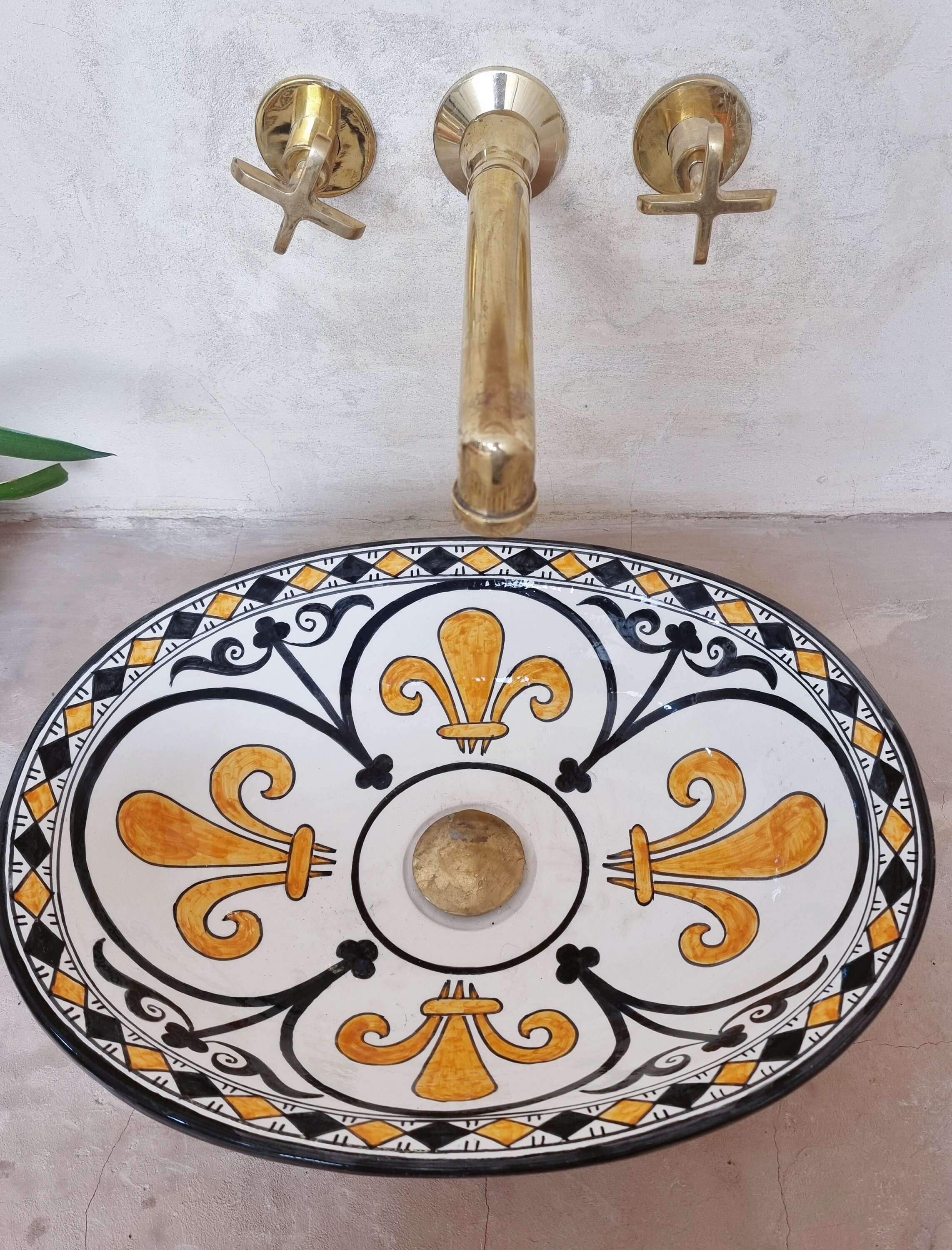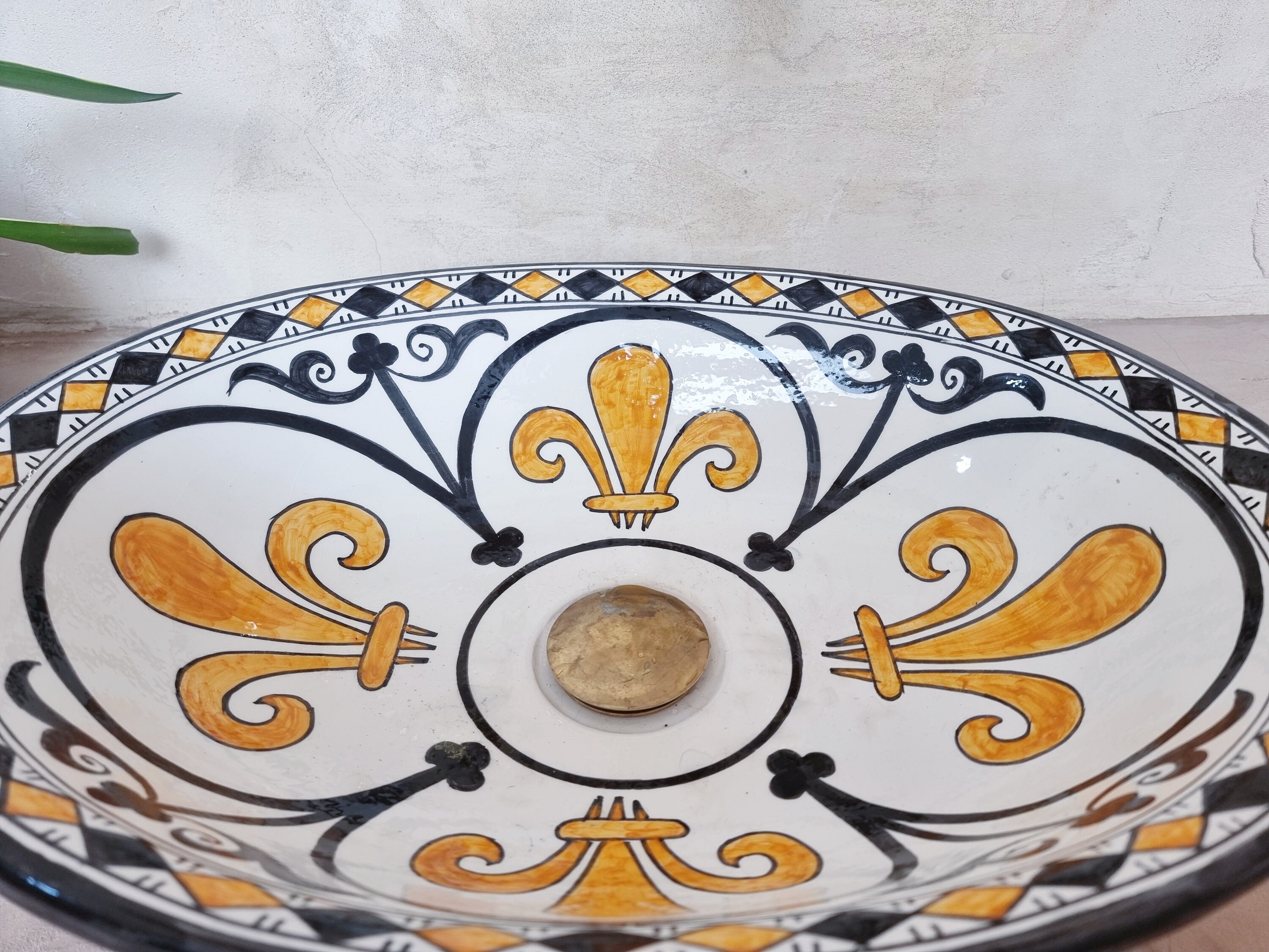 This beautiful Moroccan Oval ceramic sink is handcrafted by skilled artisans in Fes, made from high-quality clay, and features intricate hand-painted designs with a smooth glazed finish. Made from high-quality ceramic, it is durable, easy to clean, and perfect for bathrooms, kitchens, or powder rooms. Its timeless design adds a touch of Moroccan elegance to any space. The sink comes with both silver and copper drains included for free. Each piece is truly unique, and as a result, minor imperfections are to be expected. If you need a different size, feel free to contact us.