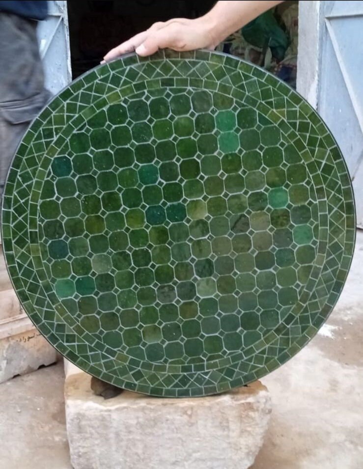 Handmade Moroccan Mosaic Table: Green Zellige Tile Garden Table