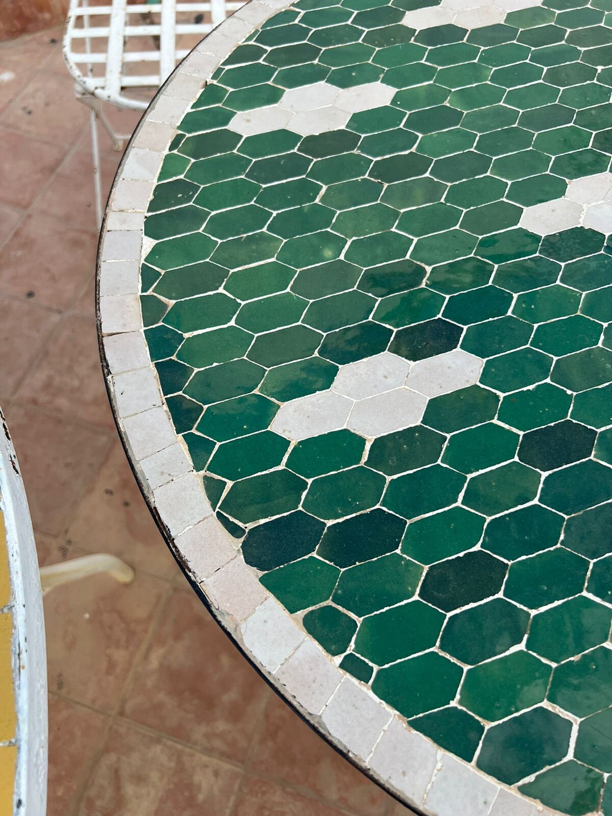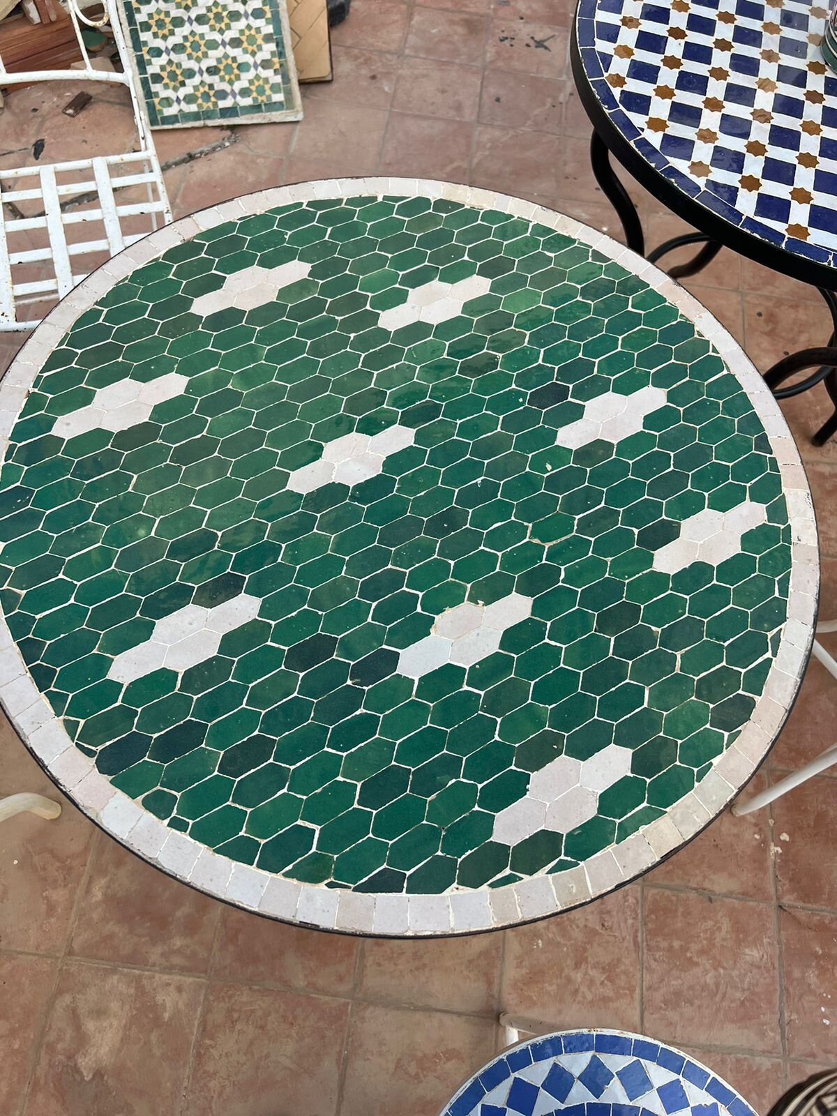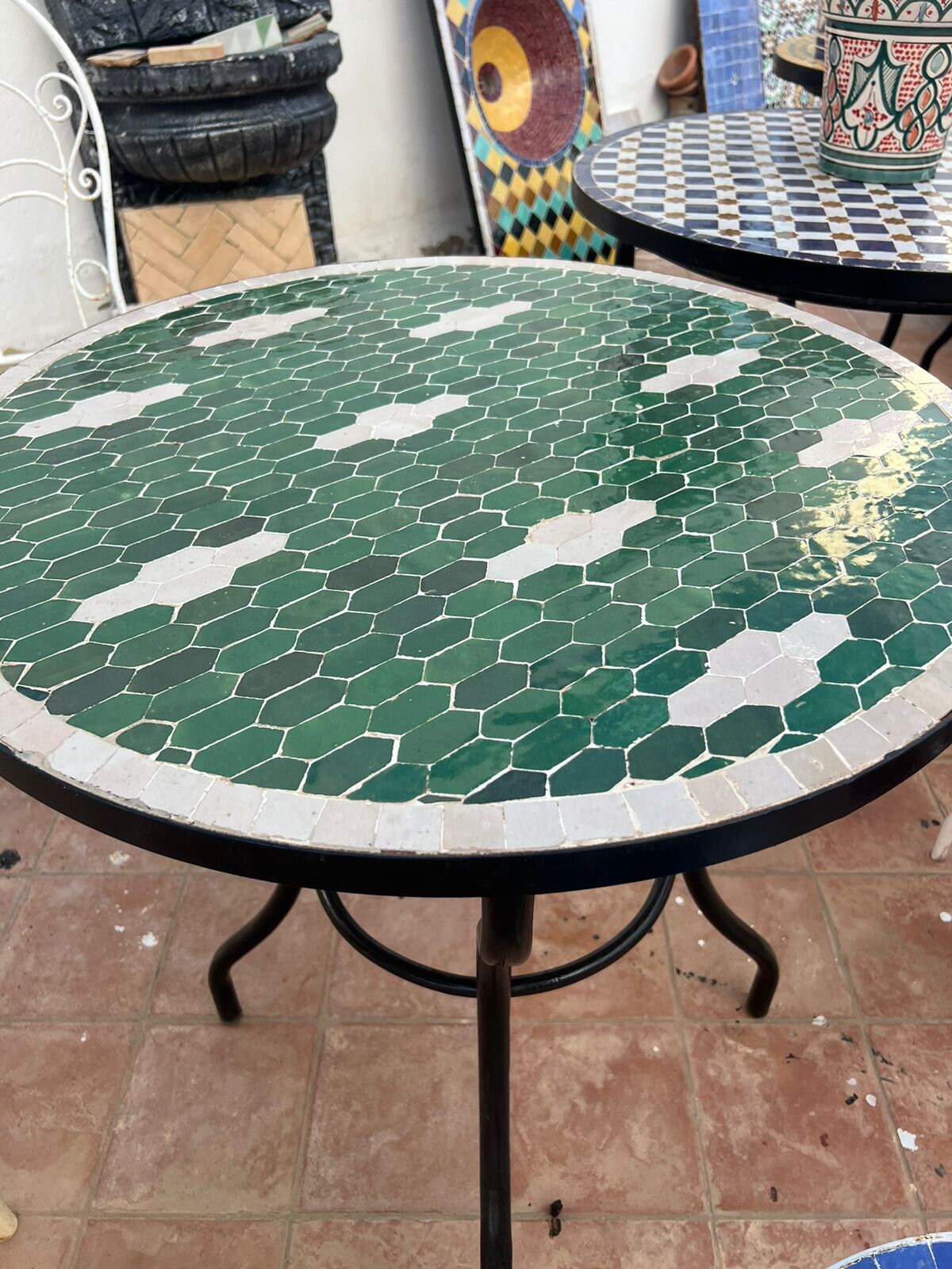 Handmade Moroccan Mosaic Table: Round Geometric Tile Inlay