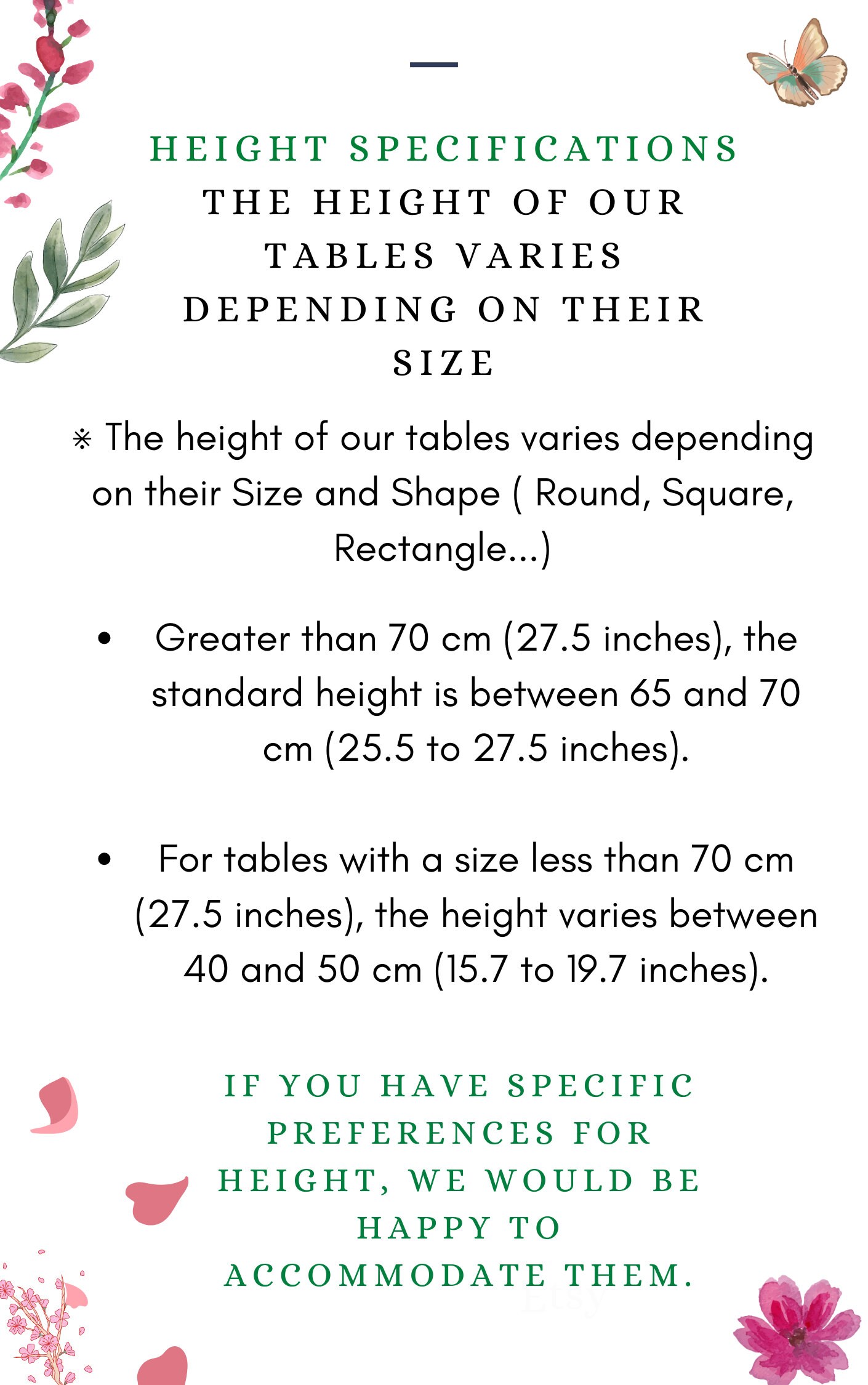 • Height = 65-70 cm - 23.9-27.5 inches ( If you have a specific Size Contact us)