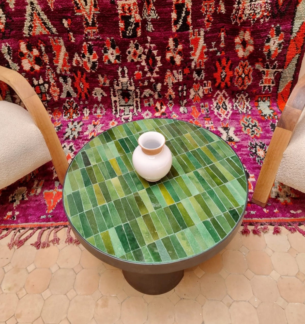 Discover the timeless elegance of Moroccan round mosaic tables offered by BohoDesignArtisana. Each table is a unique work of art, skillfully handcrafted by talented artisans in Morocco. The intricate mosaic patterns and vibrant colors capture the essence of Moroccan tradition, adding an exotic touch to your space. Made from high-quality materials, our tables offer both durability and beauty, making them captivating conversation pieces in any room of your home. Bring a touch of Moroccan magic to your interior decor with our mosaic tables, available exclusively at BohoDesignArtisana.