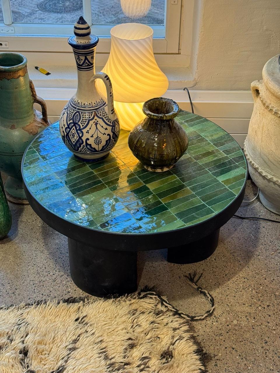 • Height: 34 cm (13.4 inches) • Place Origin: Morocco (FEZ) • Materials: Mosaic • 100% Handmade , hand painted. • Color : Green / Yellow ( Black Legs Demi Cylindric ) ● For More Detailes Please Feel Free to Contact us. ● Please see all pics as they are a part of the description, and ask any question Before Placing your Order.