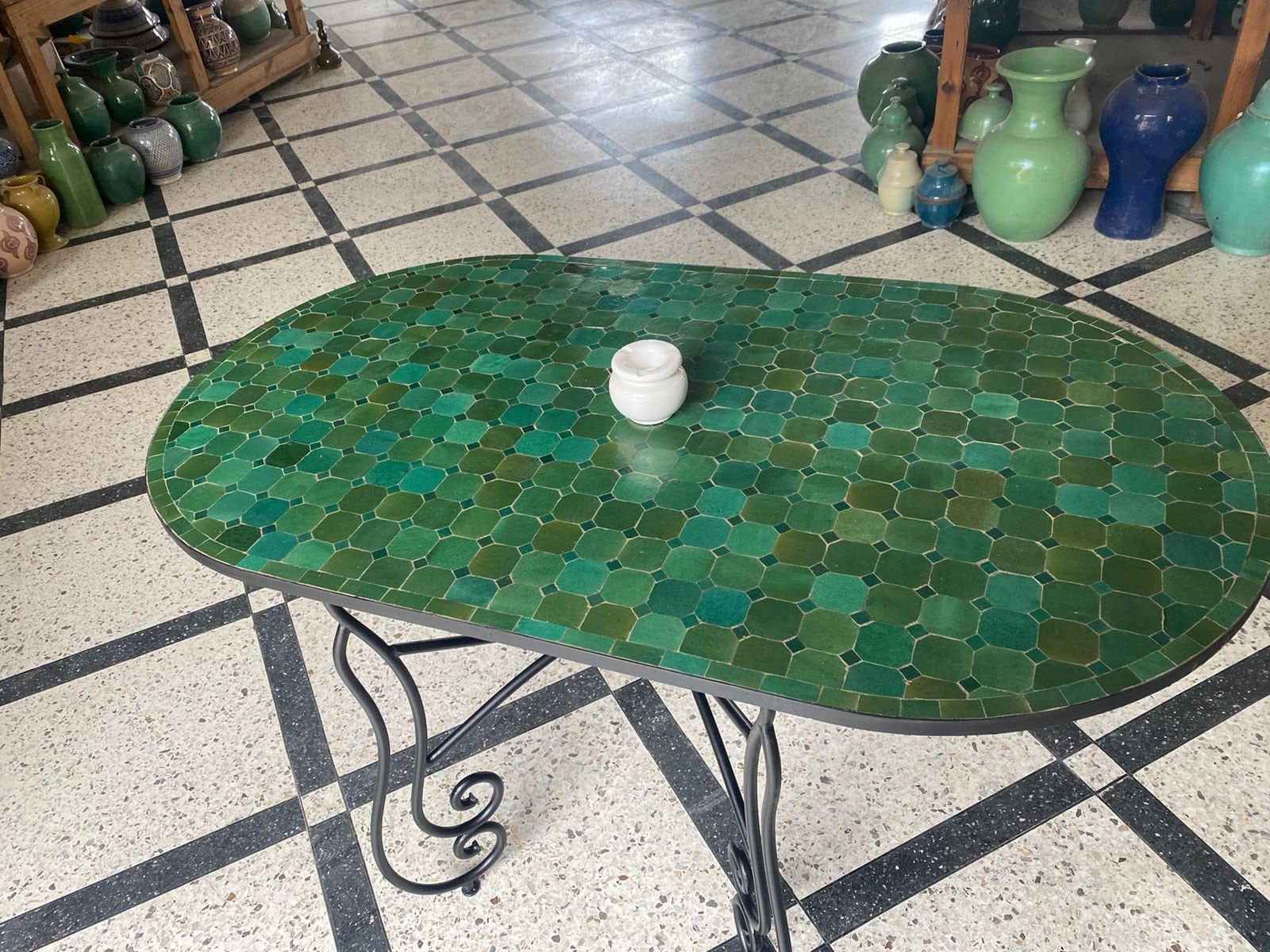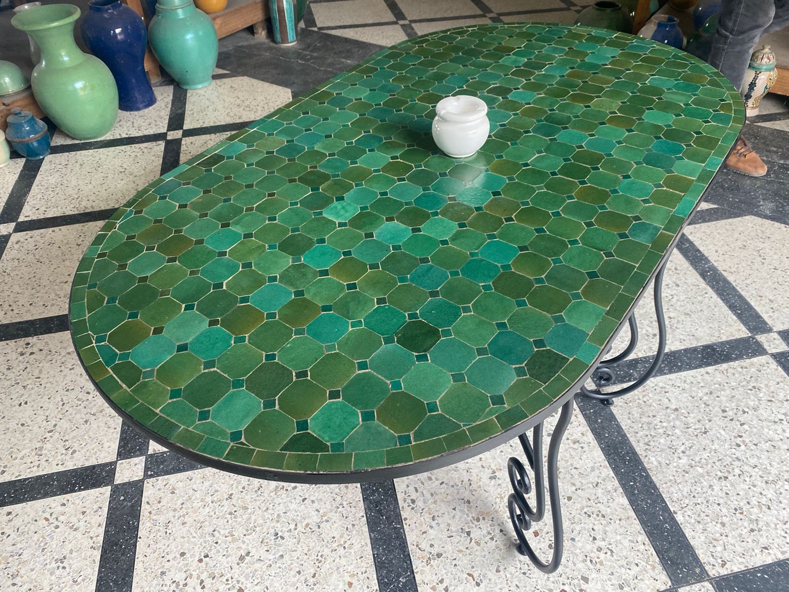 Handmade Moroccan Mosaic Table: Turquoise Zellige Tile Garden Table