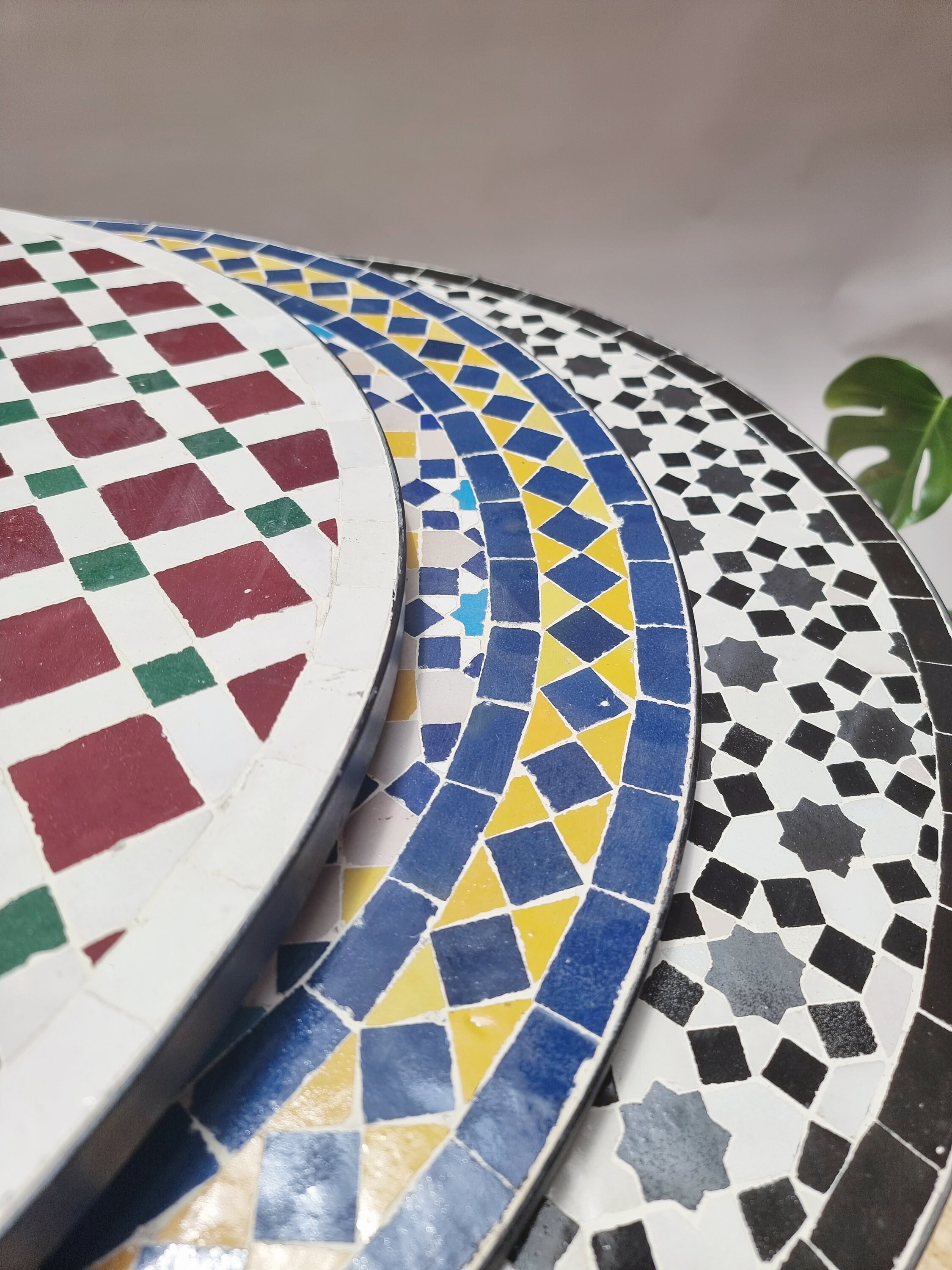 Discover the timeless elegance of Moroccan round mosaic tables offered by BohoDesignArtisana. Each table is a unique work of art, skillfully handcrafted by talented artisans in Morocco. The intricate mosaic patterns and vibrant colors capture the essence of Moroccan tradition, adding an exotic touch to your space. Made from high-quality materials, our tables offer both durability and beauty, making them captivating conversation pieces in any room of your home. Bring a touch of Moroccan magic to your interior decor with our mosaic tables, available exclusively at BohoDesignArtisana.