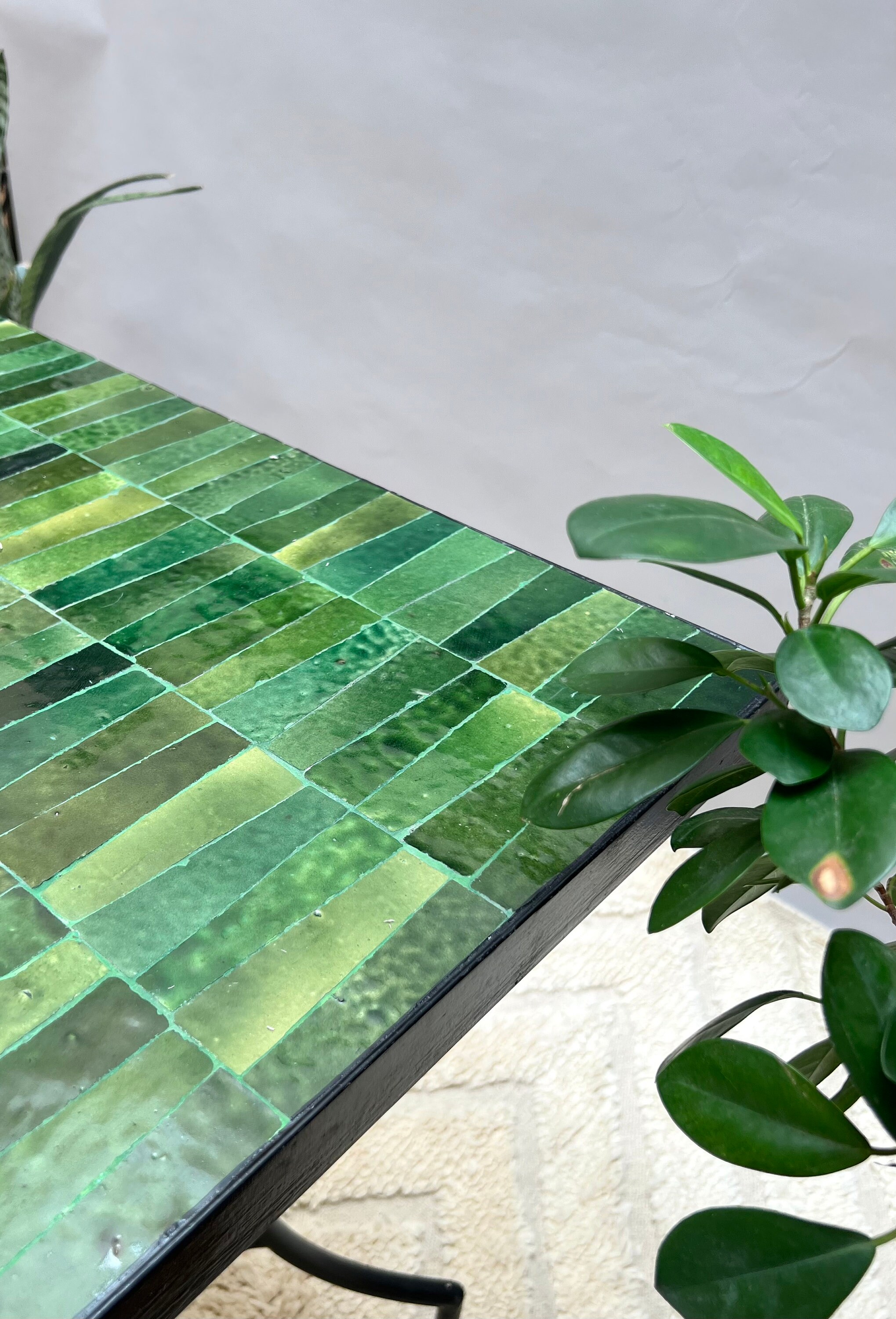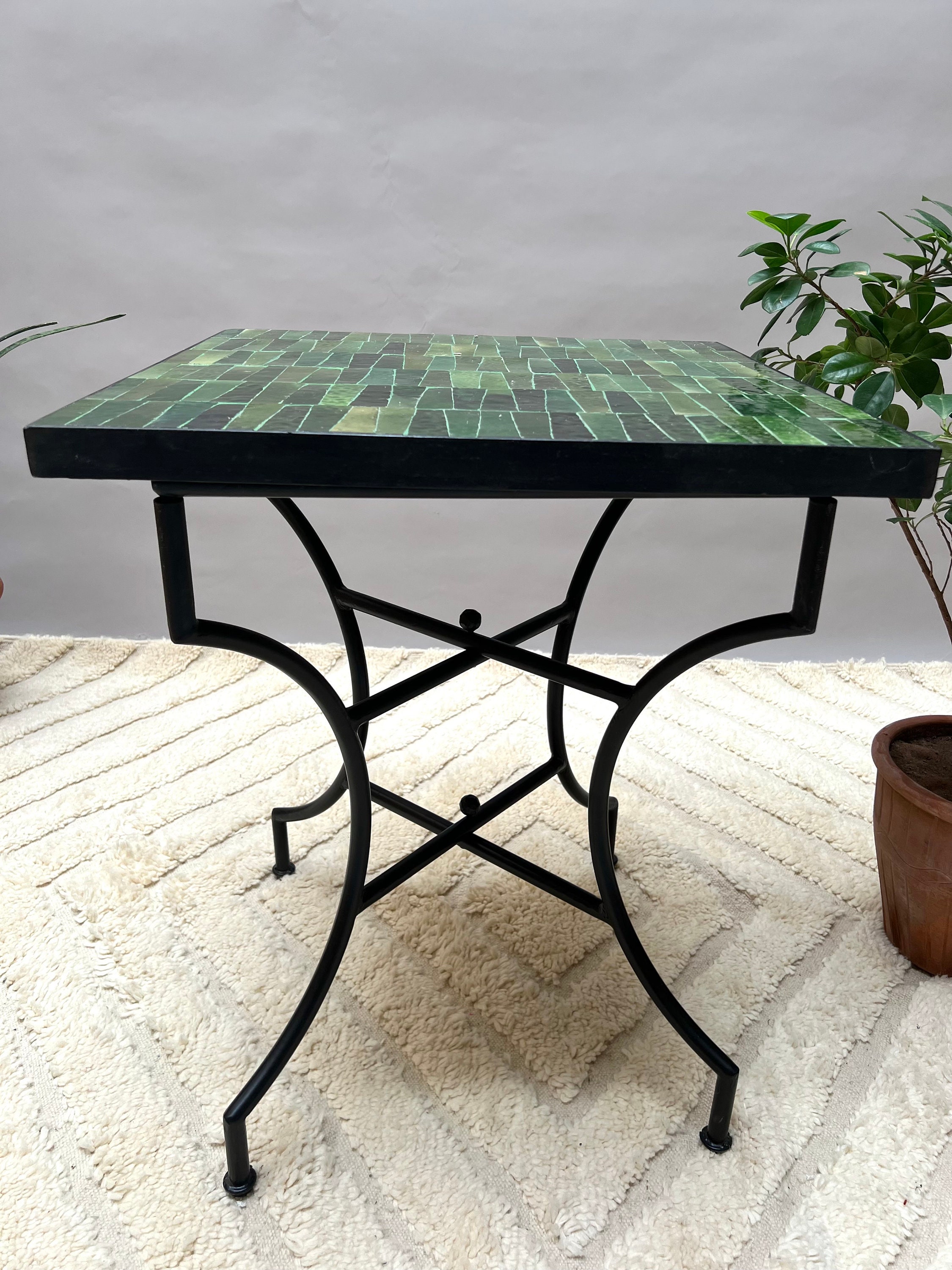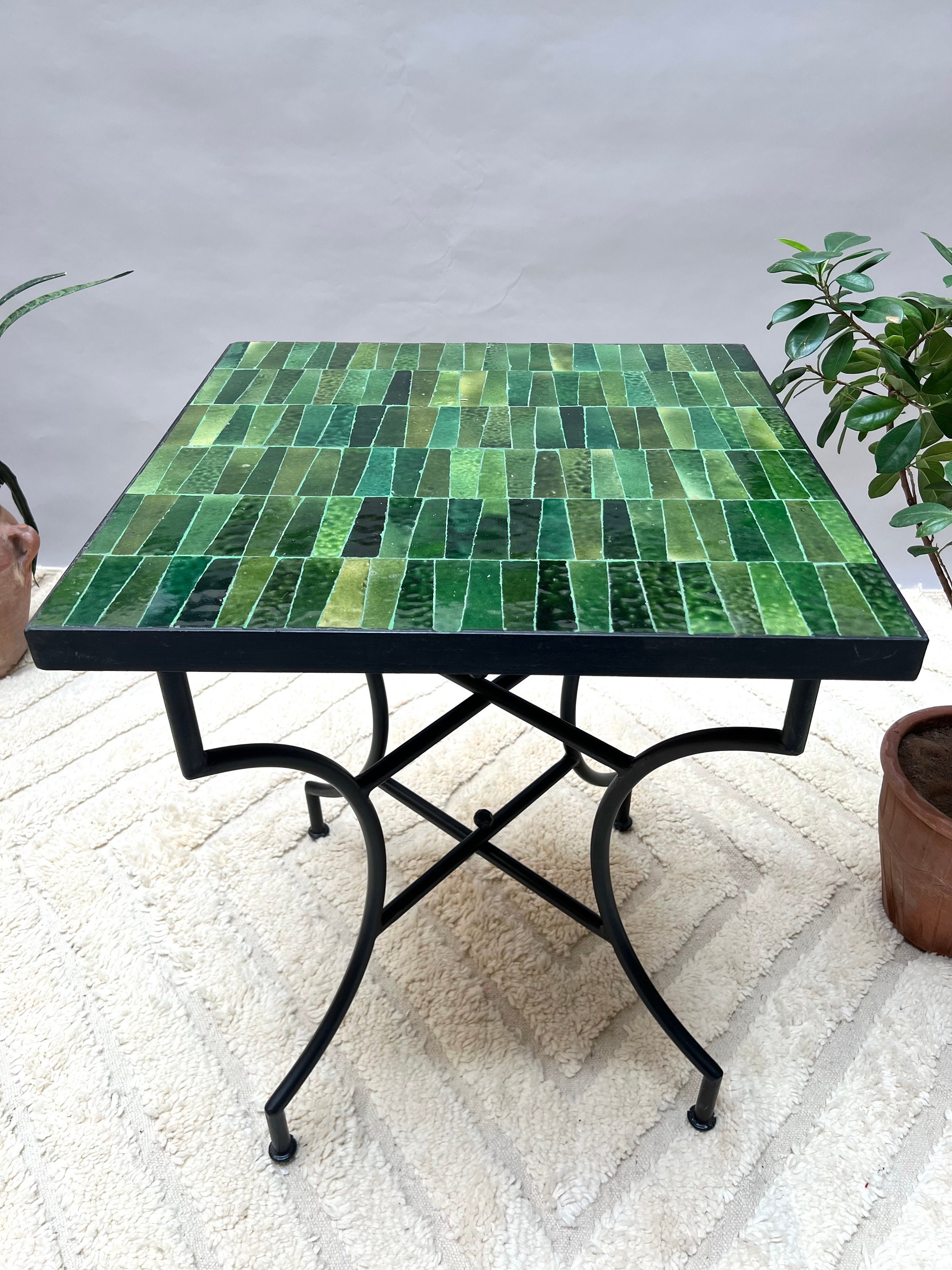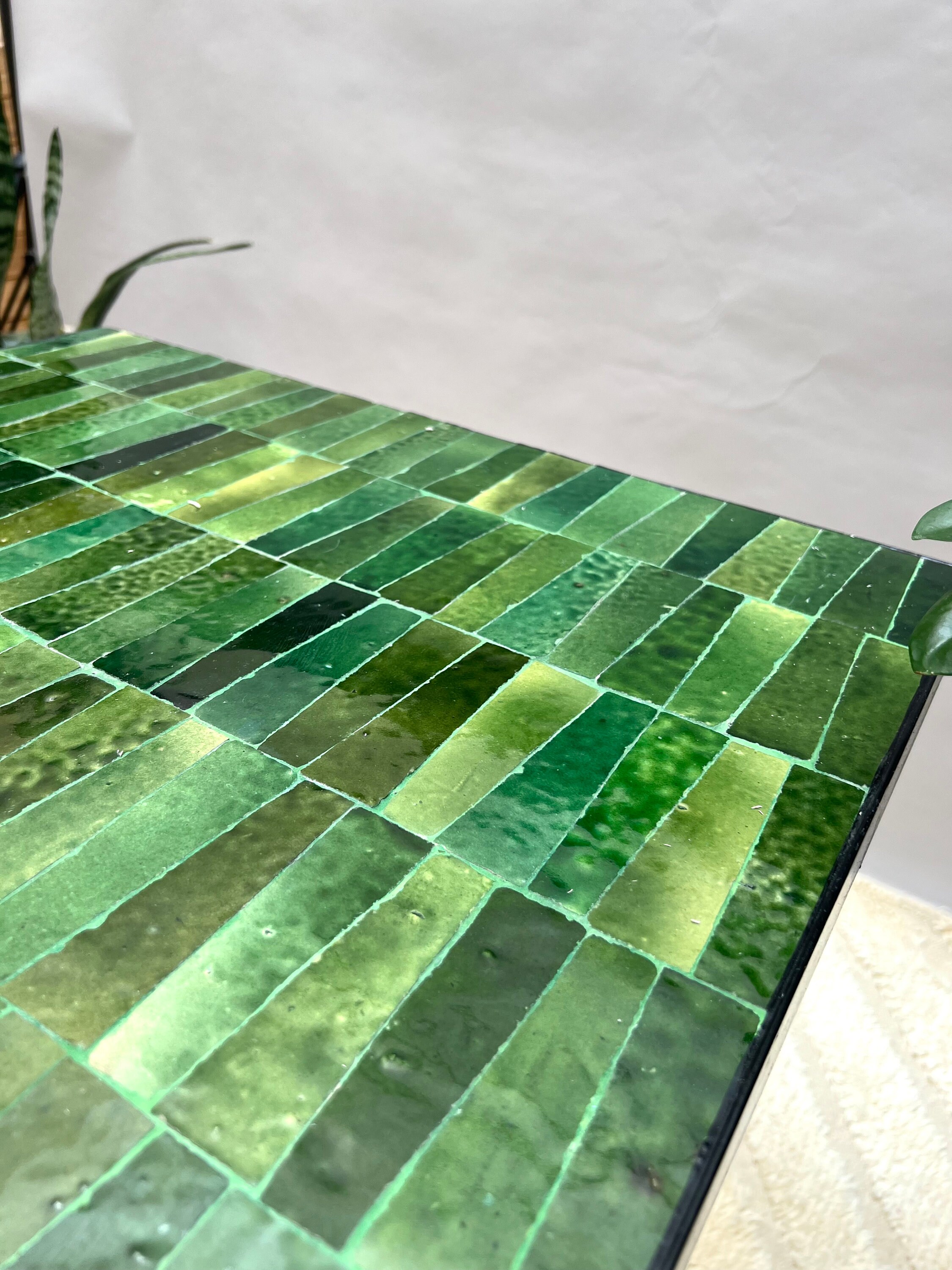 Handmade Moroccan Mosaic Table: Green Zellige Tile Coffee Table