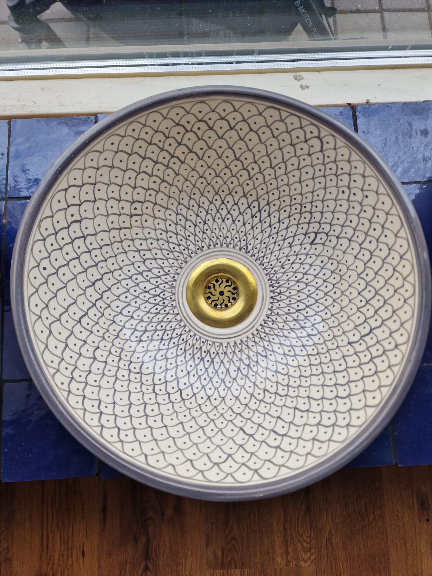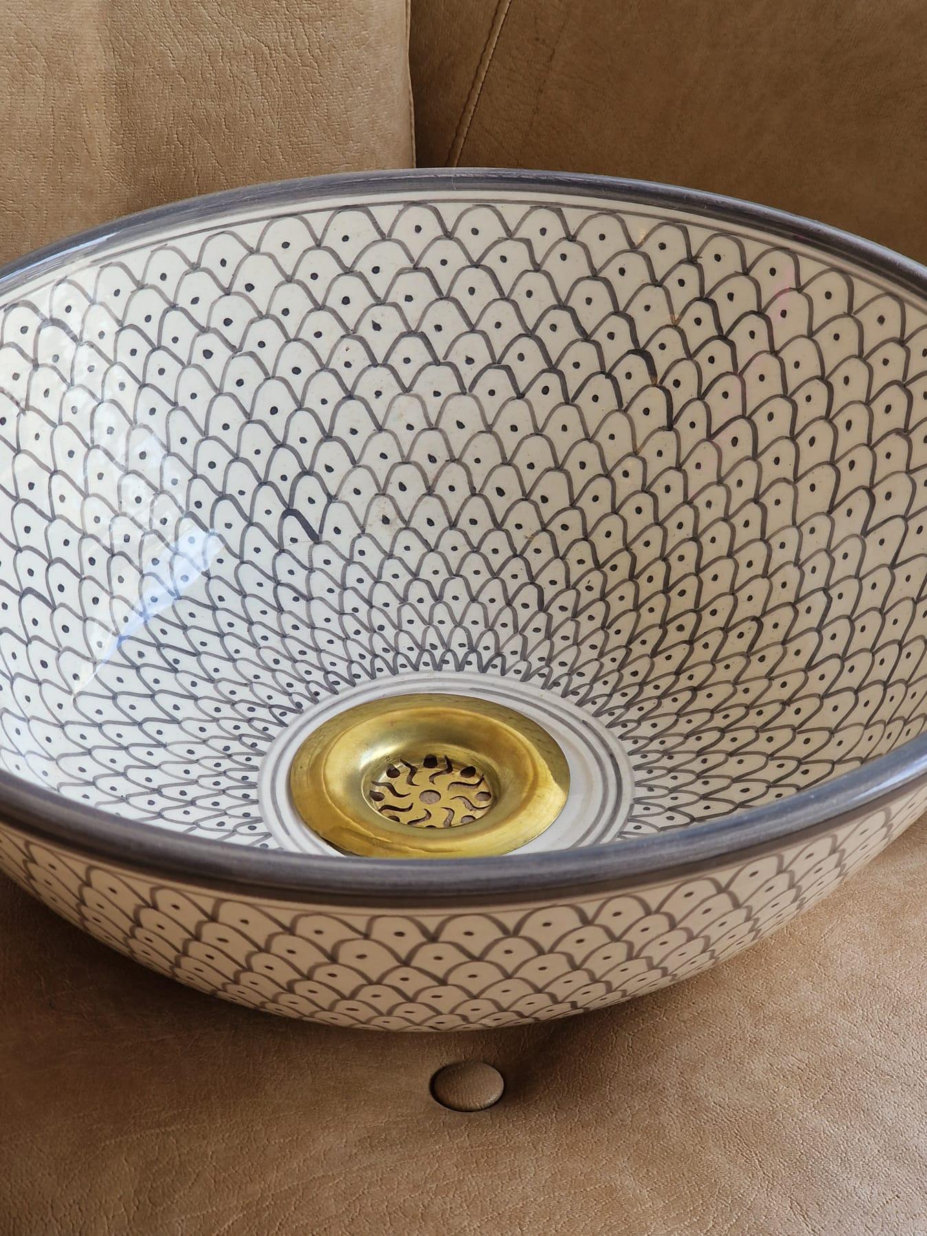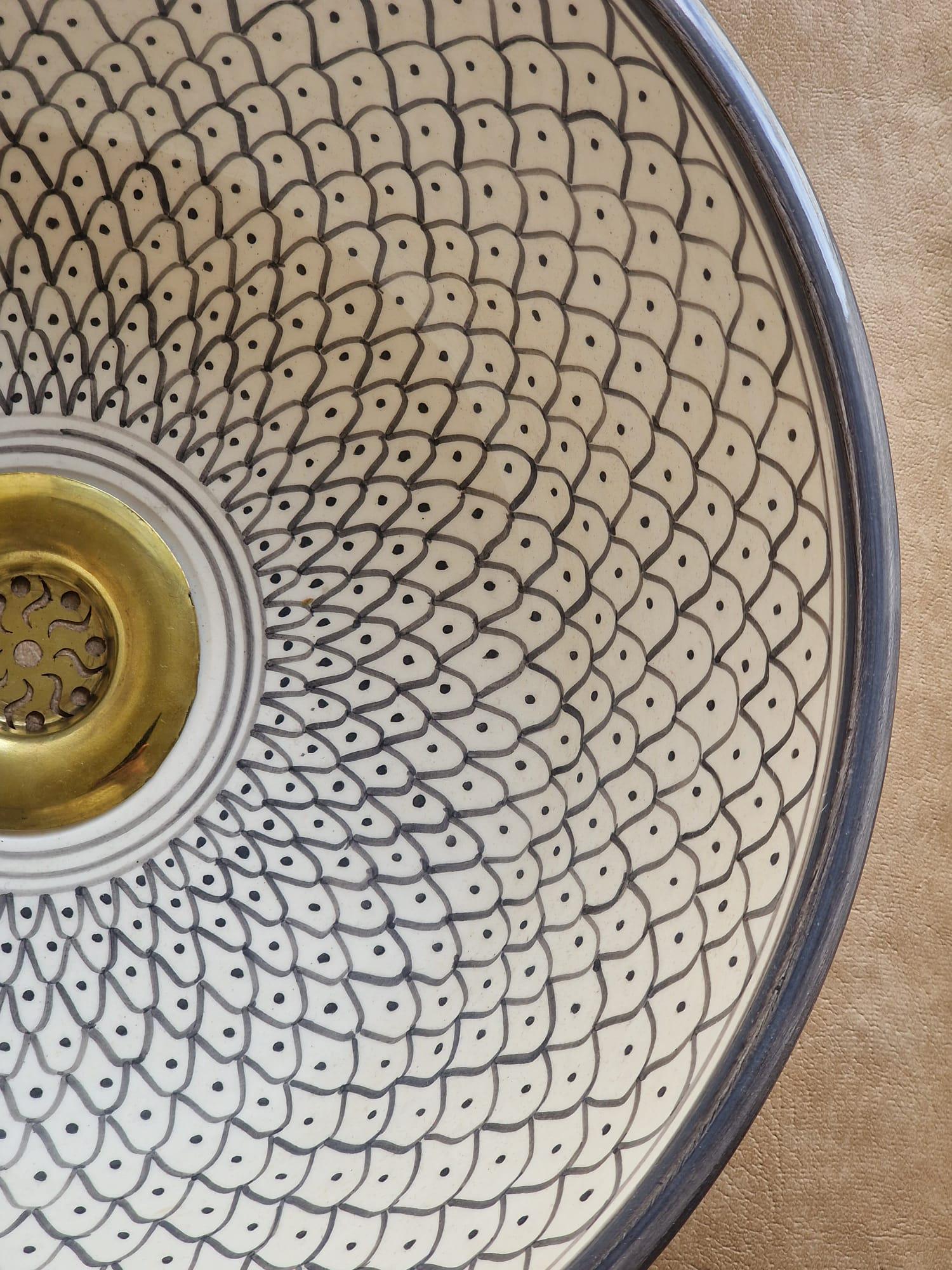 Handmade Moroccan Ceramic Sink: Grey Fish Scale Design