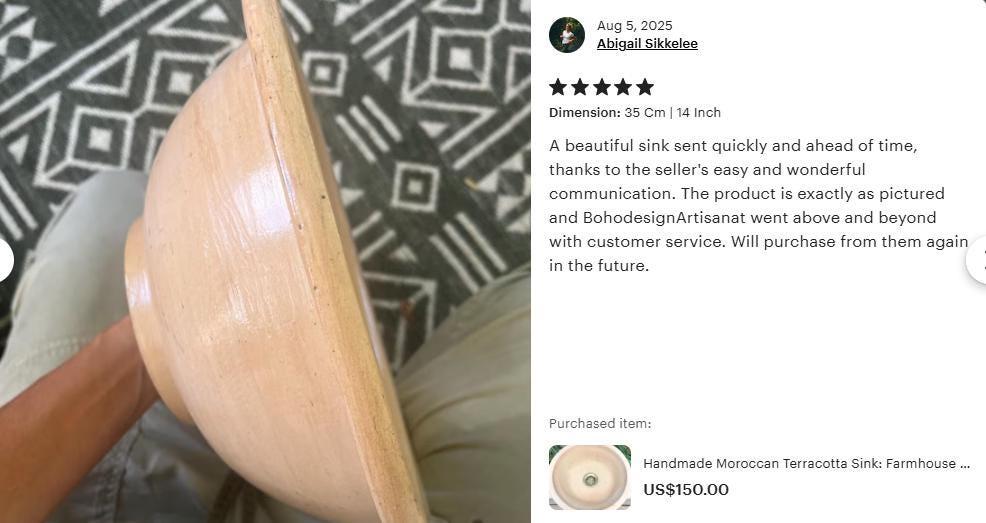 ✔ Diameter: 45-50 cm → Height: 14-15 cm ✔ Diameter: 30-40 cm → Height: 12-13 cm ✔ Diameter: 25-30 cm → Height: 11-12 cm ✔ Please choose if you want the Sink ( Naturel Terracotta or Sealed ) ✔ Making & Shipping : Processing Time: 7-10 days ✔ Drain (Waste) : (Copper & Silver) Included For Free 📌 Please add your phone number in the personalization section.