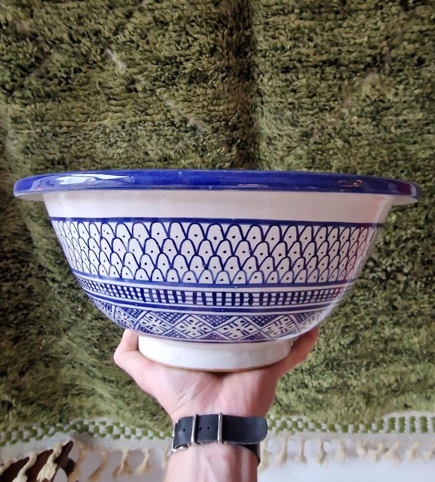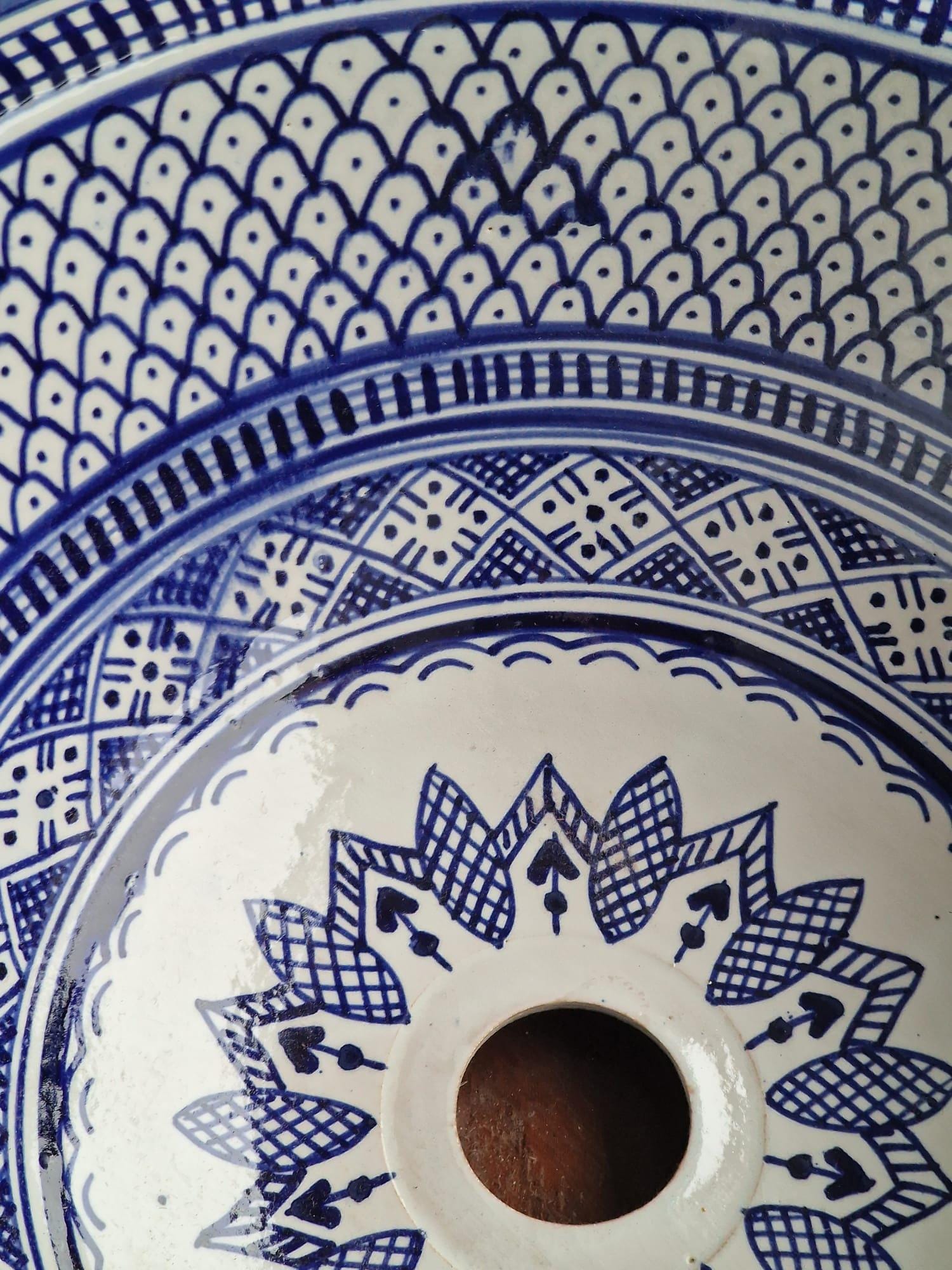 Handmade Moroccan Ceramic Sink: Fish Scale Design, Bathroom Washbasin