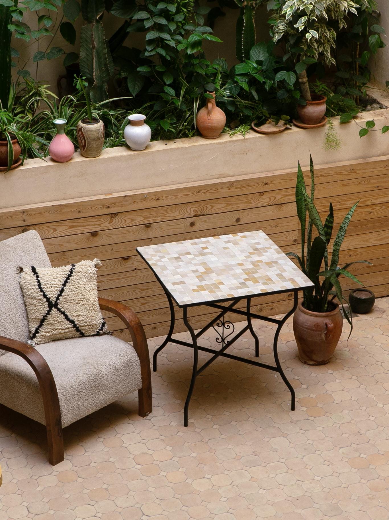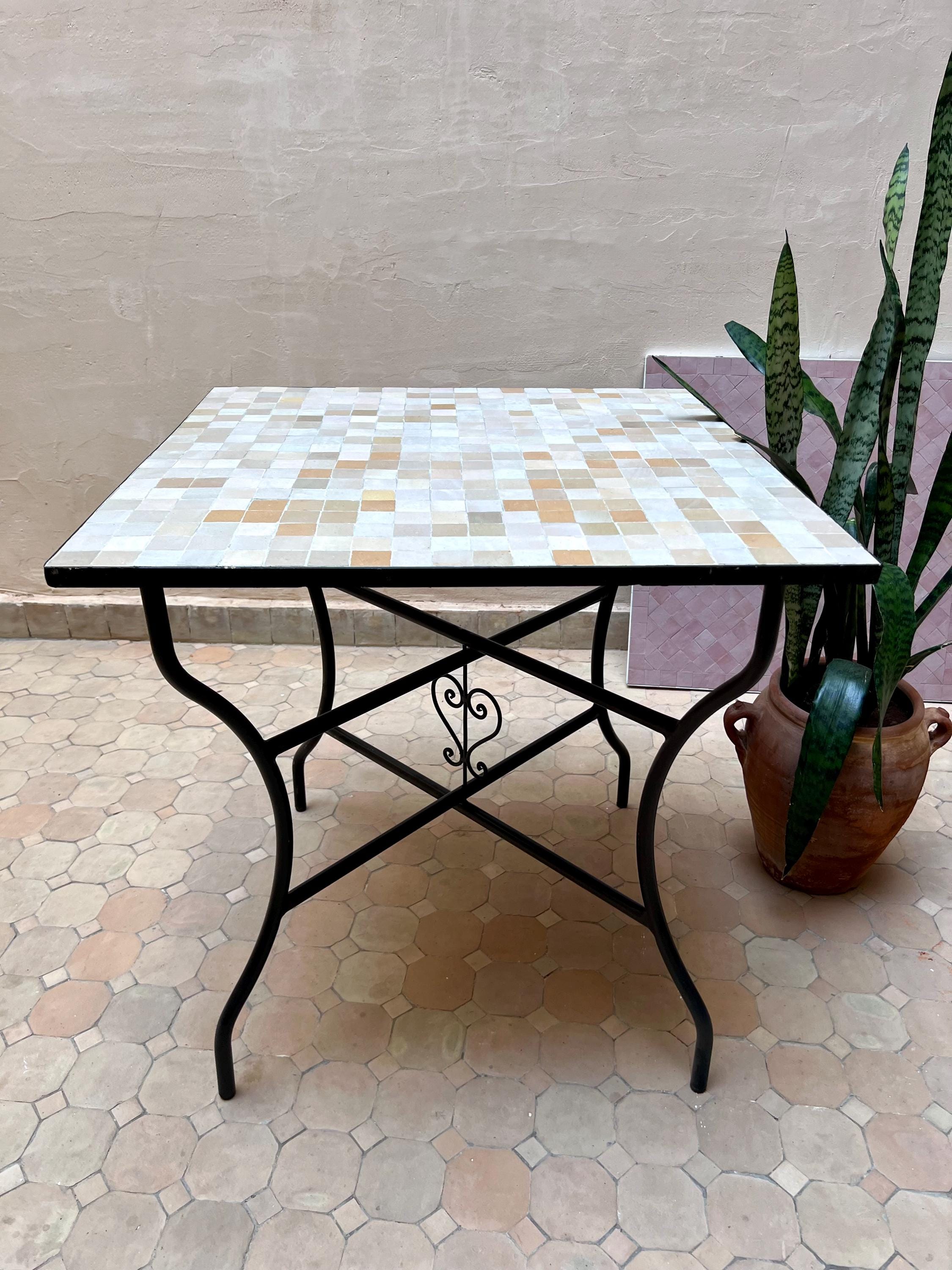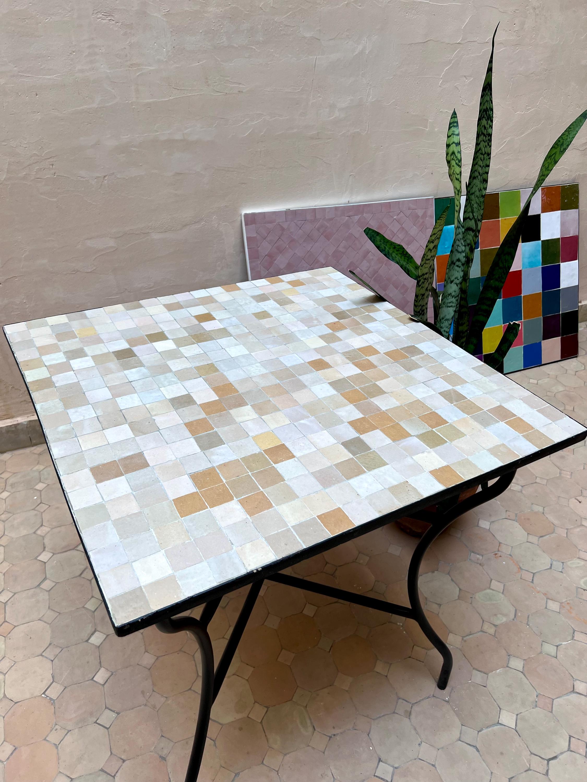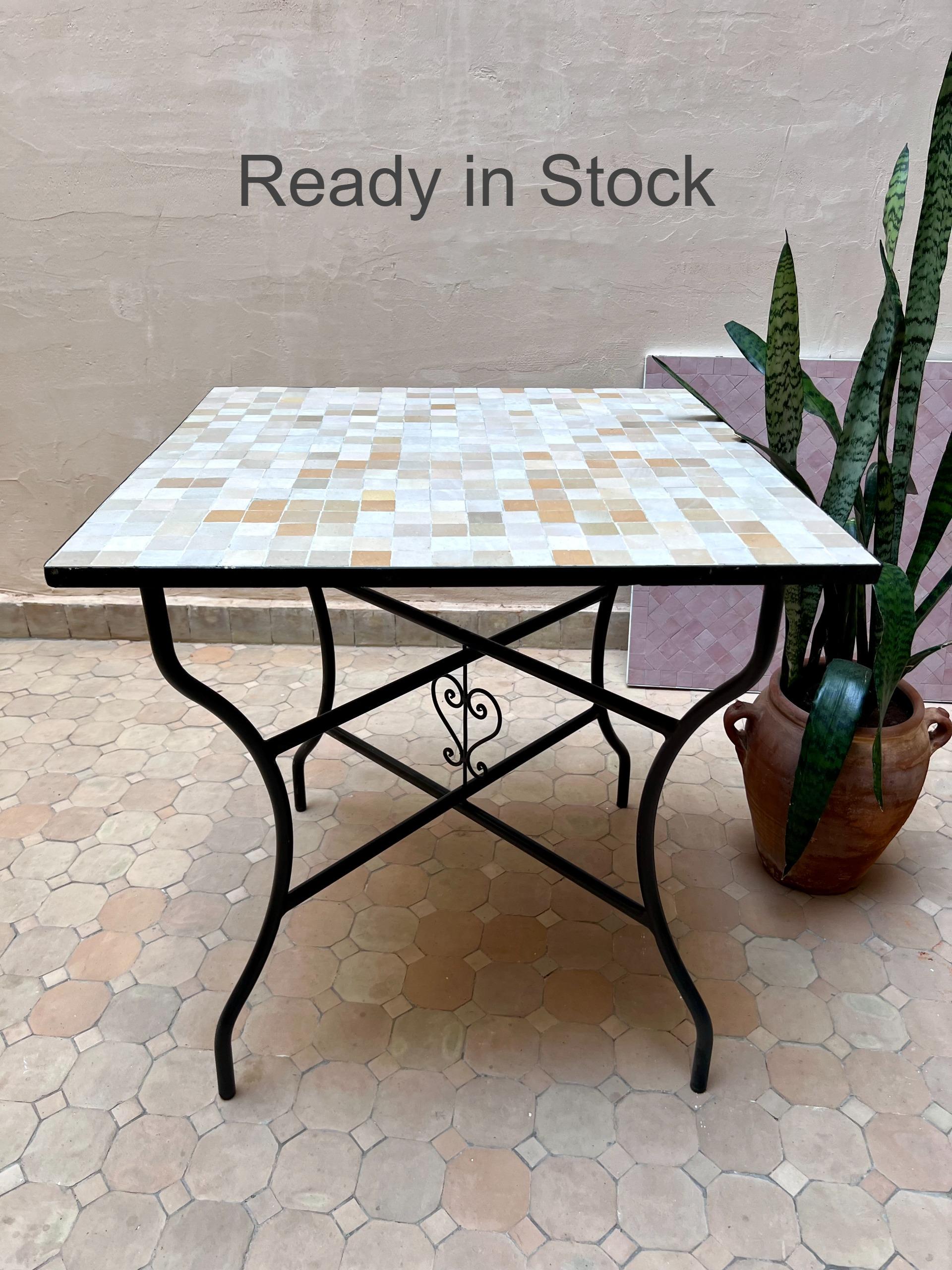 Handmade Moroccan Mosaic Table, Zellige Tile, Garden Dining Table (70x70cm)