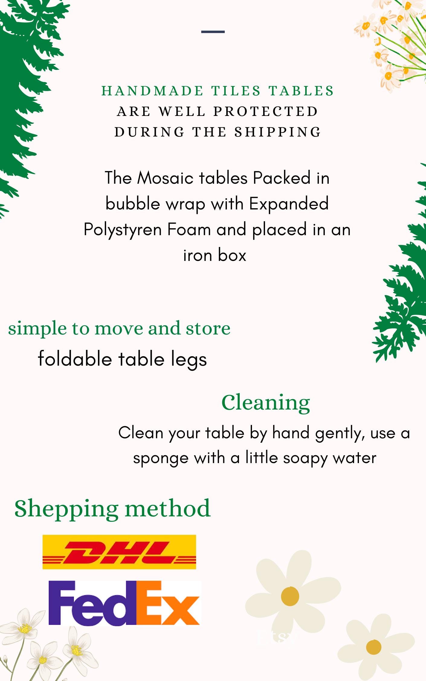 ●The mosaic tables Packed in bubble wrap with other packing materials, placed in a wooden box and shsipped.