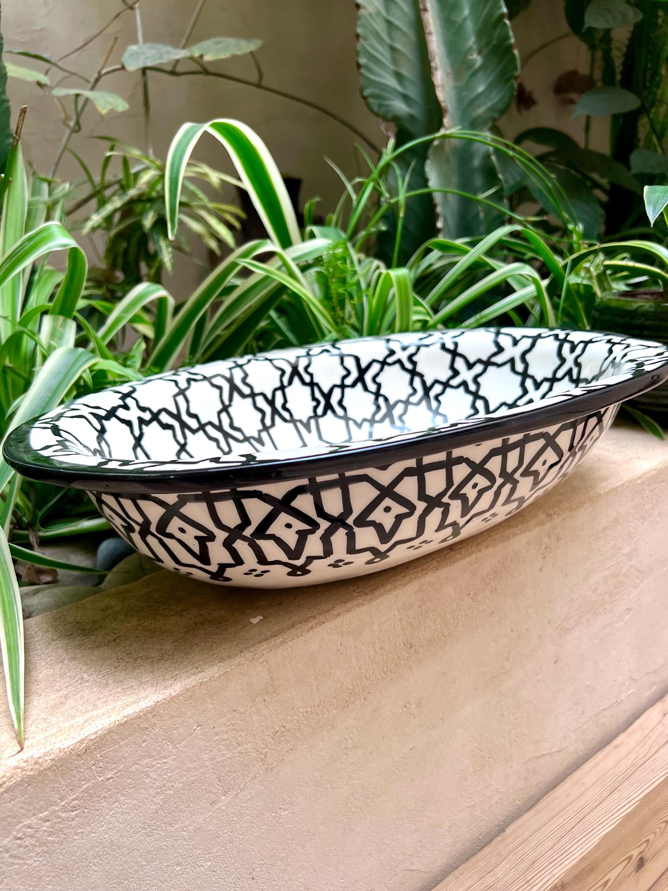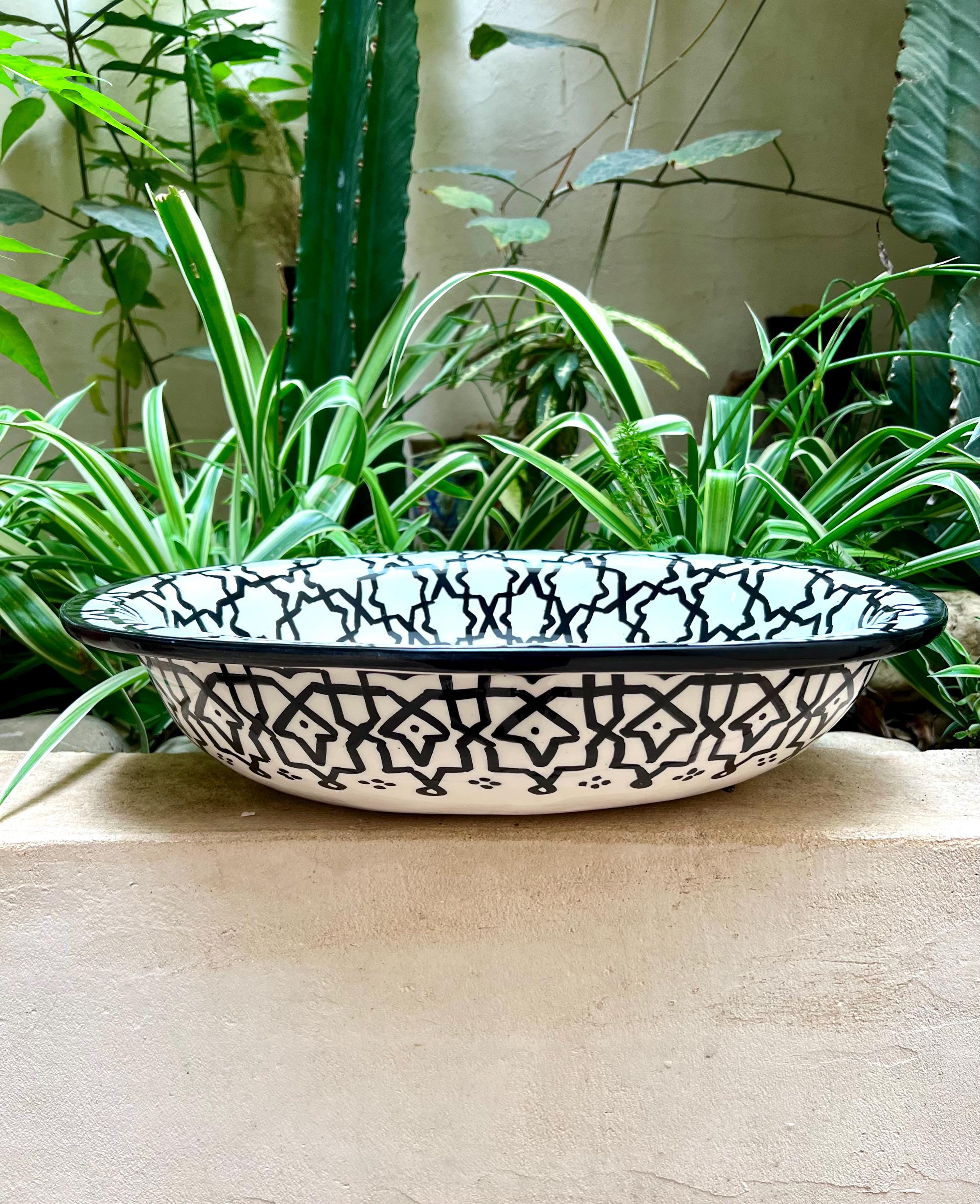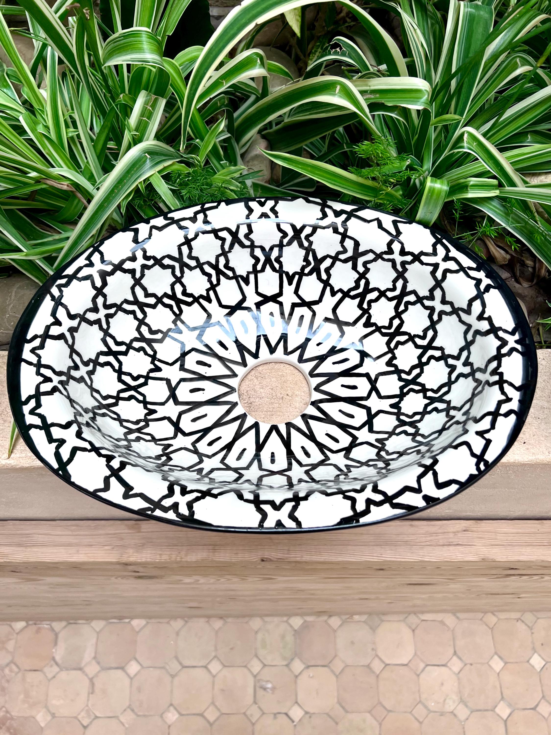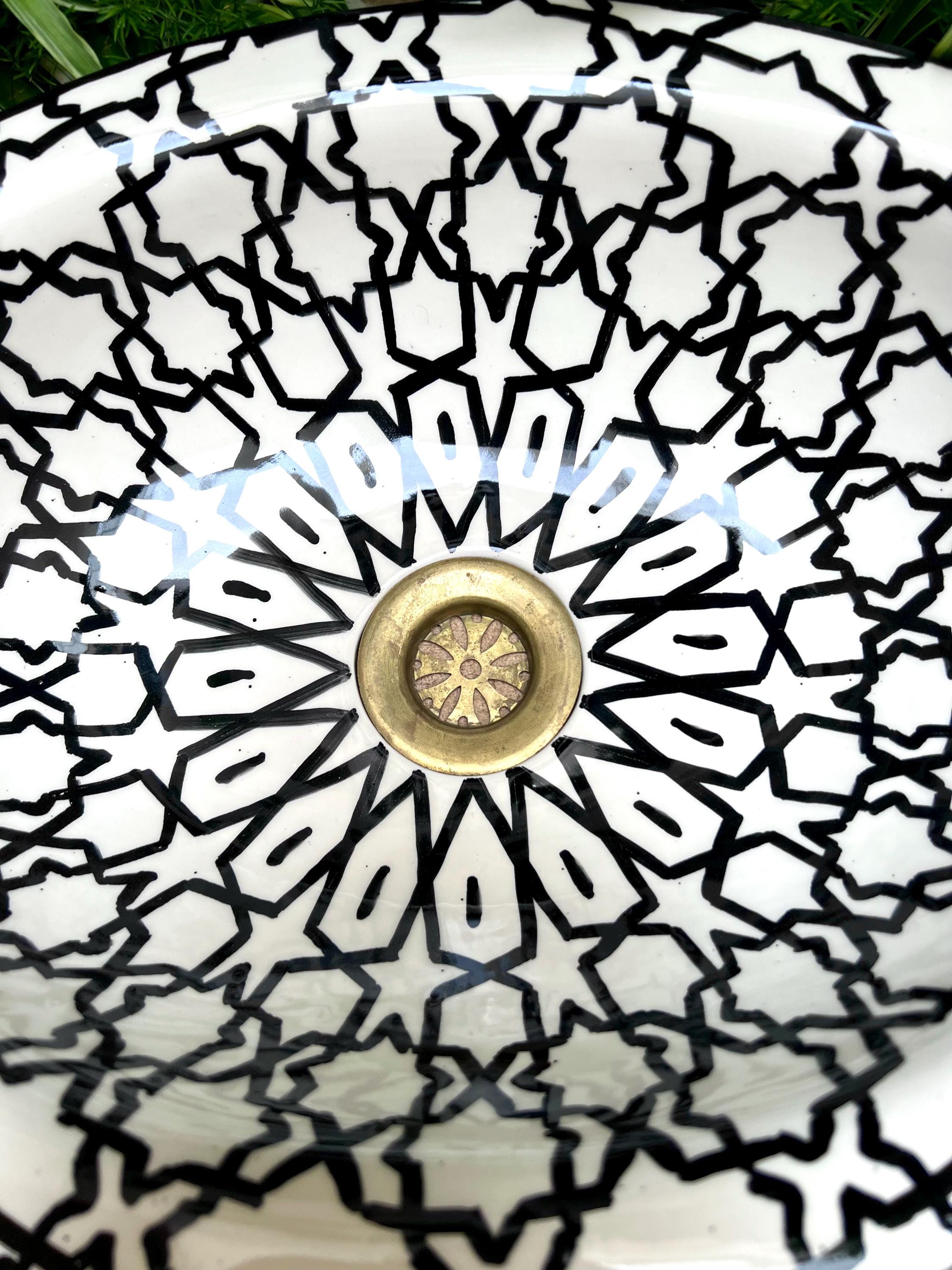 This beautiful Moroccan Oval ceramic sink is handcrafted by skilled artisans in Fes, made from high-quality clay, and features intricate hand-painted designs with a smooth glazed finish. Made from high-quality ceramic, it is durable, easy to clean, and perfect for bathrooms, kitchens, or powder rooms. Its timeless design adds a touch of Moroccan elegance to any space. The sink comes with both silver and copper drains included for free. Each piece is truly unique, and as a result, minor imperfections are to be expected. If you need a different size, feel free to contact us.