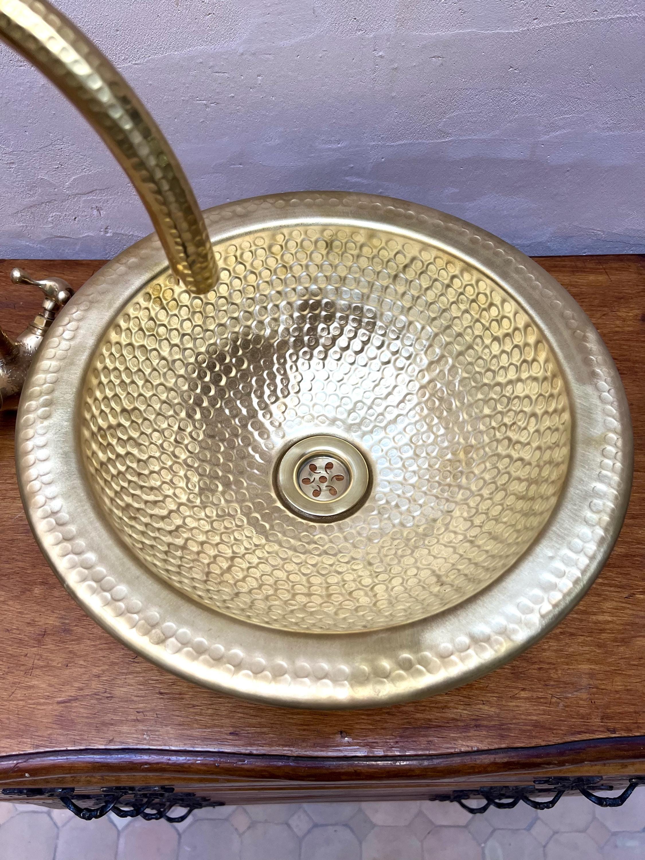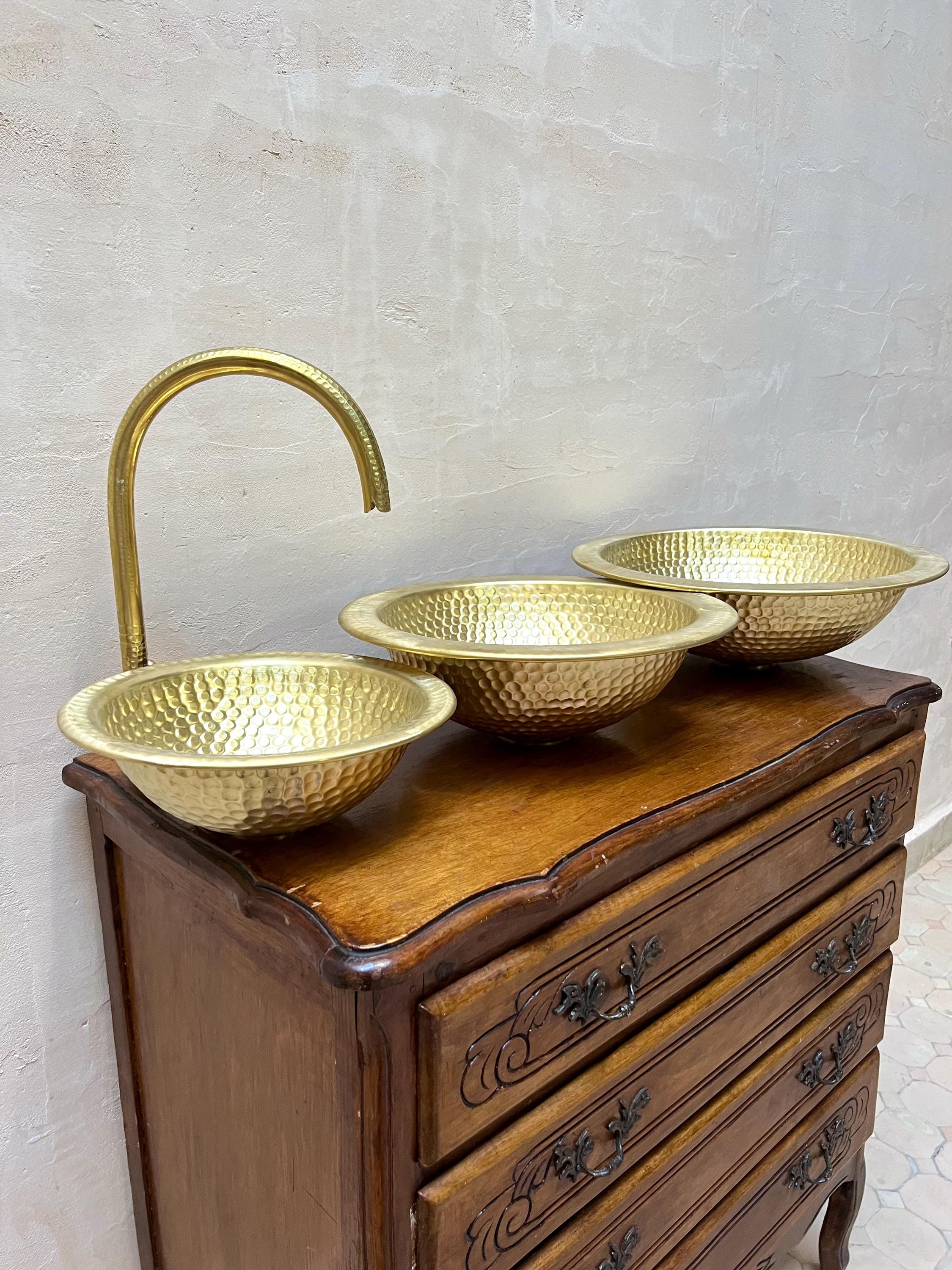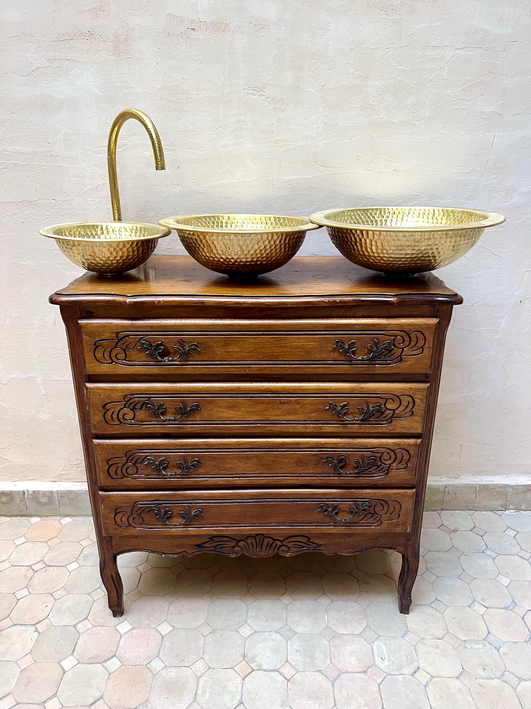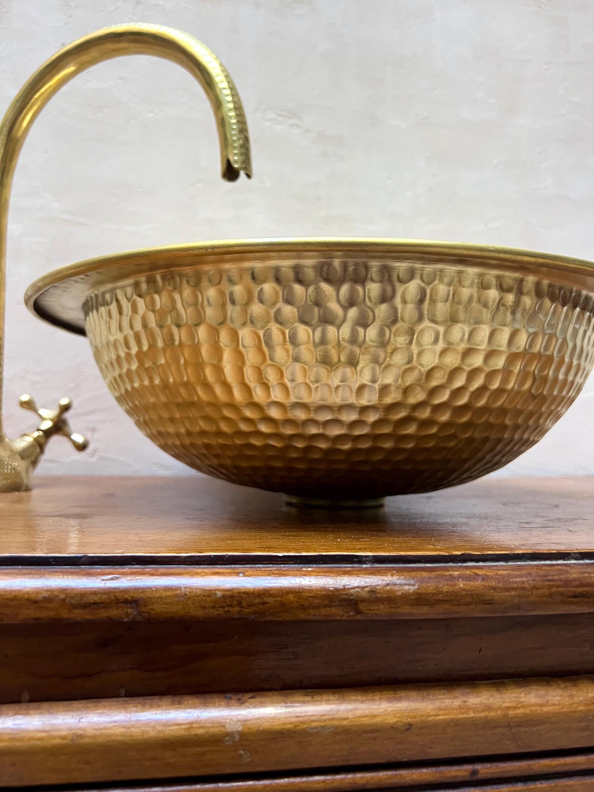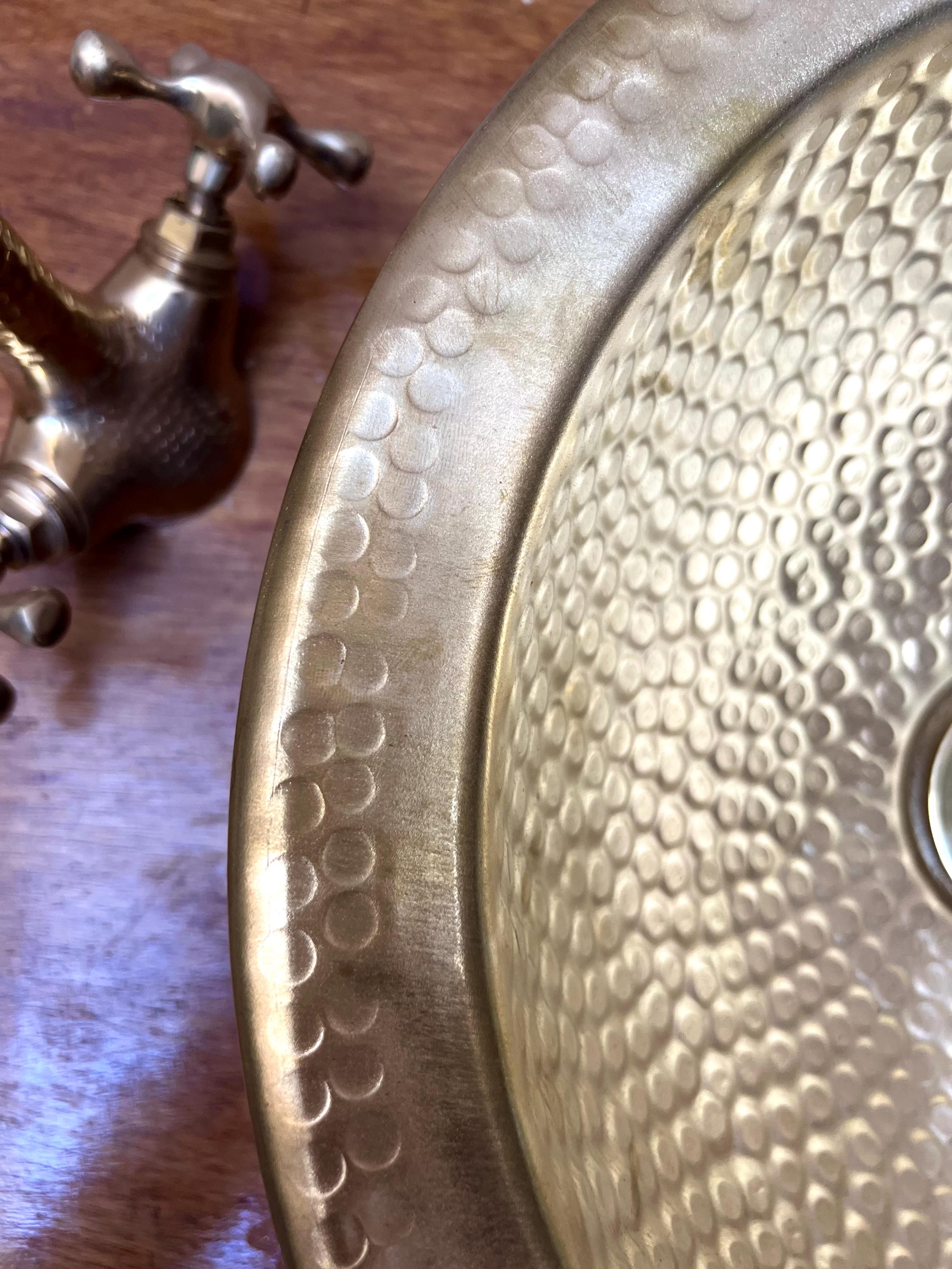 The rustic charm of our handcrafted Round Hammered Copper Sink offers a perfect blend of function and artistry. Made by skilled Moroccan artisans using traditional techniques, this durable copper sink features a unique hammered texture that adds depth and highlights its natural beauty. Naturally resistant to corrosion and aging, it’s built to last and requires only mild soap and water for cleaning. Ideal for bathrooms, kitchens, bars, or prep areas, its compact, versatile design suits any space. Contact us to customize your sink and find the perfect fit for your home. If you need a different size, feel free to contact us.