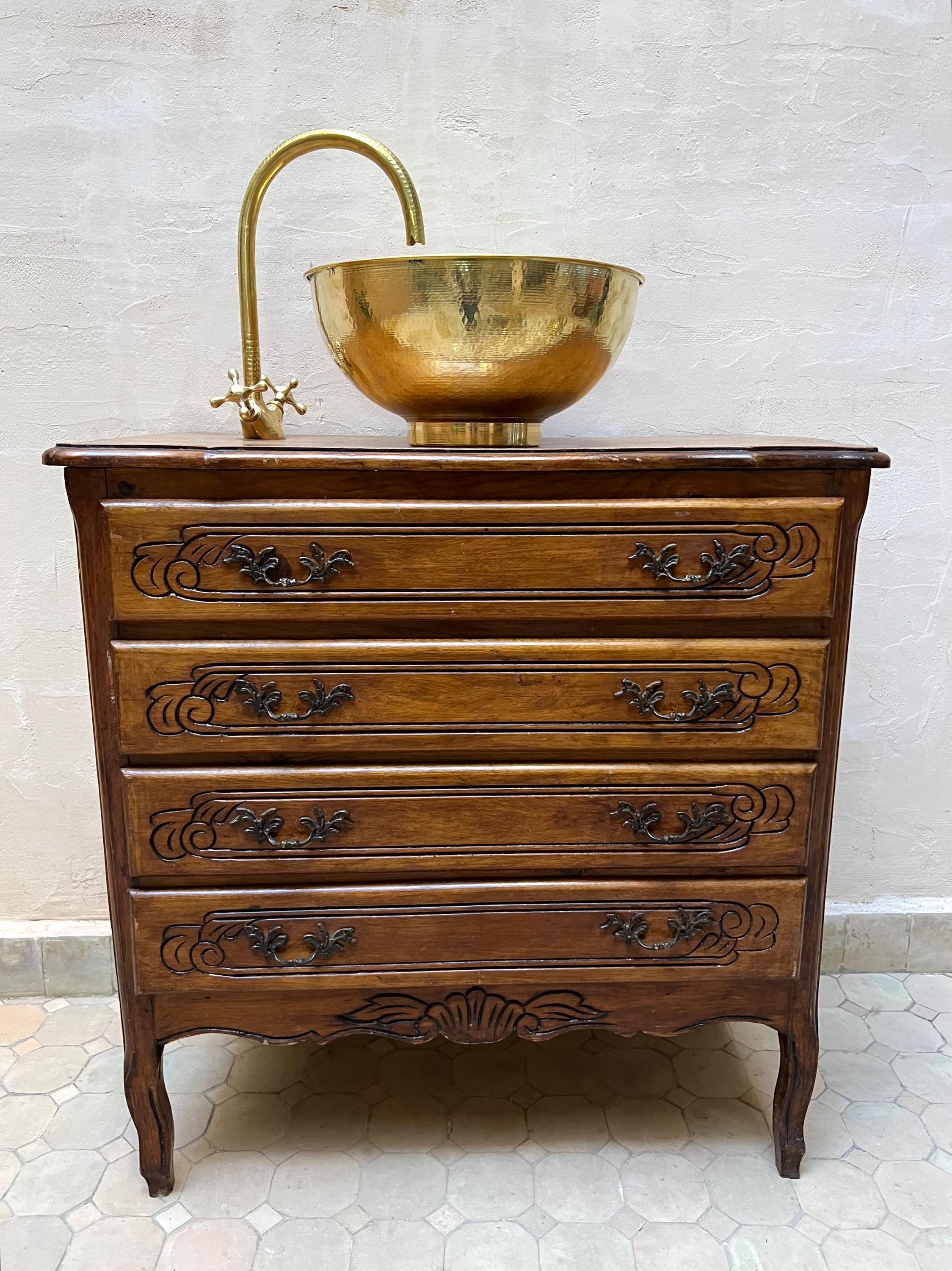 ※ DESCRIPTION ※ This round sink features hand-engraved details that reflect the beauty of authentic Moroccan craftsmanship. Each piece is carefully crafted by skilled artisans using high-quality copper, combining durability with artistic design. The intricate engravings showcase traditional patterns, while the naturally patinated finish offers easy maintenance. Ideal for bathrooms, kitchens, or powder rooms, it adds a unique blend of elegance and function to any space. Contact us for custom engraving options to suit your style.