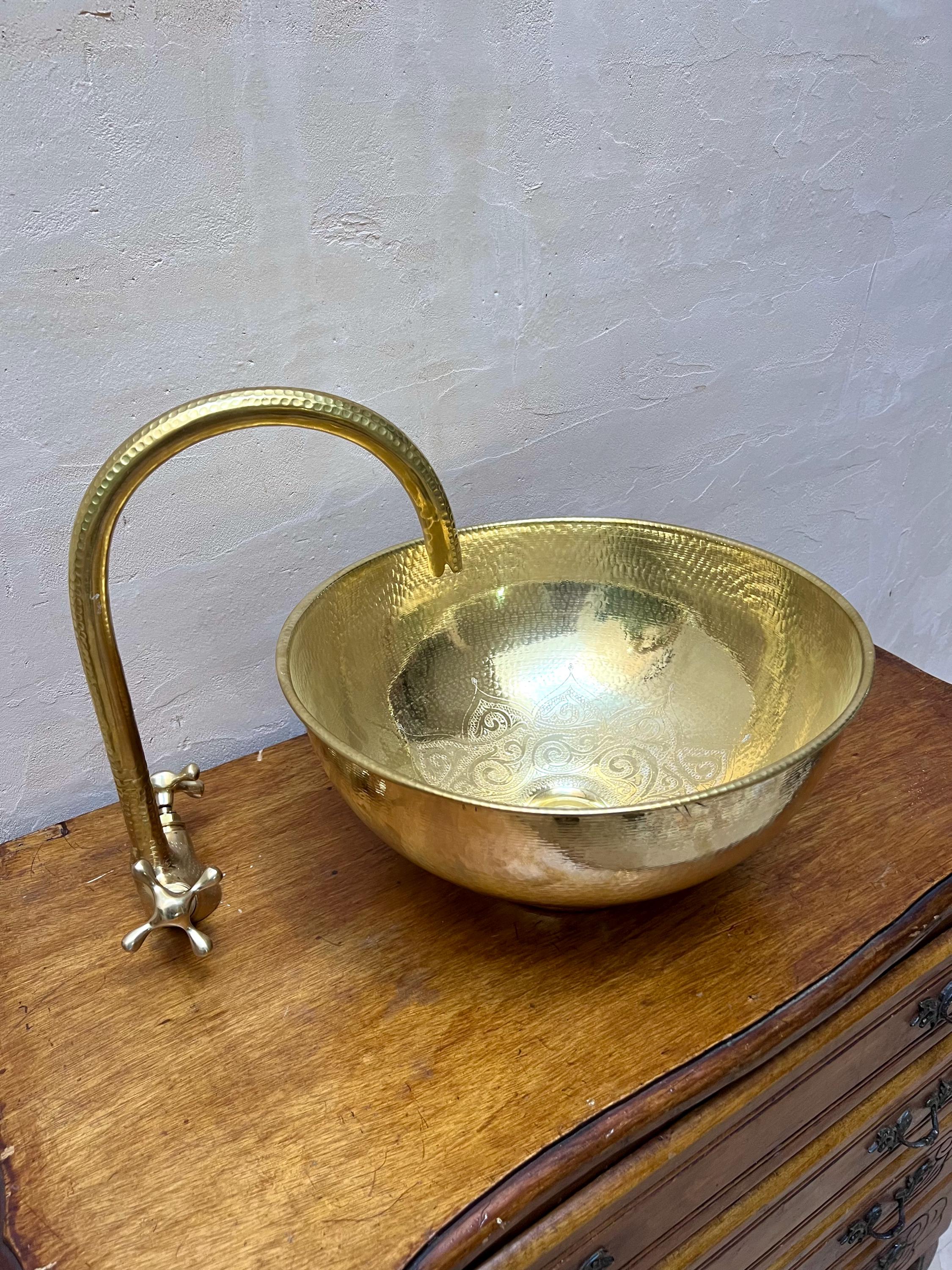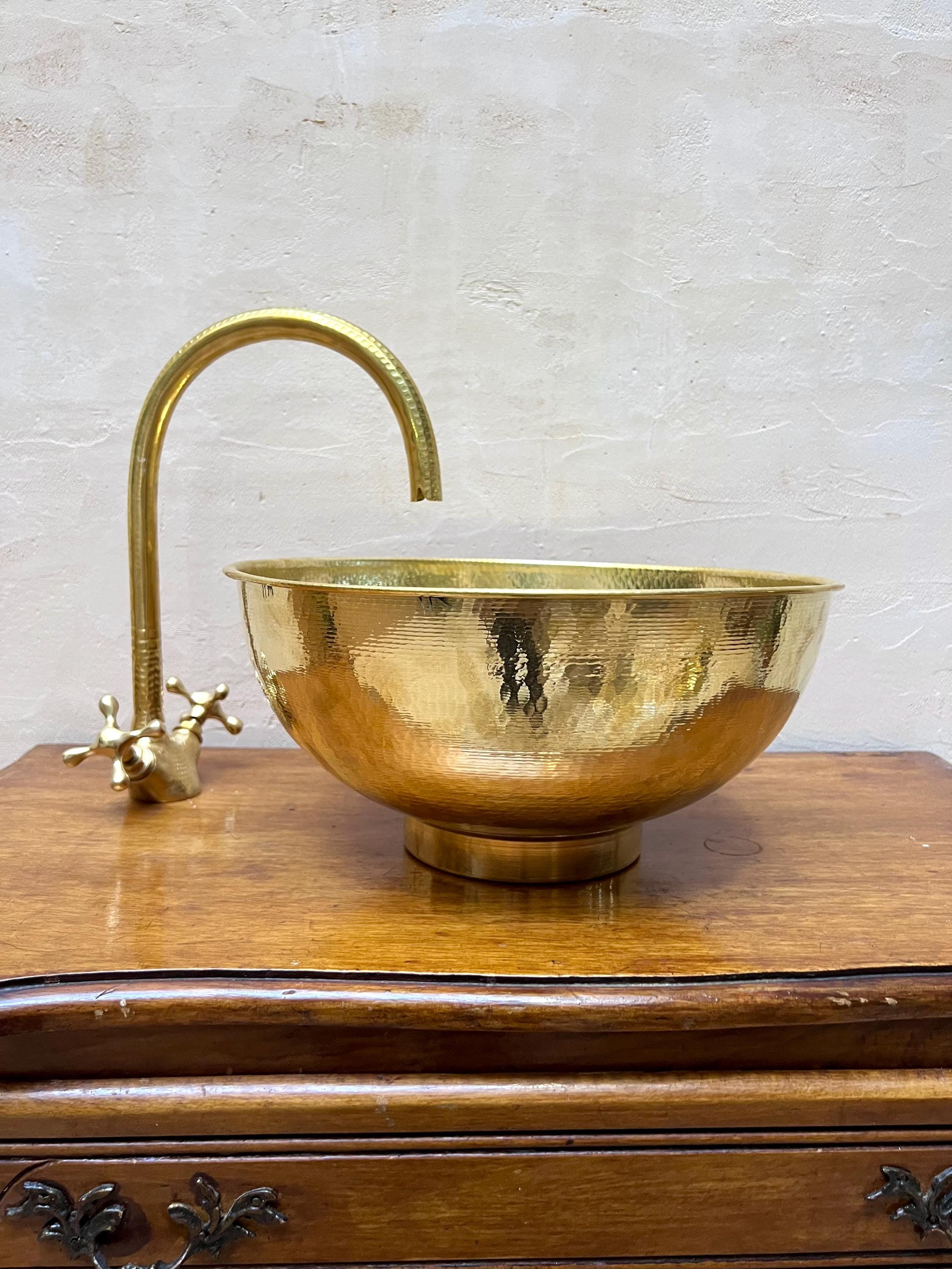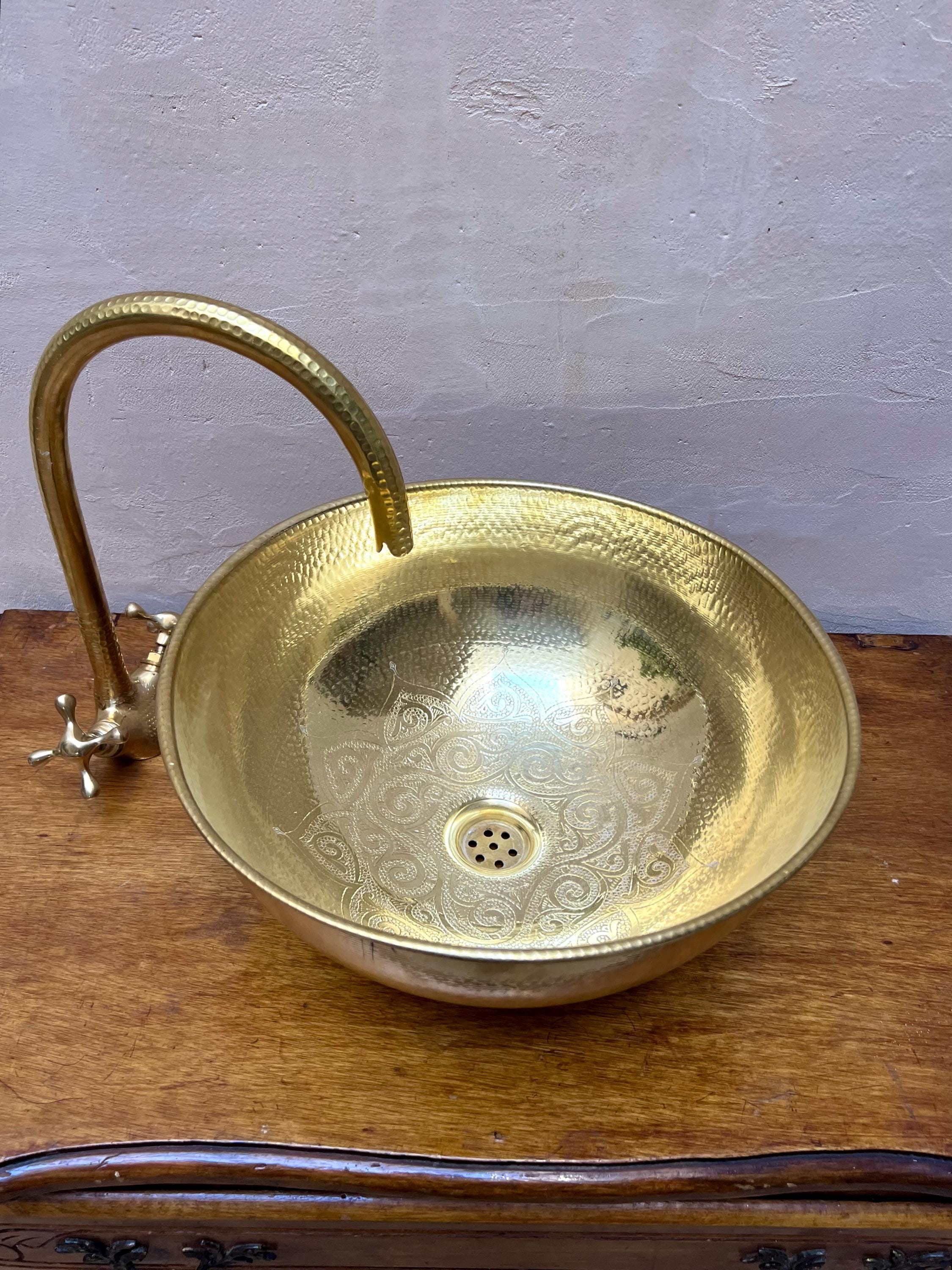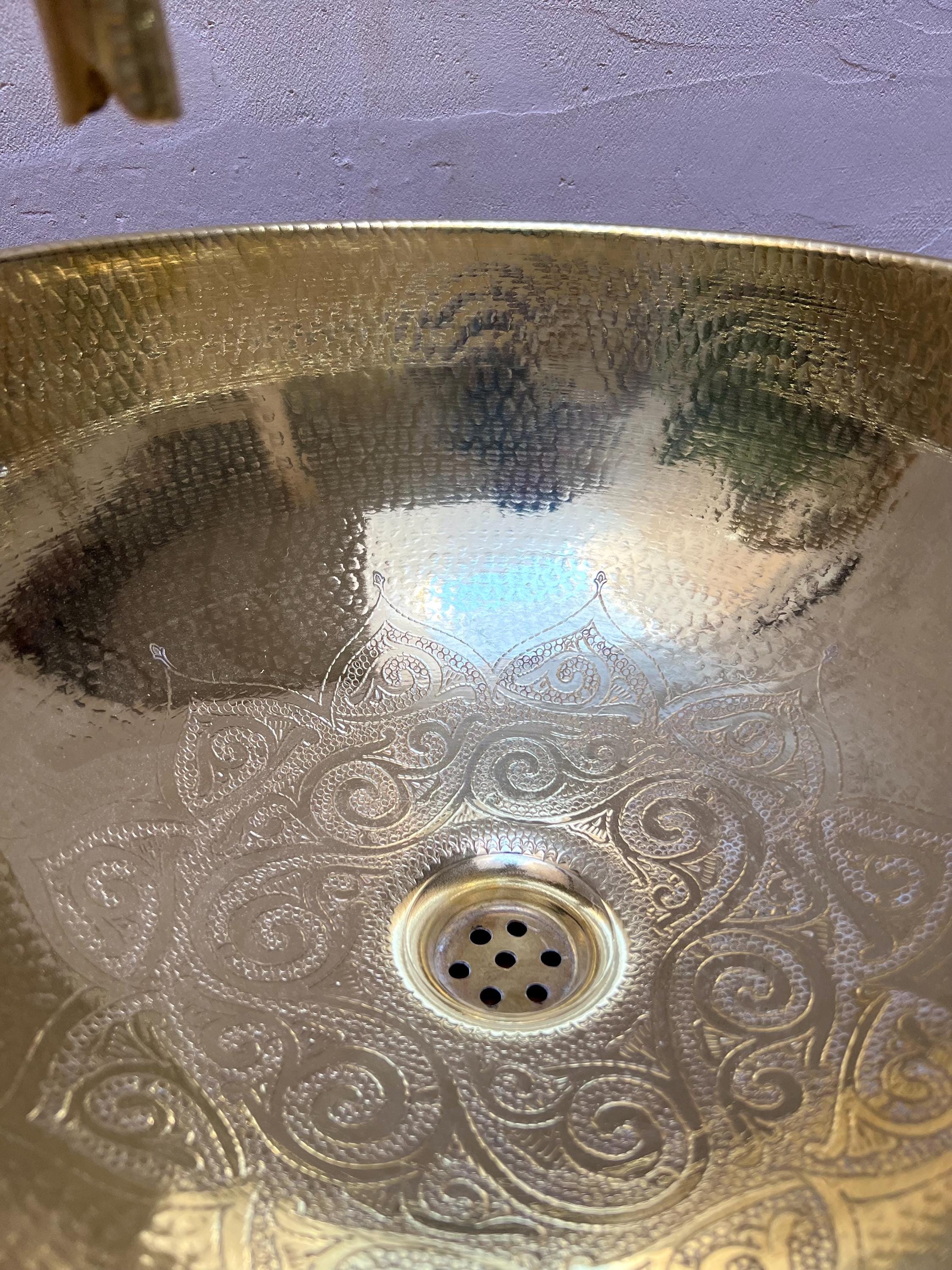 ✔ Size Sink (diameter) : 36 cm - (14 inches), (Height) 20cm - 7.8 inches ✔ Brass Thickness : 16 Gauge ✔ Making & Shipping : Processing Time: 7-10 days ✔ Waste ( Drain) : Copper Included ✔ High-quality brass with a warm, polished finish. 📌 Please add your phone number in the personalization section.