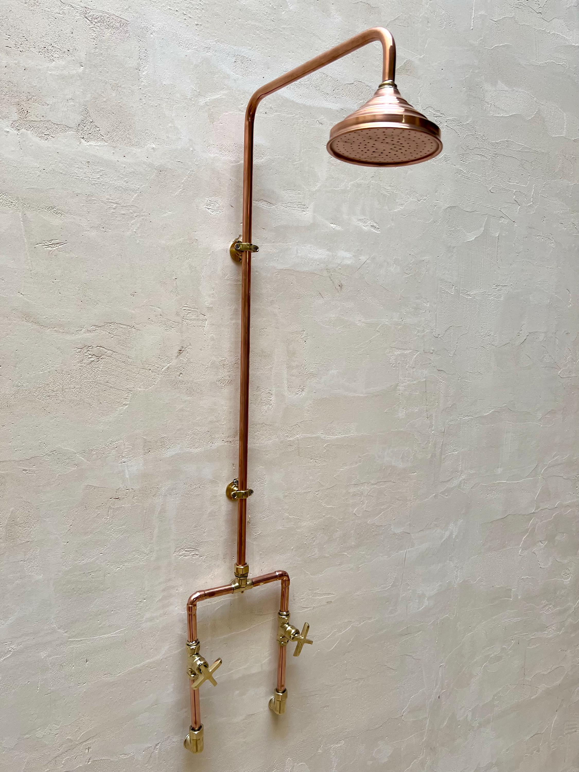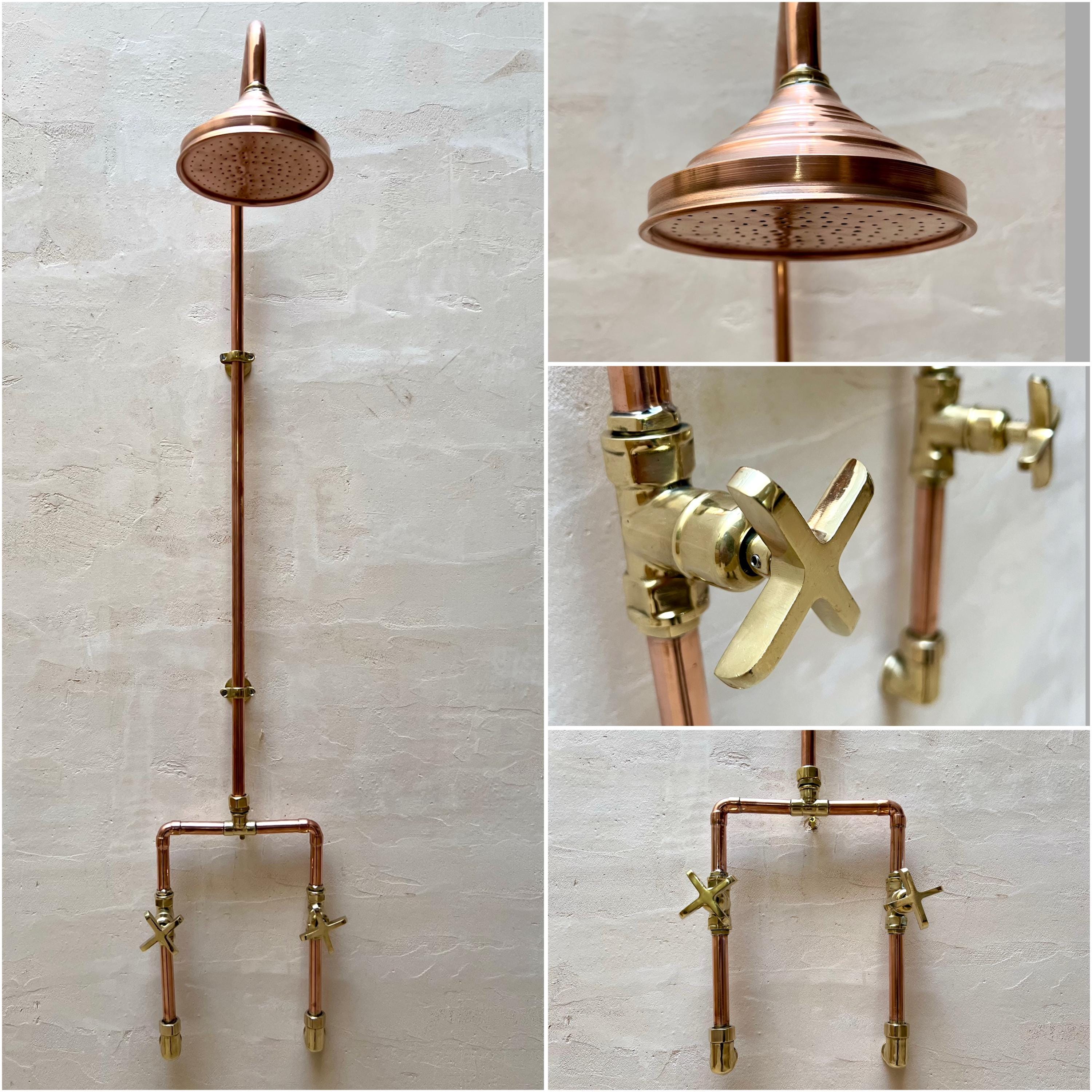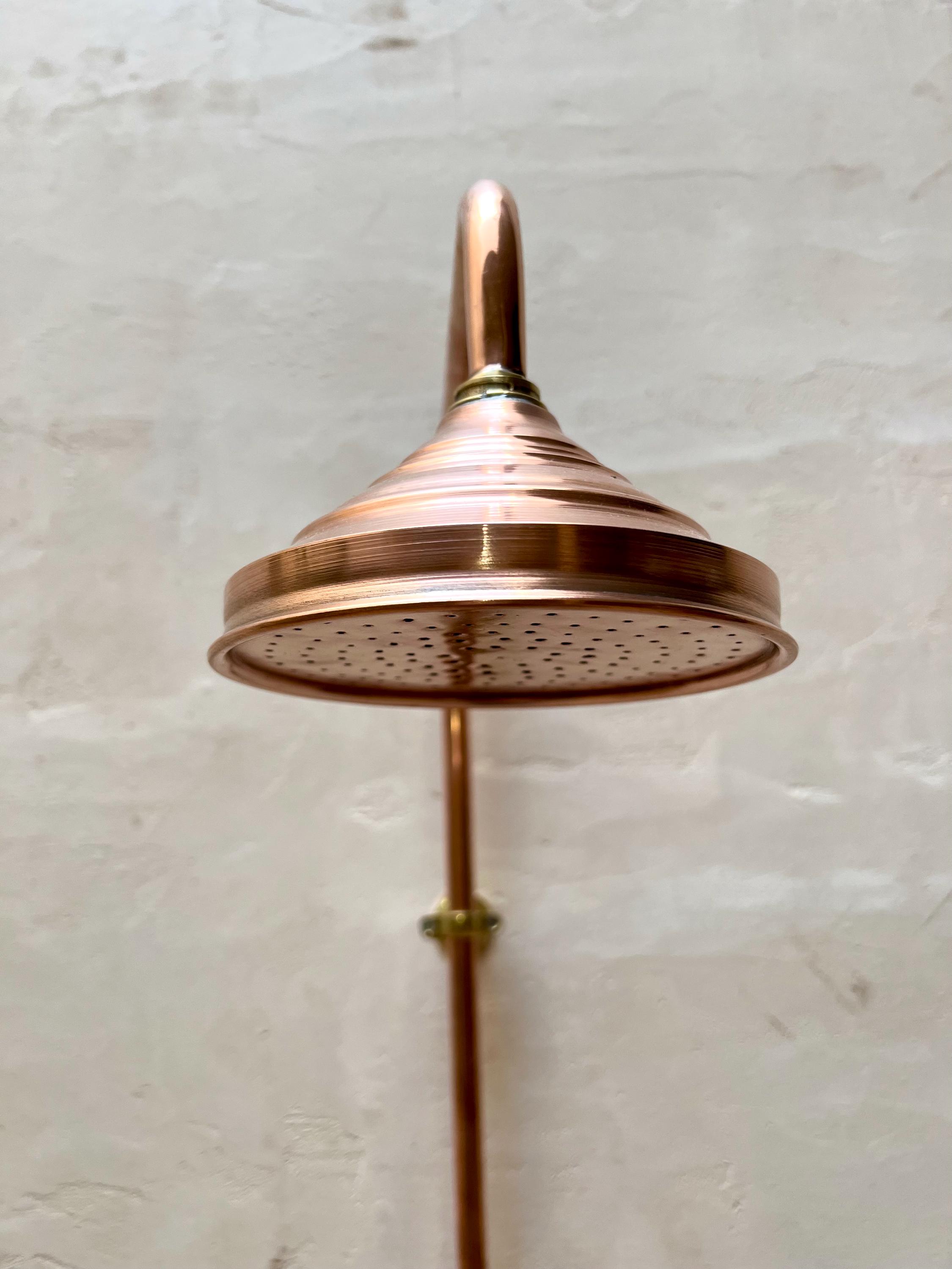 The Moroccan Unlacquered Brass Rainfall Shower System combines timeless elegance with exceptional function. Featuring warm copper and bronze tones, it naturally develops a rich patina over time, adding vintage charm and uniqueness to every piece. With double handles for precise control and a luxurious rainfall design, this handcrafted system is both a stunning statement and a practical upgrade—bringing Moroccan artistry and spa-like serenity to your bathroom.