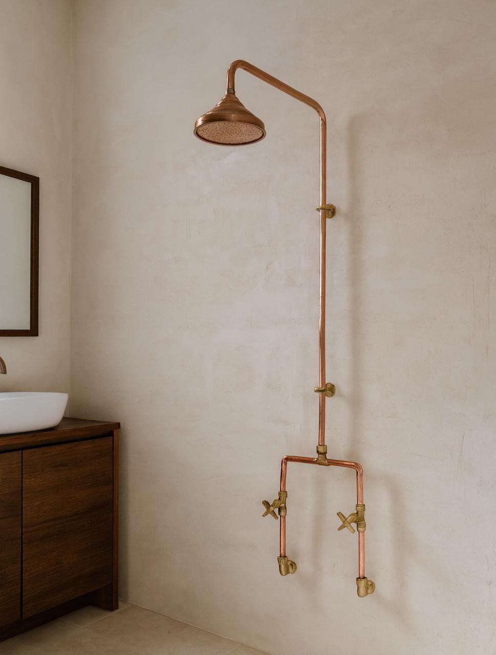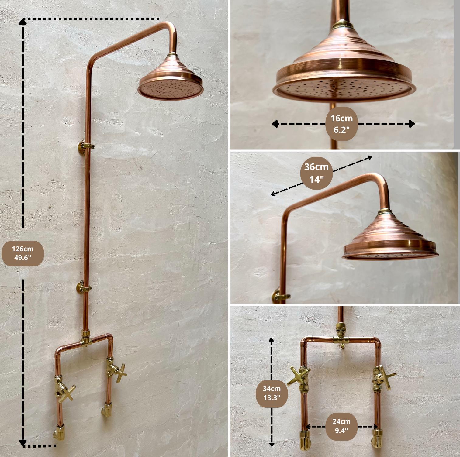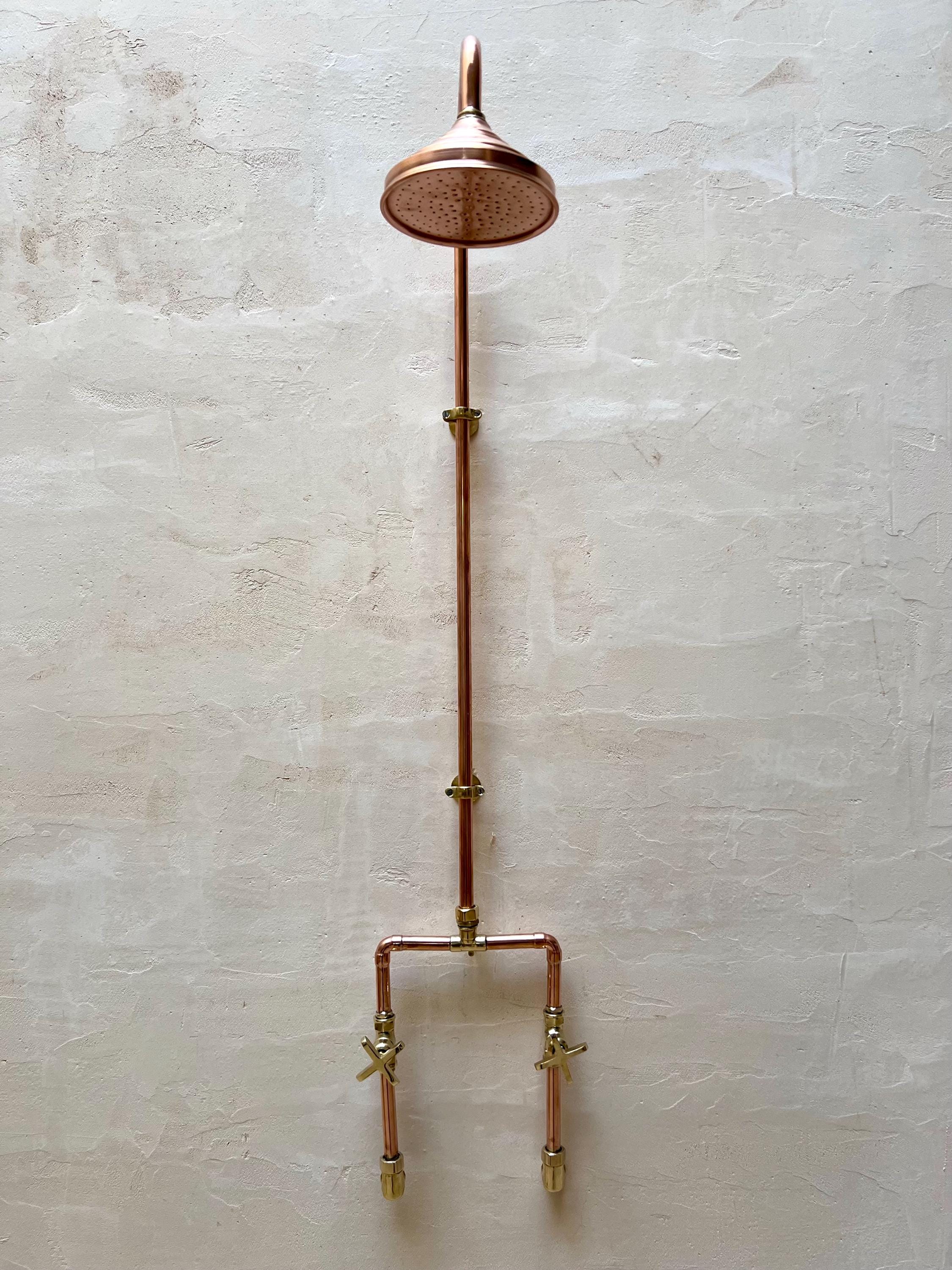 The Moroccan Unlacquered Brass Rainfall Shower System combines timeless elegance with exceptional function. Featuring warm copper and bronze tones, it naturally develops a rich patina over time, adding vintage charm and uniqueness to every piece. With double handles for precise control and a luxurious rainfall design, this handcrafted system is both a stunning statement and a practical upgrade—bringing Moroccan artistry and spa-like serenity to your bathroom.