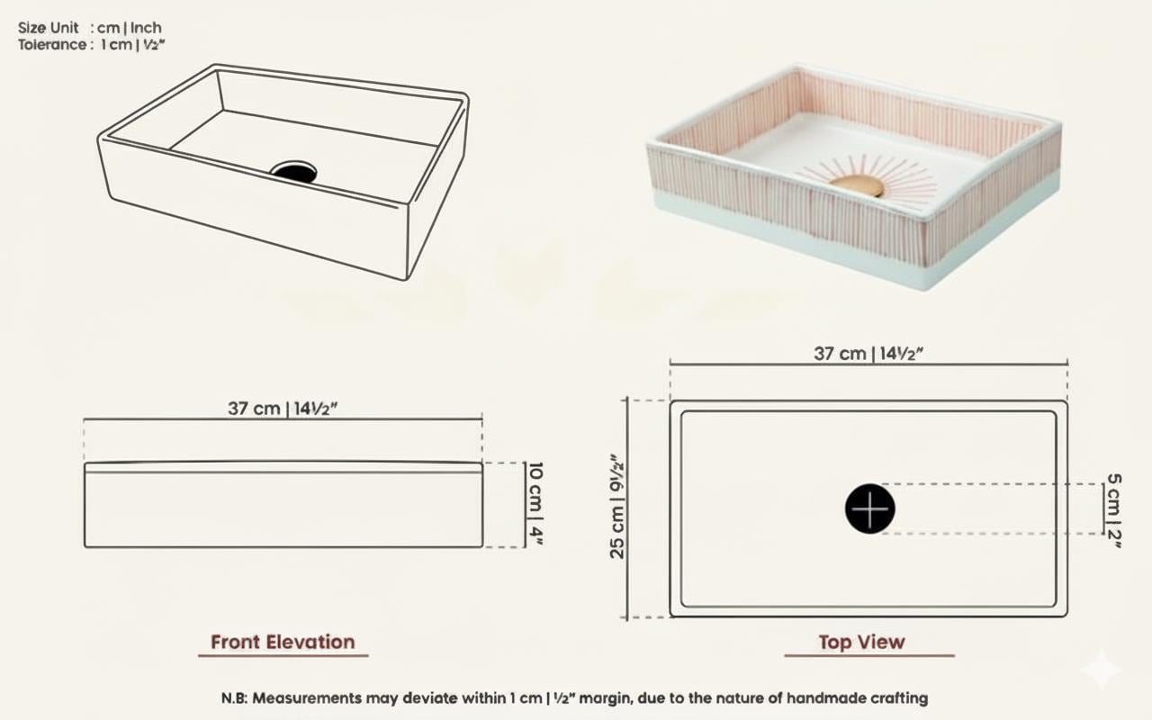 ✔ Size ( Big ) : 47 x 25 x 10 cm / 18.5 x 9.8 x 3.9 Inches ✔ Size Medium : 38 x 26 x 10 cm / 14.9 x 10.2 x 3.9 inches ✔ Making & Shipping : Processing Time: 7-10 days ✔ Drain (Waste) : (Copper & Silver) Included For Free
