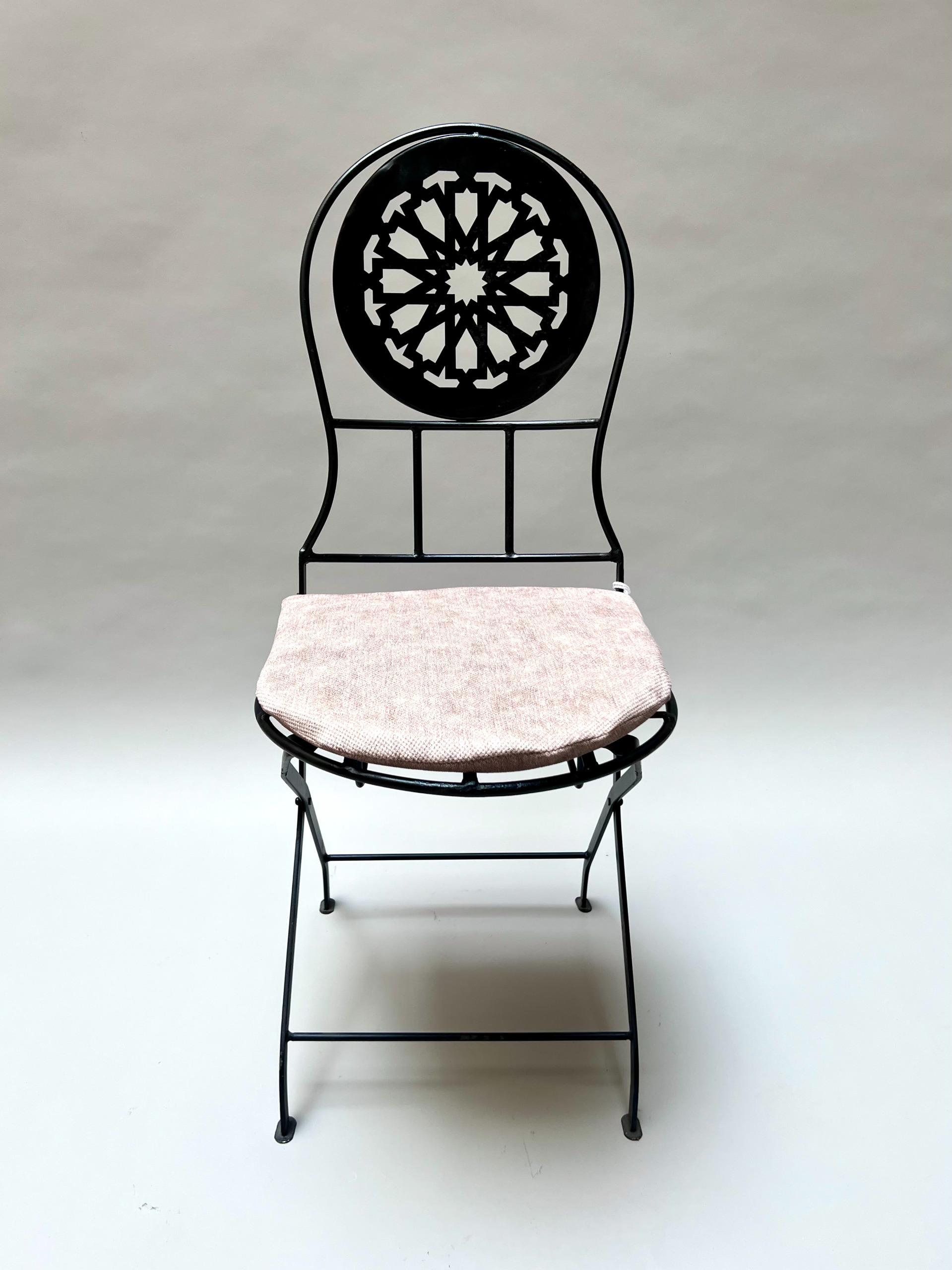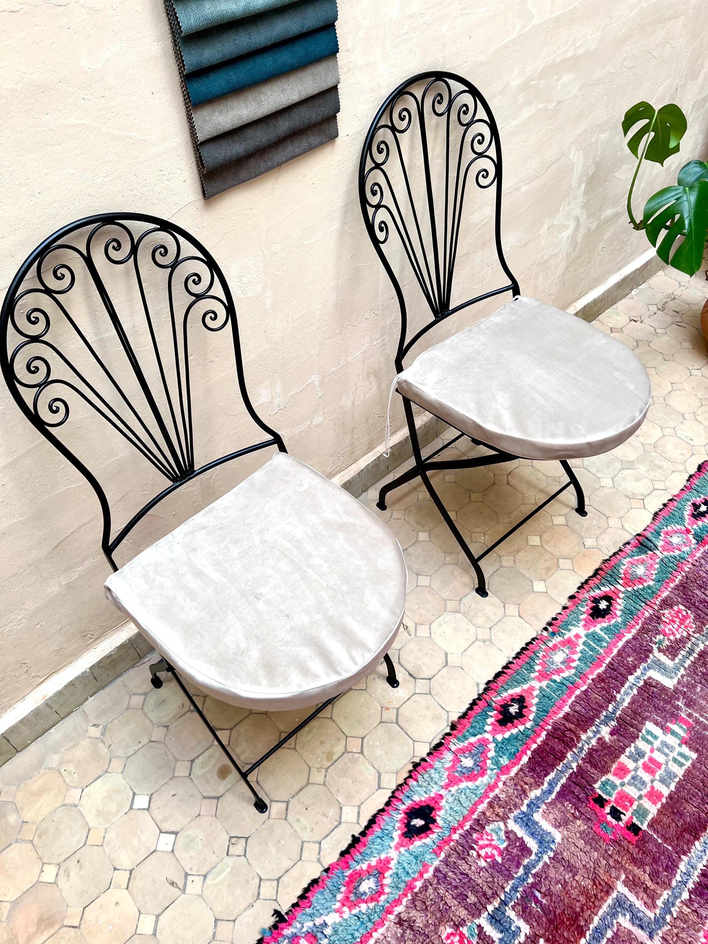 ✨ Features: ✔ Hand-forged iron with intricate Moroccan detailing ✔ Durable & weather-resistant for long-lasting use ✔ Foldable design for easy storage and transport ✔ Available in multiple finishes and cushions Color option ✔ Free Chair cushion