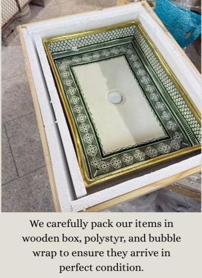 ✔ Size ( Big ) : 47 x 25 x 10 cm / 18.5 x 9.8 x 3.9 Inches ✔ Size Medium : 38 x 26 x 10 cm / 14.9 x 10.2 x 3.9 inches ( If you want this size contact us please) ✔ Making & Shipping : Processing Time: 7-10 days ✔ Drain (Waste) : (Copper & Silver) Included For Free