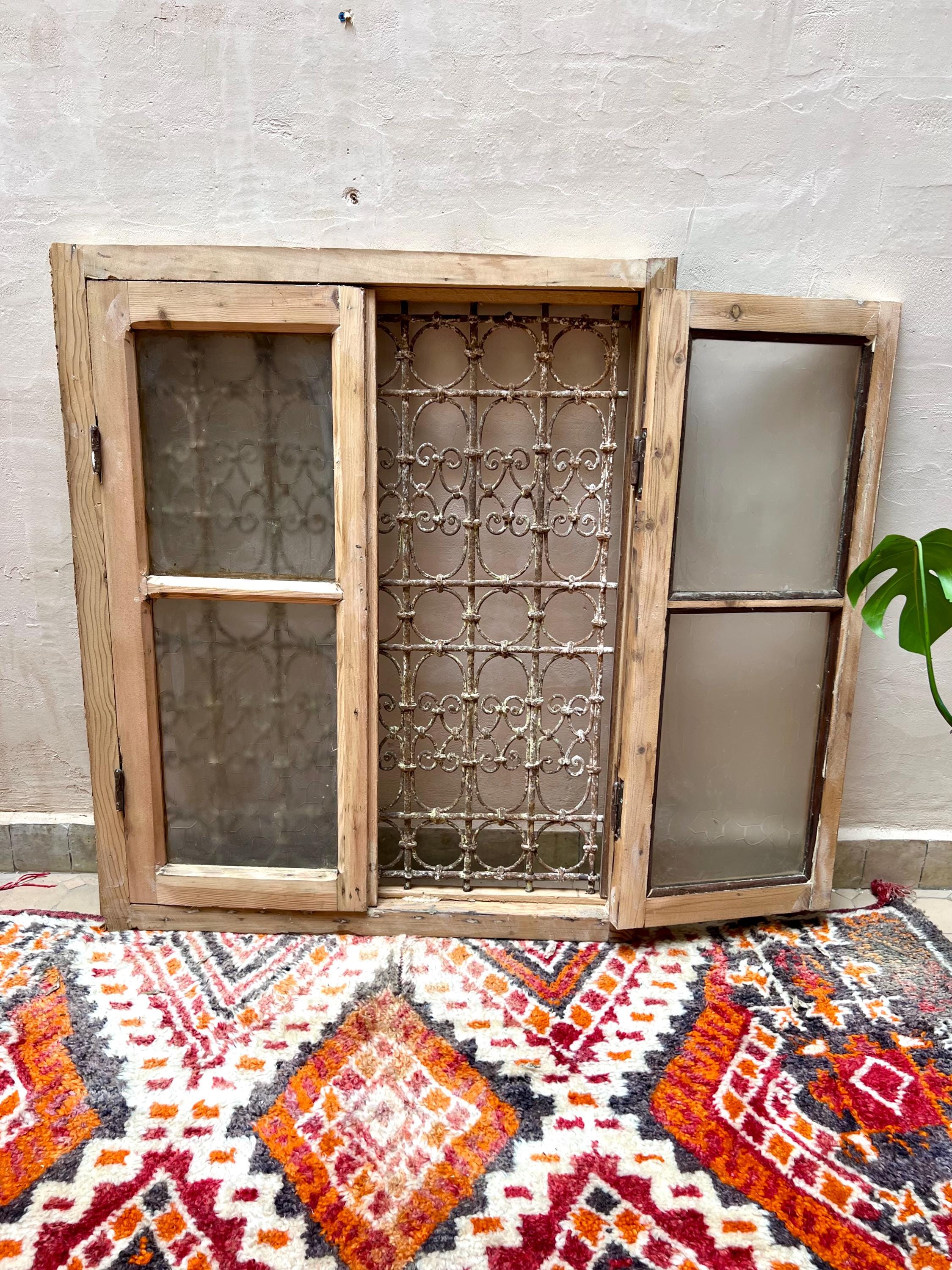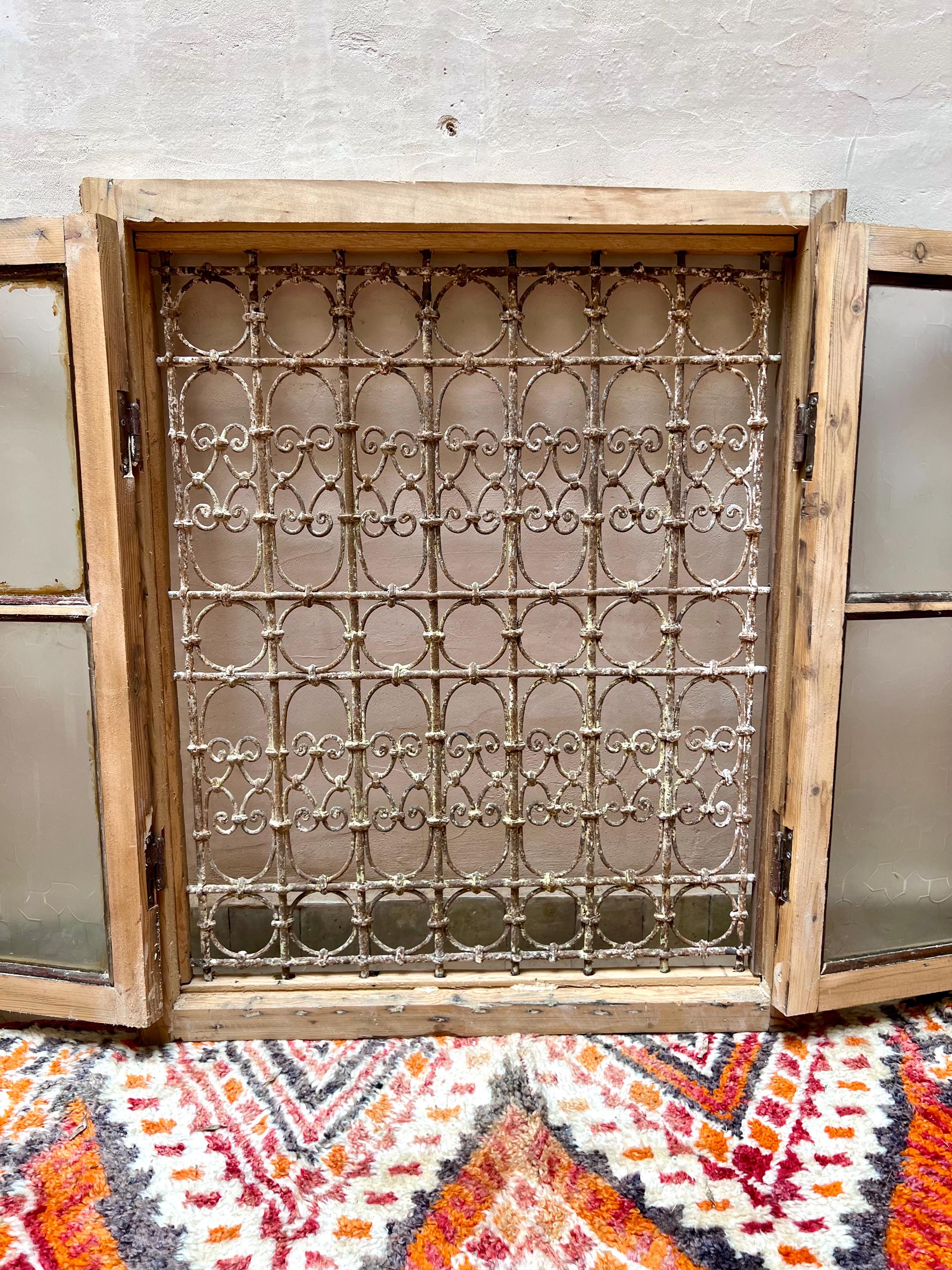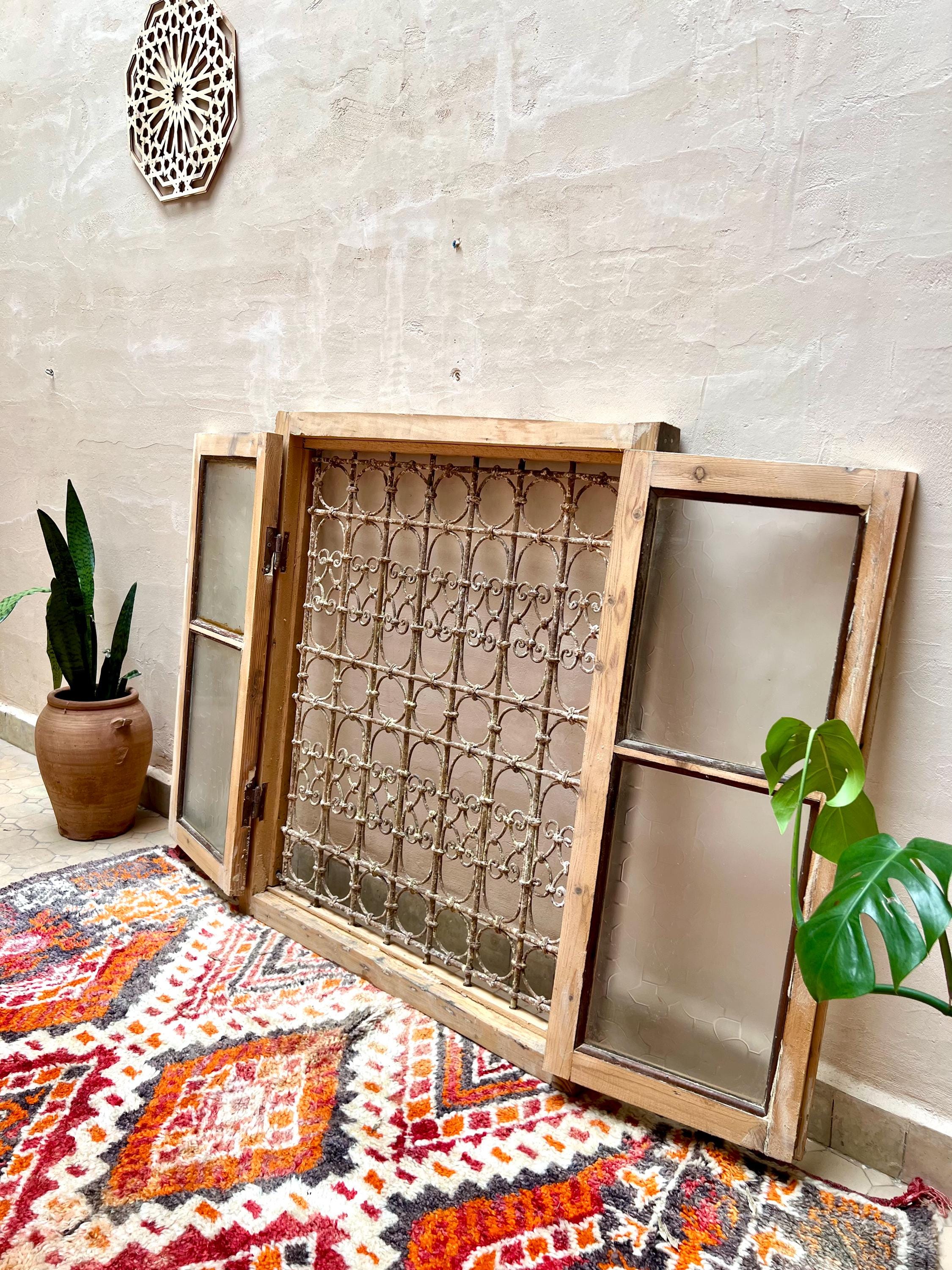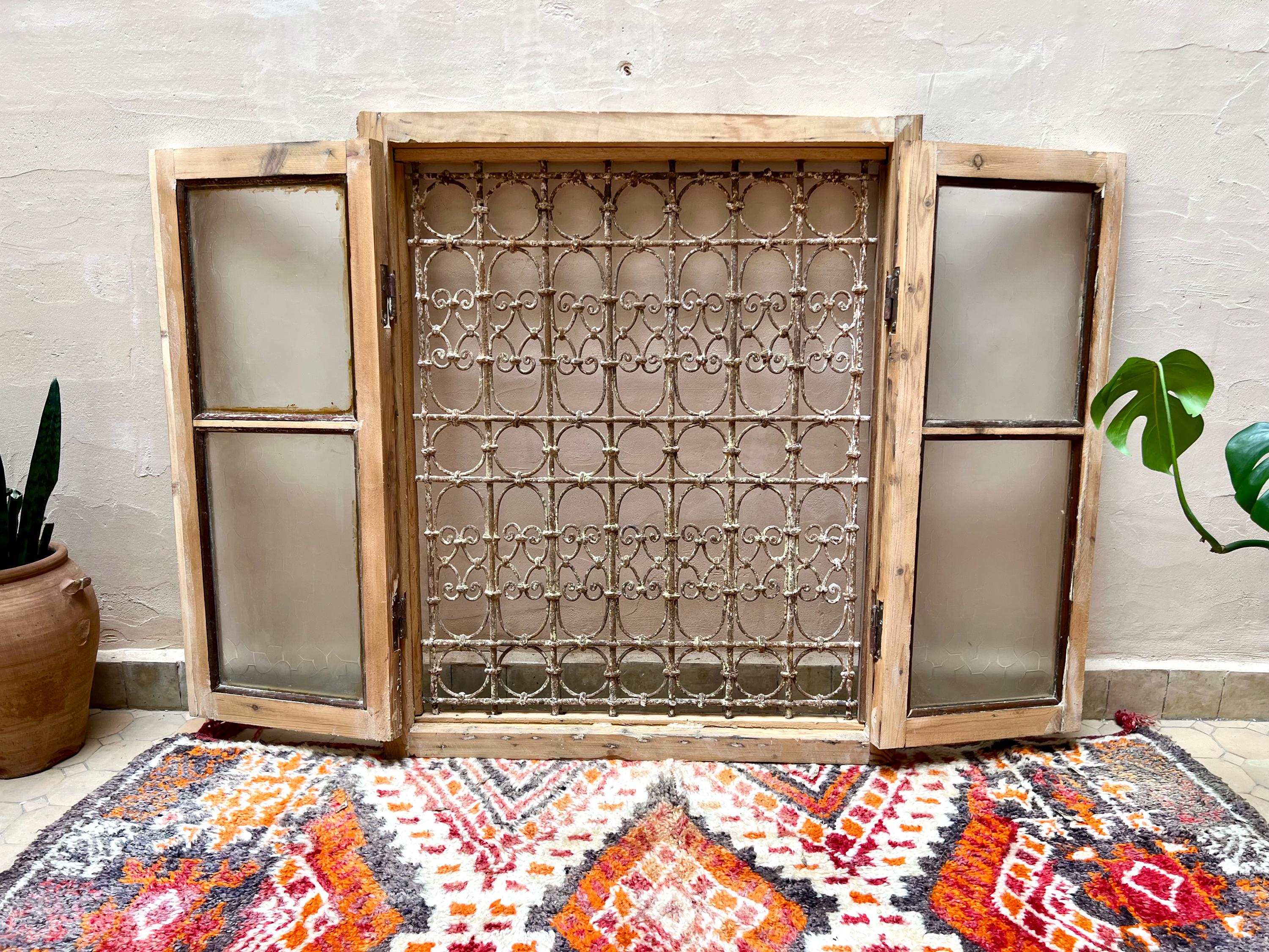 Authentic antique cedar wood windows, over 100 years old and beautifully restored, salvaged from traditional Moroccan homes. Crafted from high-quality cedar, they showcase the rich textures and details of classic Moroccan architecture. Each piece brings rustic, This charm authentic wood windows, over 100 years old and beautifully restored. Each piece brings rustic, vintage character and can be customized in size or iron paint to suit your space. Perfect for adding timeless elegance to any room. Contact us for custom requests!