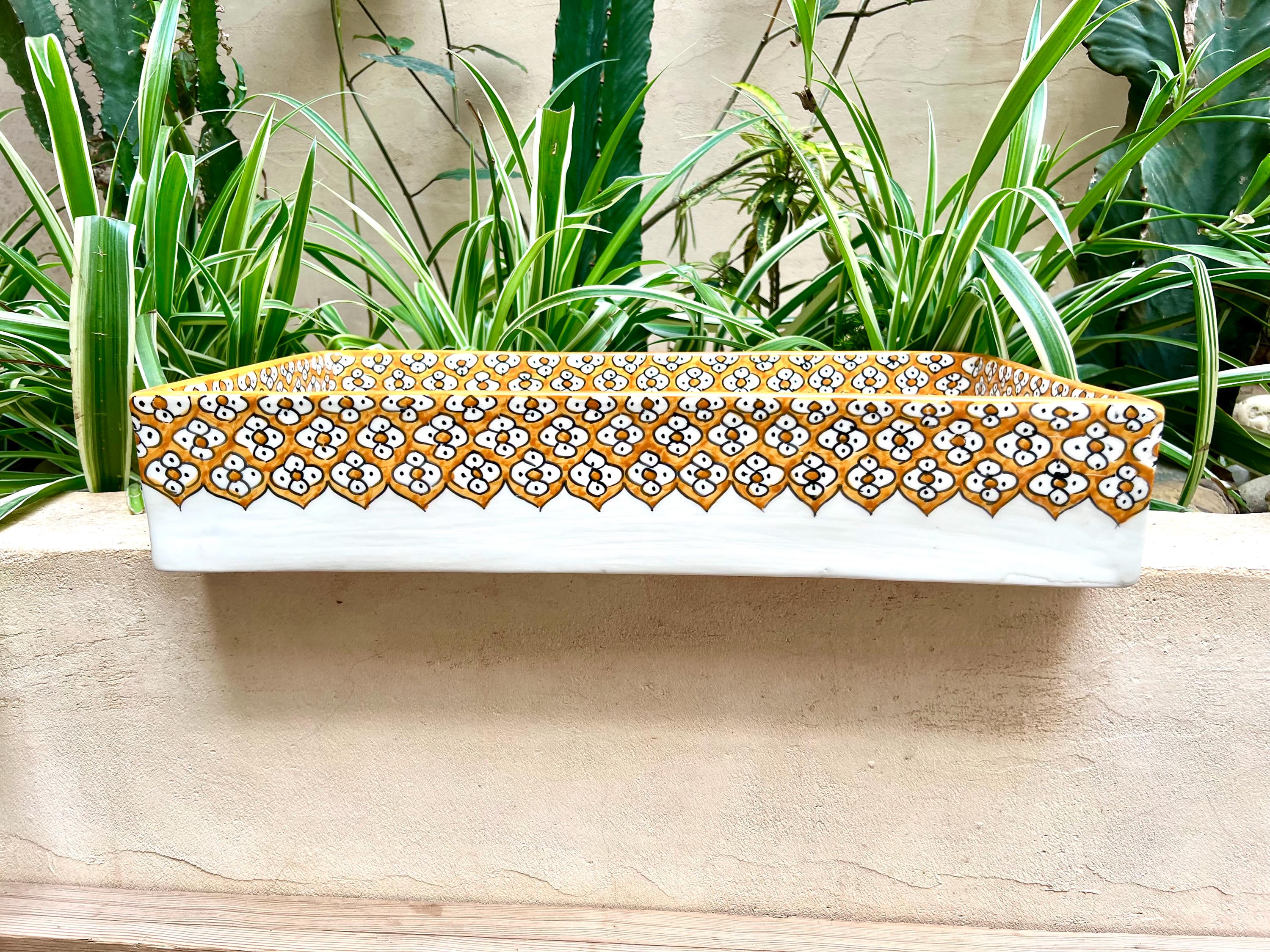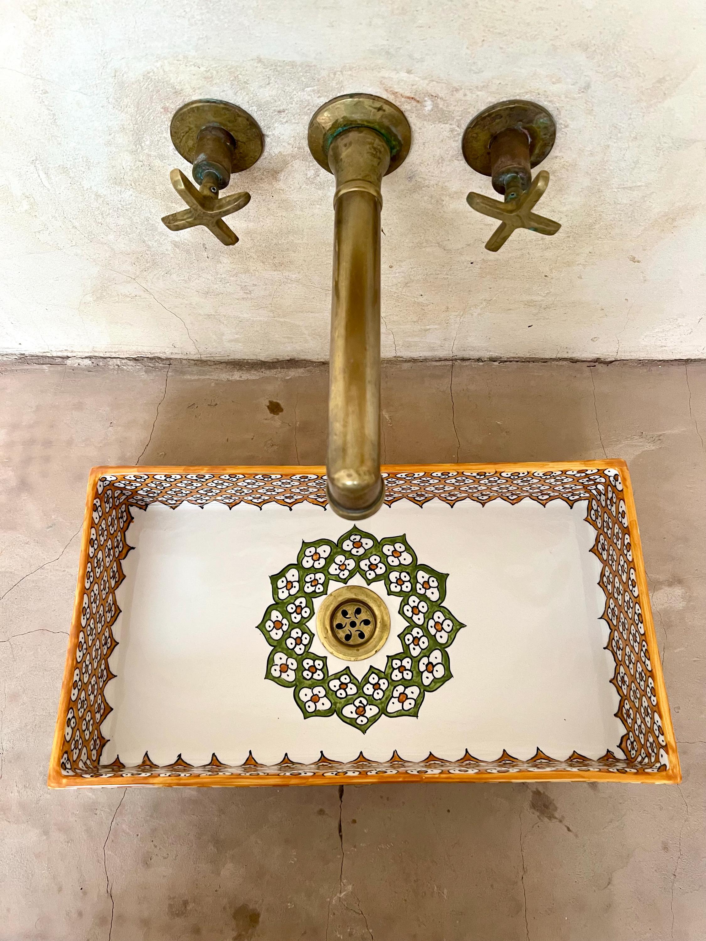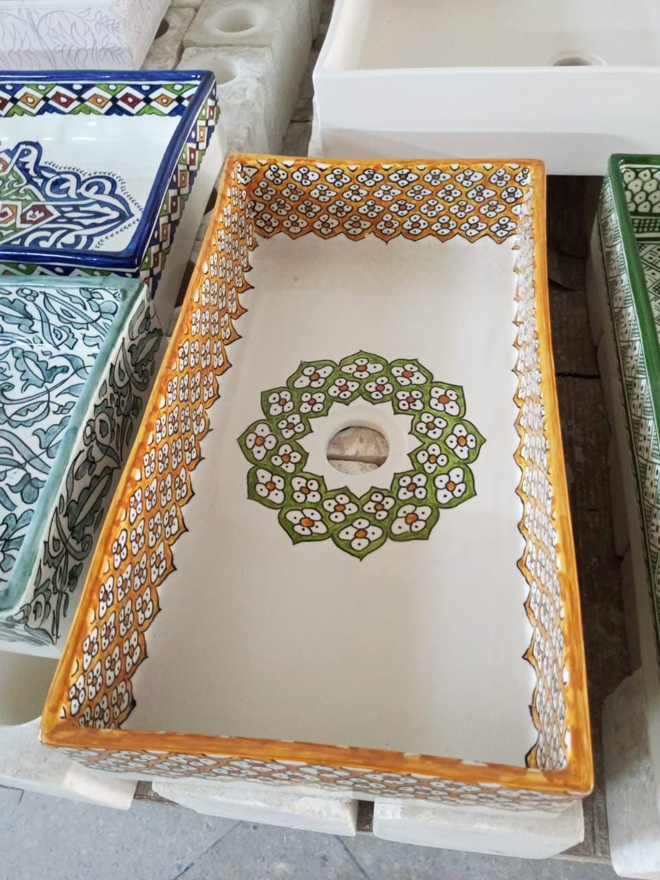 This beautiful Moroccan rectangular sink is handmade by skilled artisans using high-quality ceramic. Featuring traditional hand-painted designs and a smooth glazed finish, it is both durable and easy to clean. Perfect for kitchens, bathrooms, or powder rooms, it adds a unique touch of Moroccan charm to any space. The sink comes with both silver and copper drains included for free. If you need a different size, feel free to contact us.