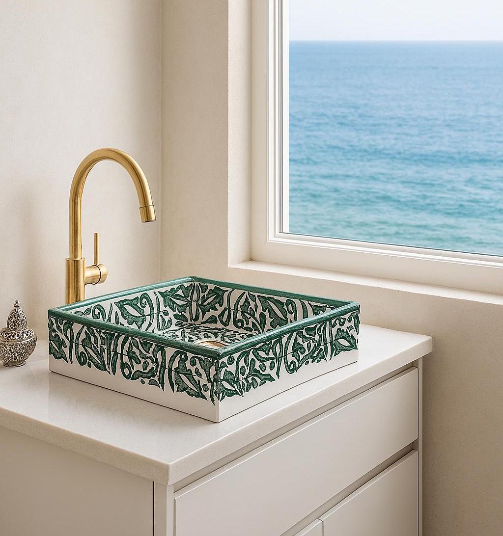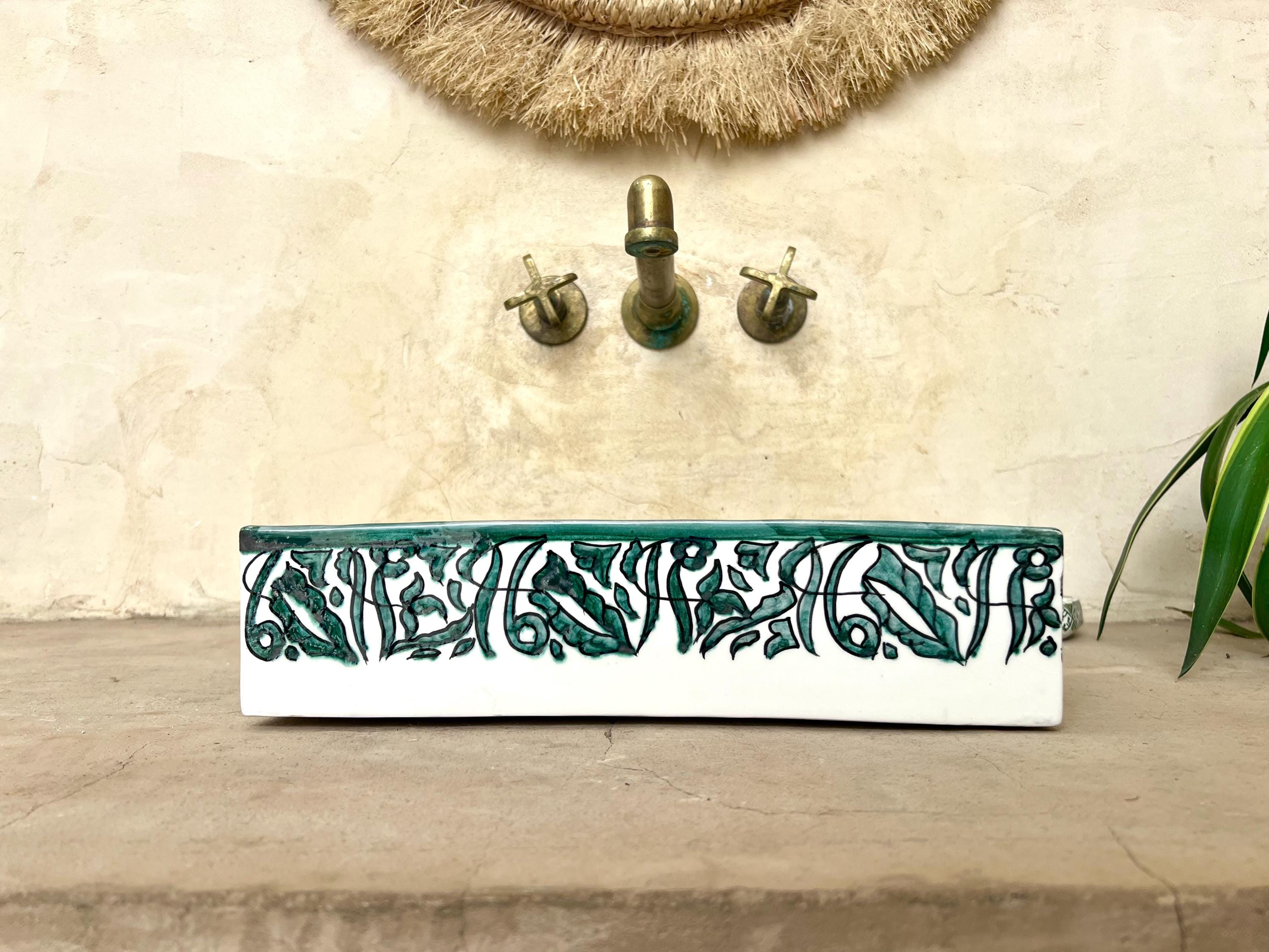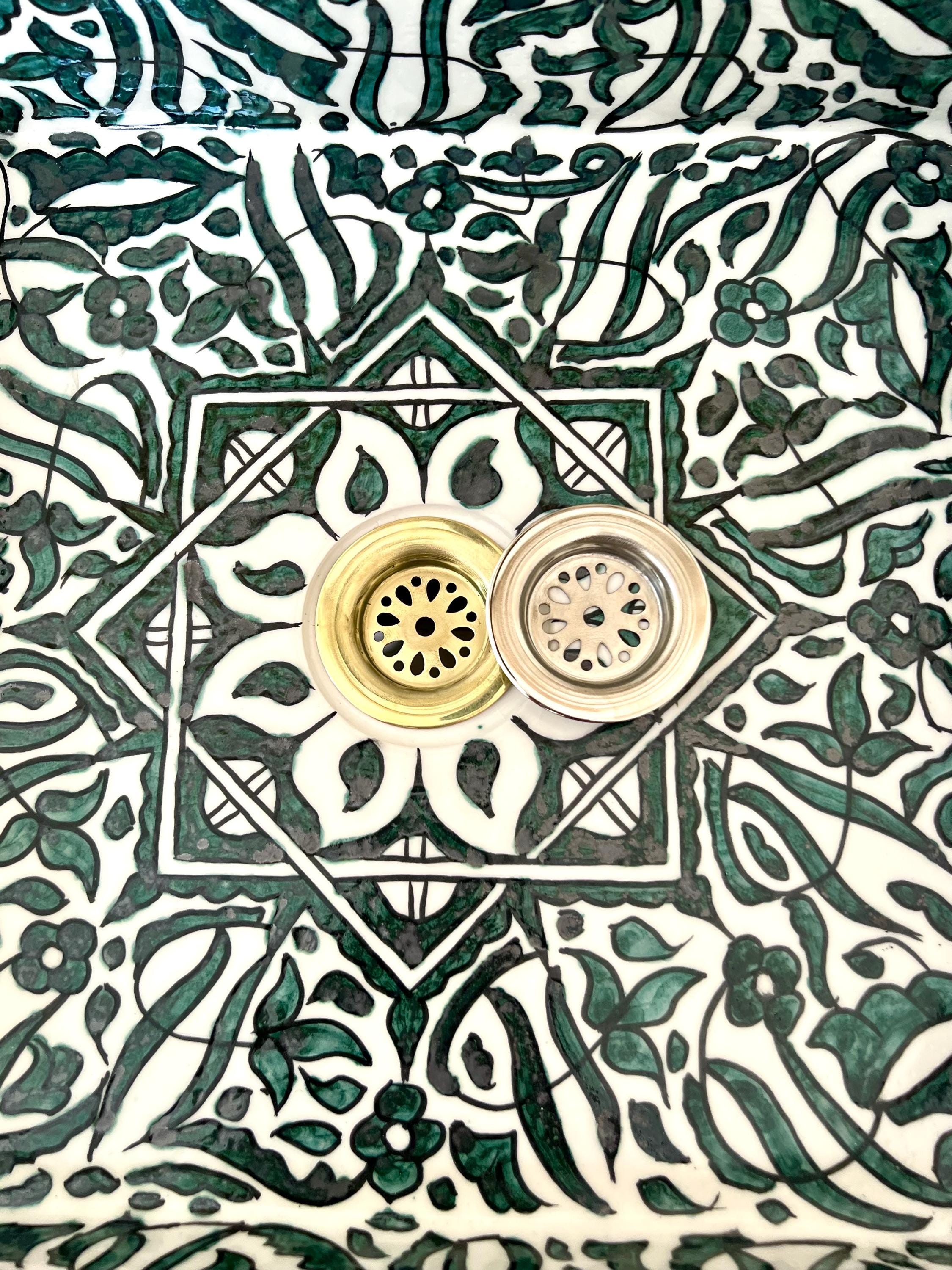 This beautiful Moroccan rectangular sink is handmade by skilled artisans using high-quality ceramic. Featuring traditional hand-painted designs and a smooth glazed finish, it is both durable and easy to clean. Perfect for kitchens, bathrooms, or powder rooms, it adds a unique touch of Moroccan charm to any space. The sink comes with both silver and copper drains included for free. If you need a different size, feel free to contact us.