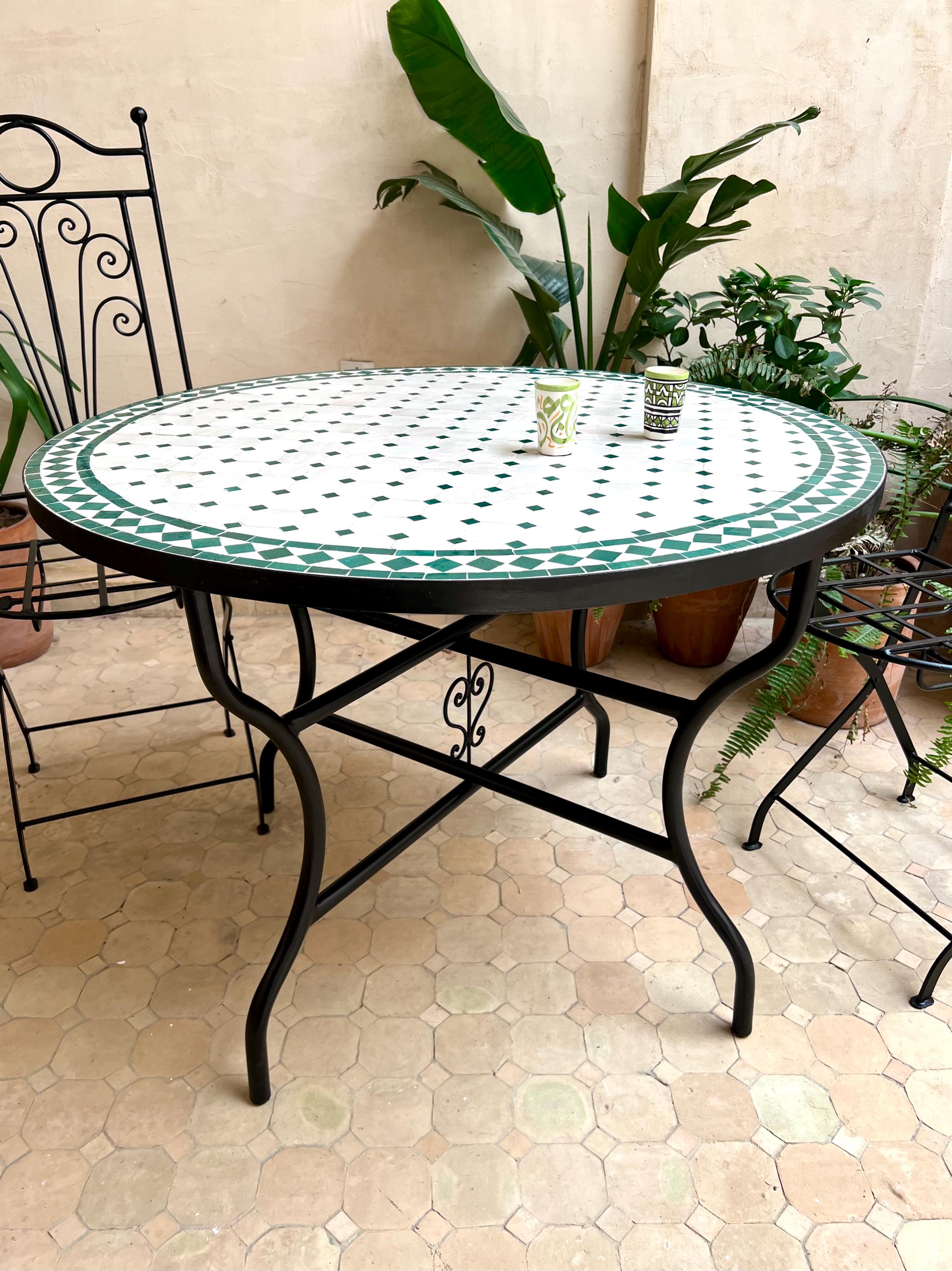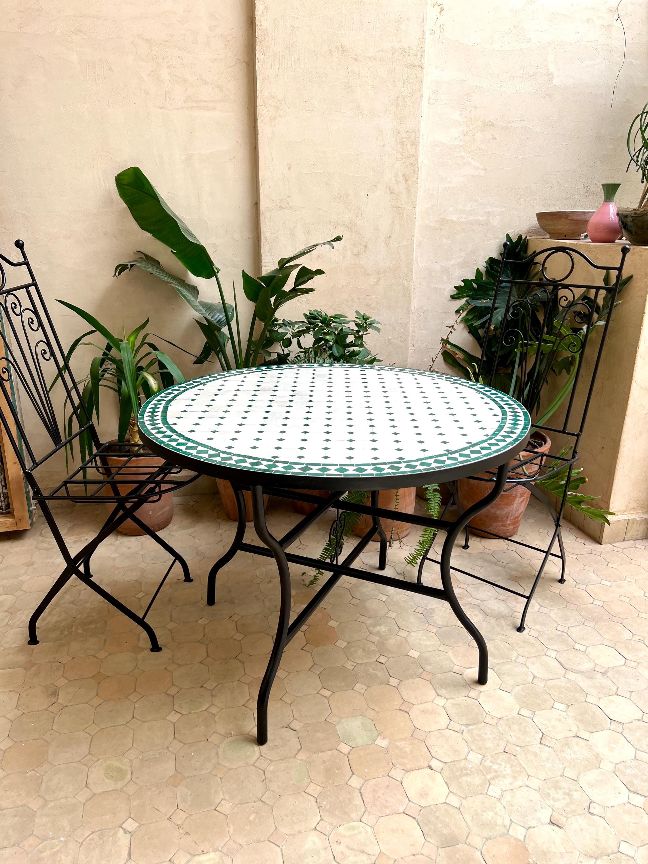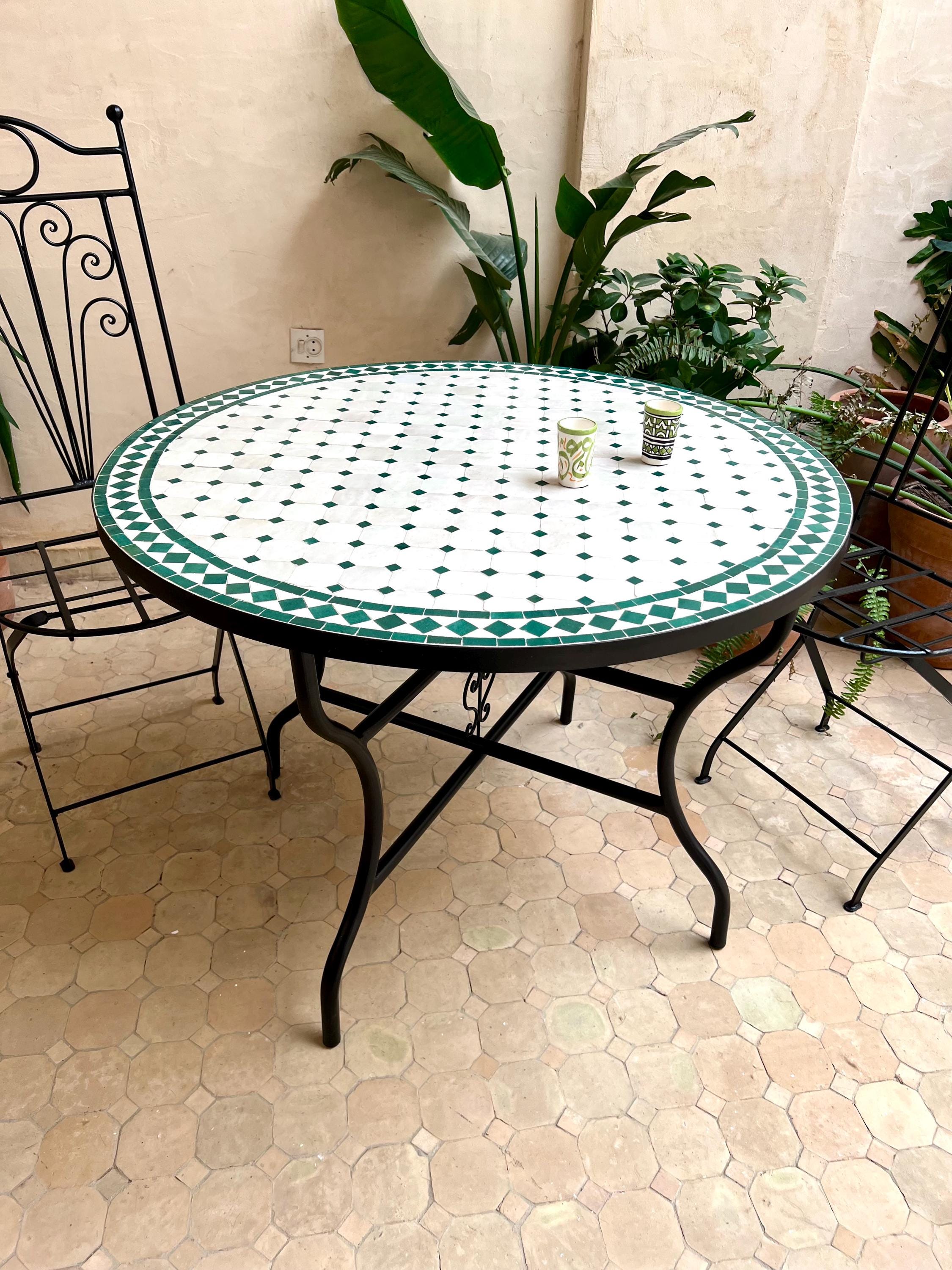 Moroccan Mosaic Table has been known for its beauty and craftsmanship for centuries, symbolizing the rich artistic traditions of Morocco. Handmade by skilled artisans, each table features intricate mosaic patterns crafted from colorful zellige tiles, making every piece truly unique. Perfect for indoor and outdoor use, these tables add a vibrant, exotic touch to gardens, patios, living rooms, or balconies. If placed on an open-air terrace or garden, the table should be covered during snow, rain, or hard cold to preserve its beauty and durability. We also offer wholesale deals, making these tables a perfect choice for restaurants, hotels, balconies, gardens, and lobbies looking to create a warm and welcoming atmosphere. Durable and timeless, a Moroccan mosaic table fits effortlessly into bohemian, Mediterranean, and modern decor styles.