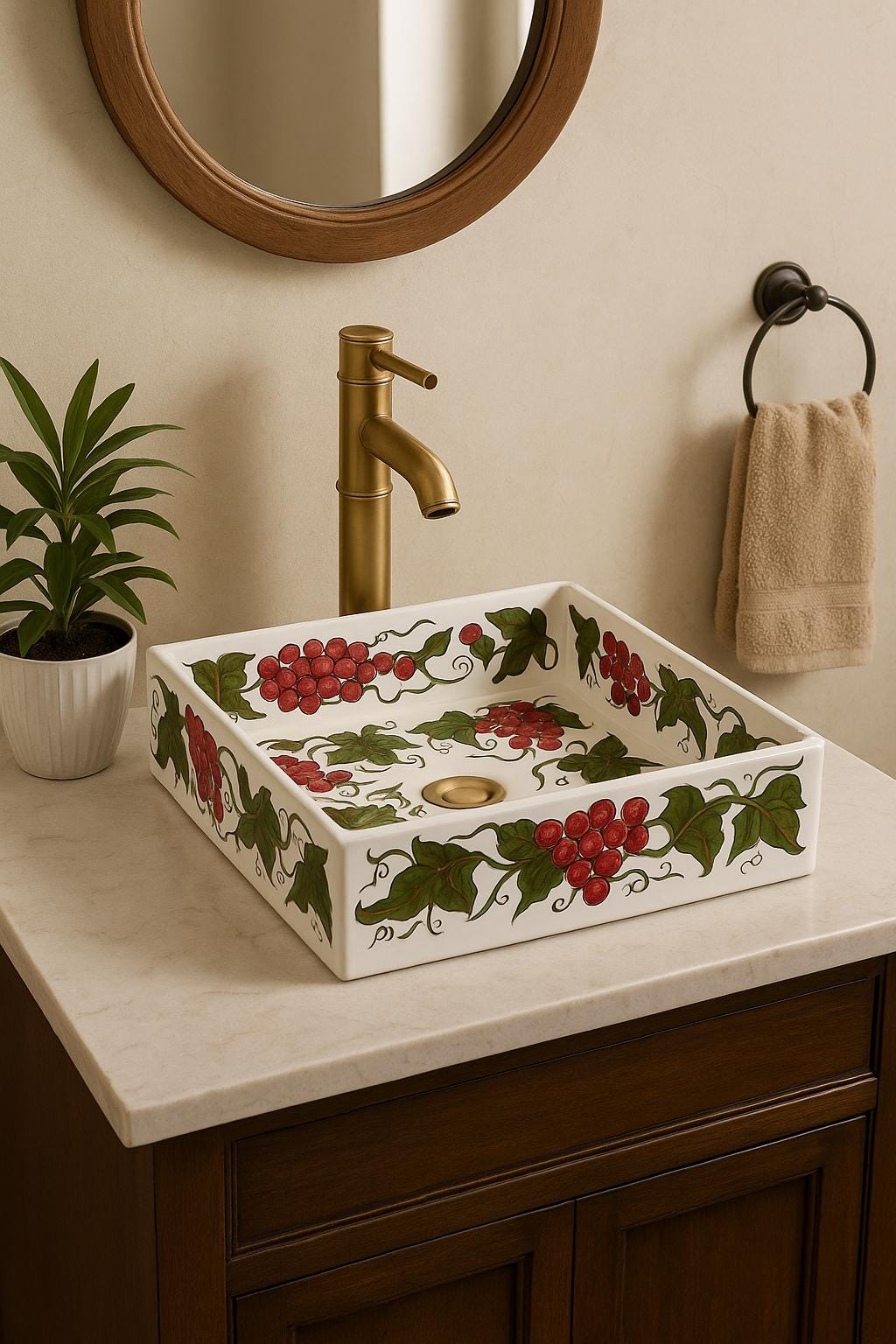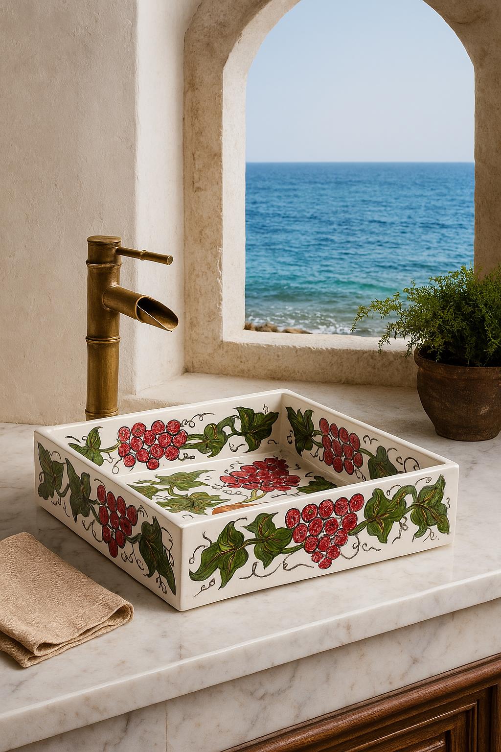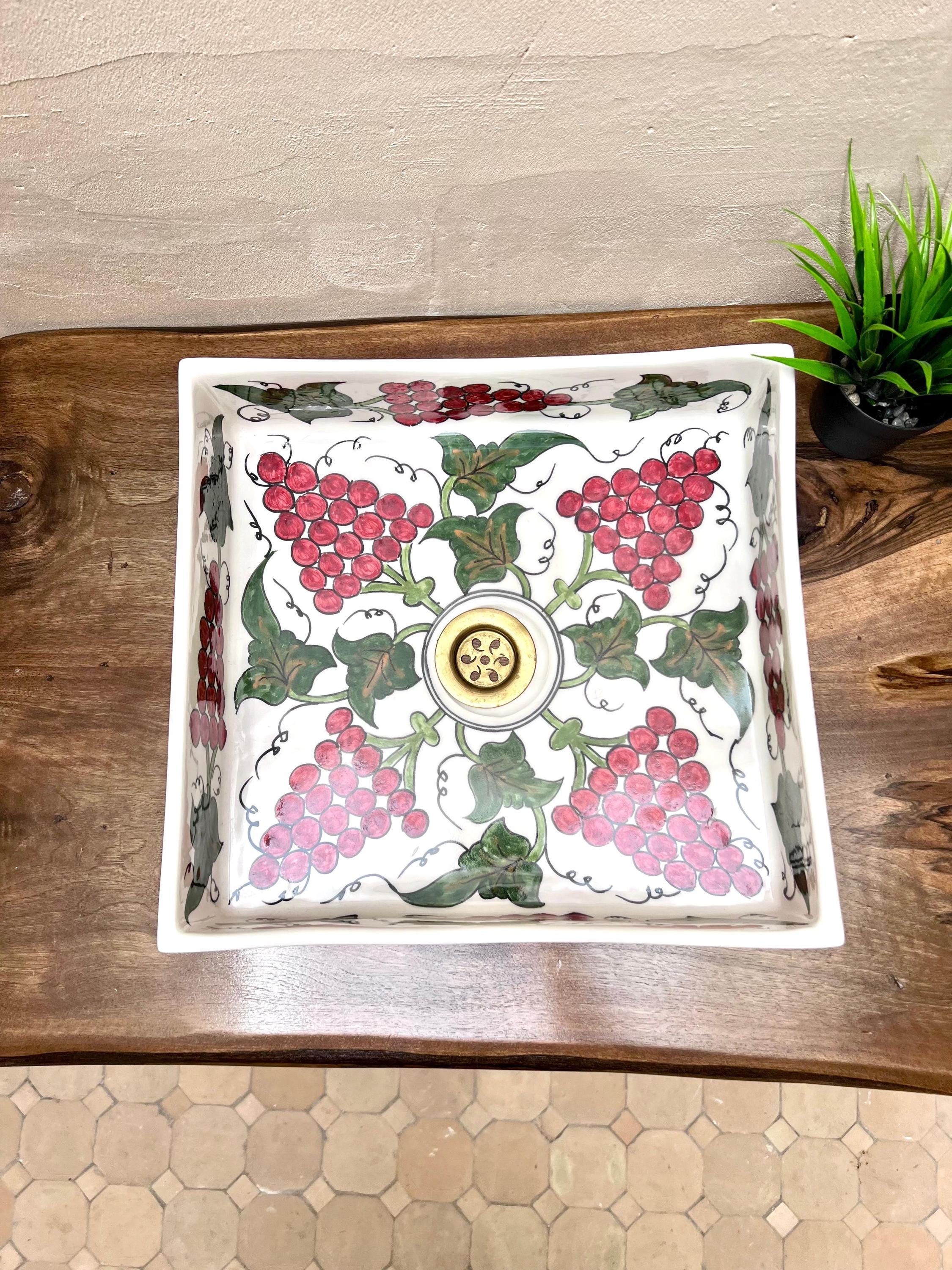 BohoDesign Artisanat – Exclusive Hand-Painted Flower Design Rectangular Sink Discover our exclusive BohoDesign artisanat rectangular sink, a masterpiece of hand-painted Moroccan craftsmanship. Carefully designed by skilled artisans, this one-of-a-kind sink features an intricate floral motif, blending bohemian charm with traditional artistry. Made from premium ceramic, its vibrant colors and detailed patterns bring warmth and elegance to any bathroom or kitchen. With its sleek rectangular shape, this sink is both a functional and artistic statement piece, perfect for those who appreciate authentic, handcrafted design. Elevate your space with a unique touch of Moroccan heritage.