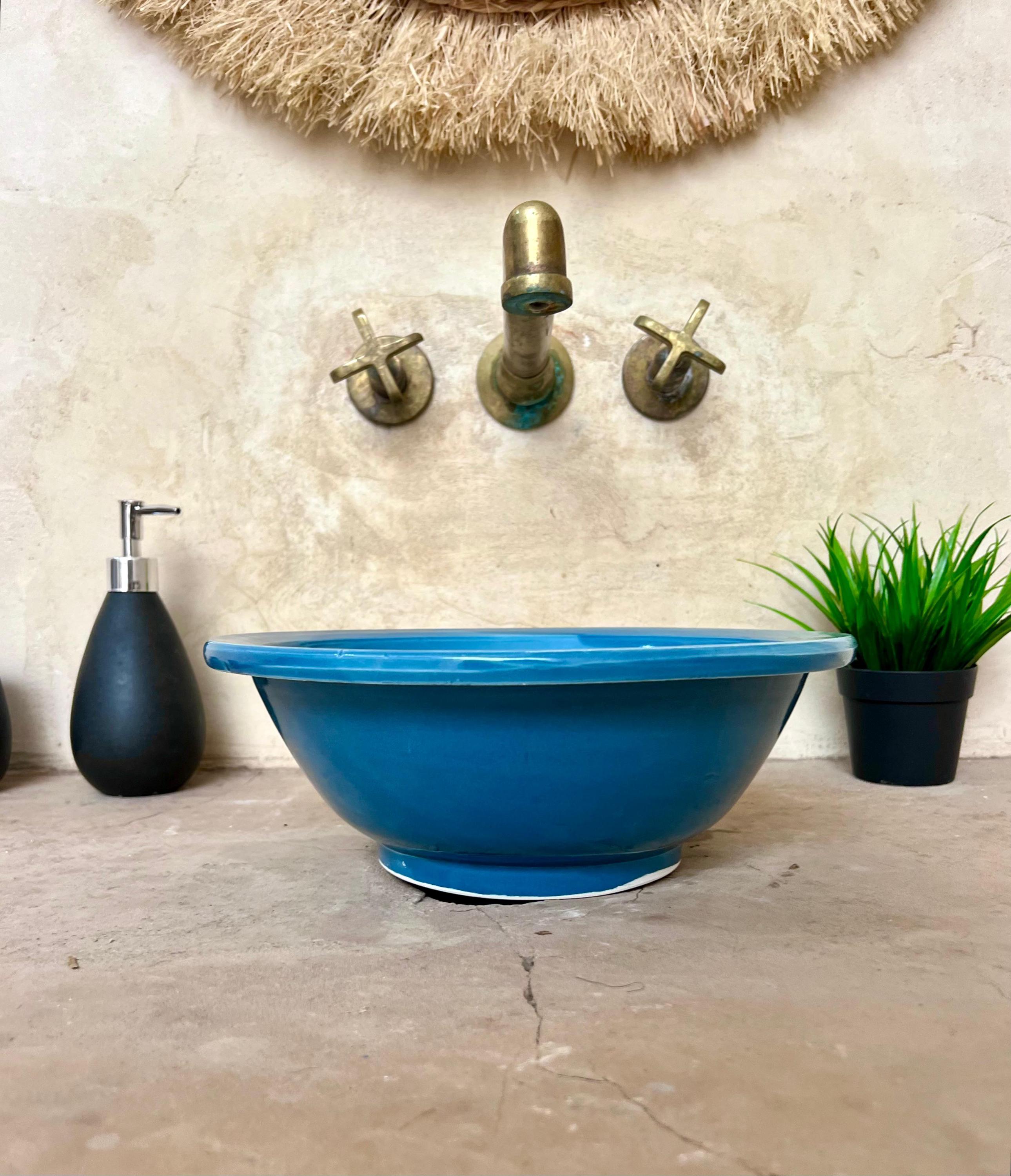 Handmade Moroccan Ceramic Sink: Hand-Painted Bathroom or Kitchen Decor