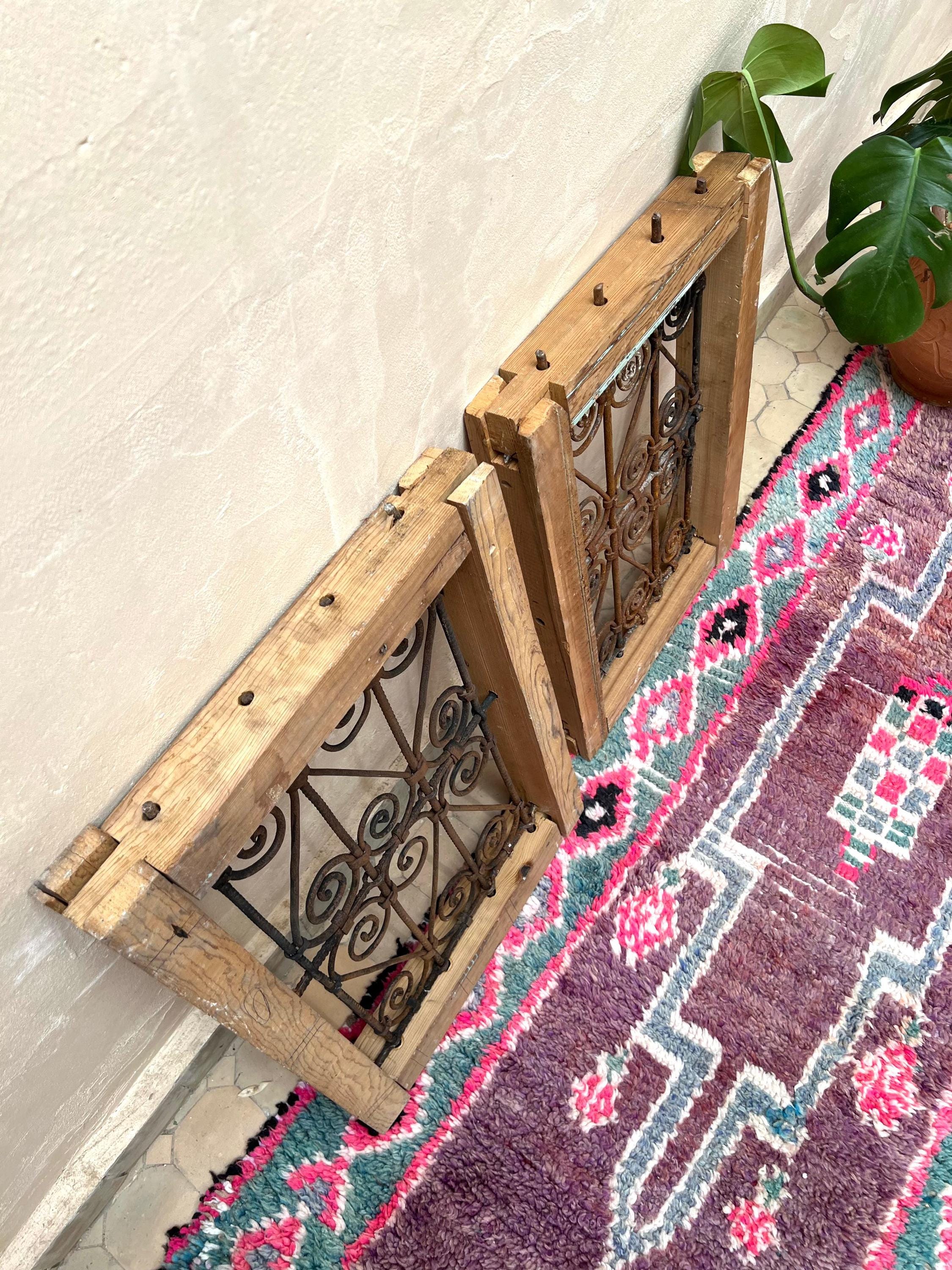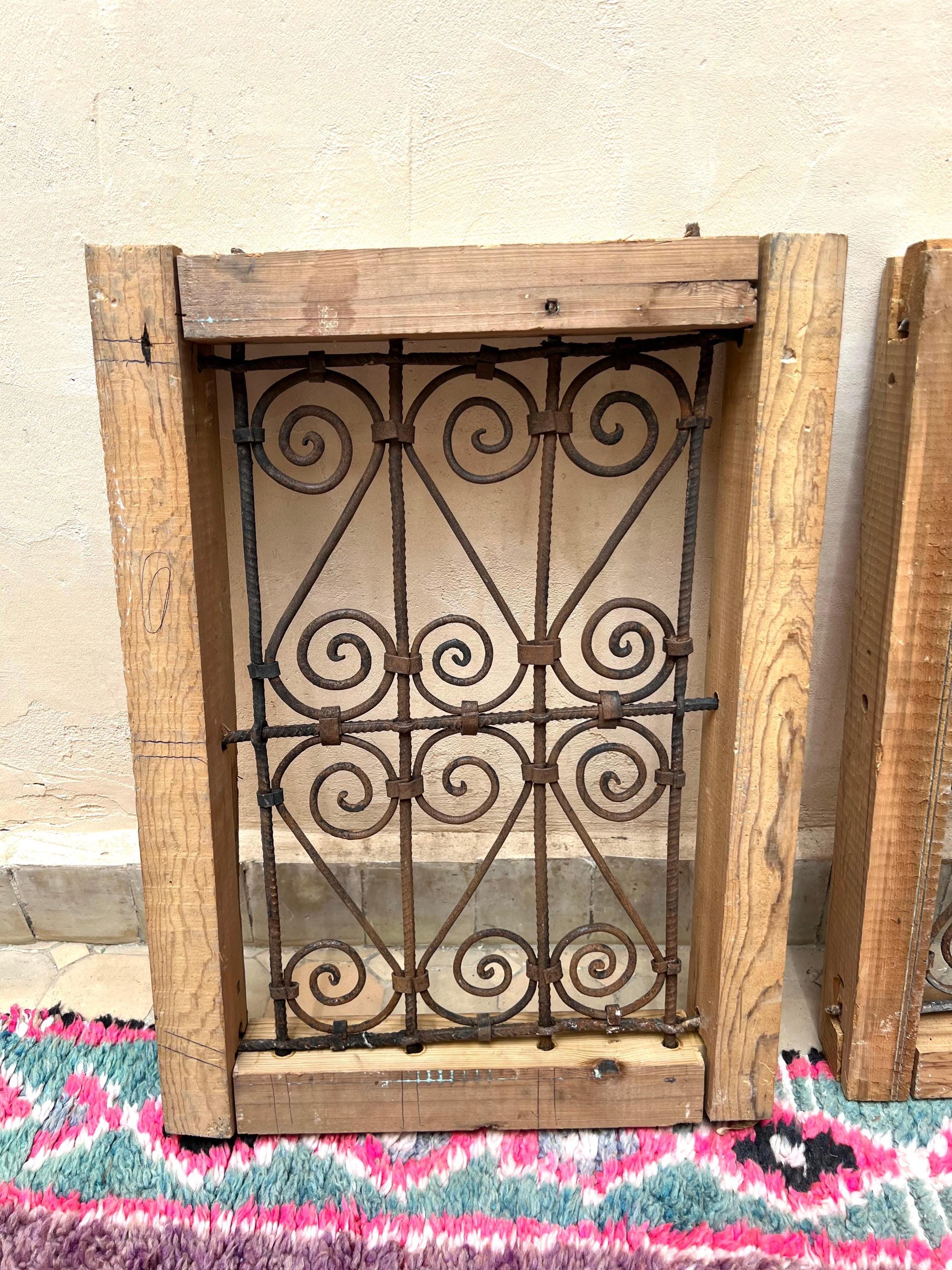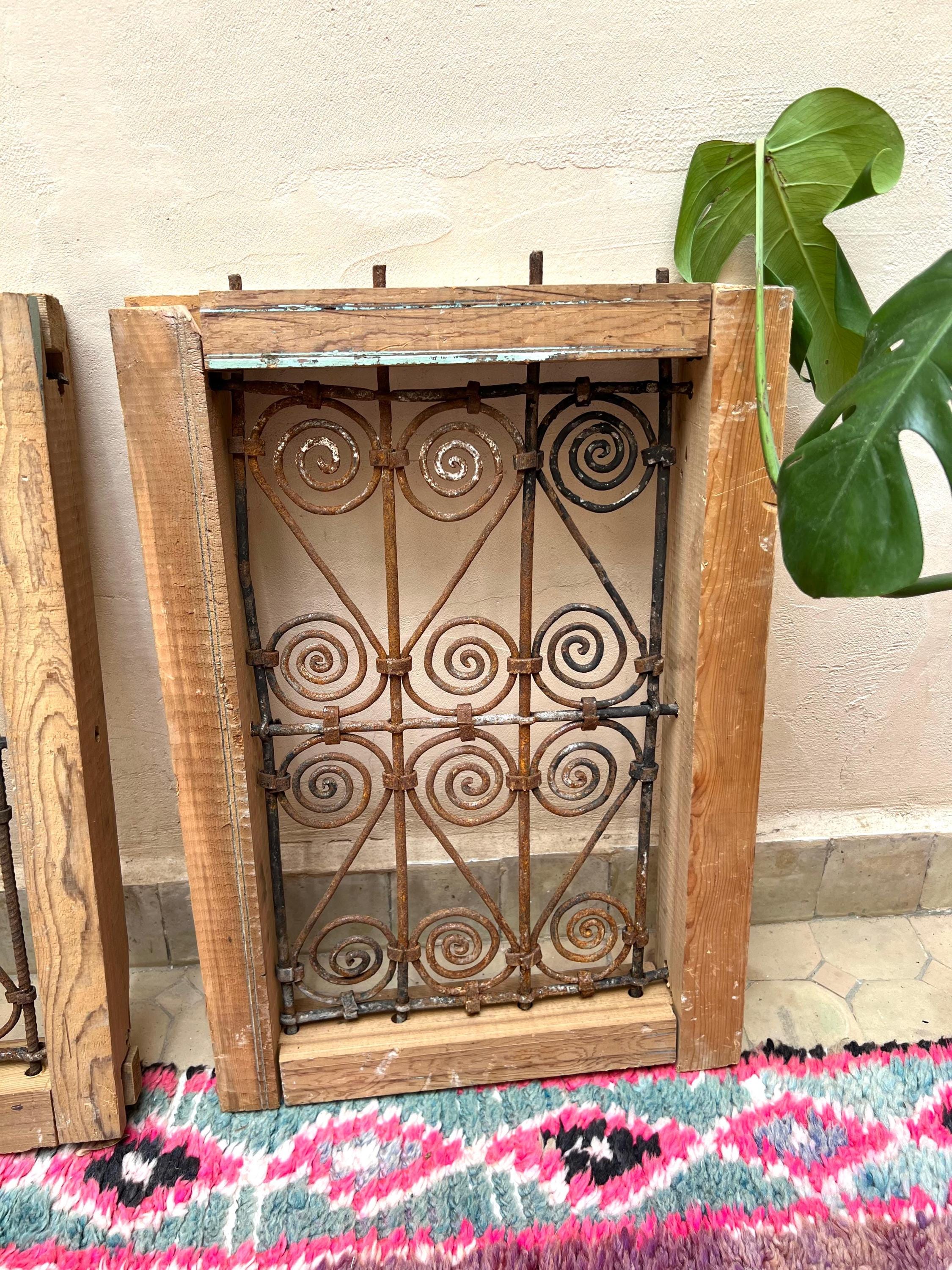 Authentic antique cedar wood windows, over 100 years old and beautifully restored, salvaged from traditional Moroccan homes. Crafted from high-quality cedar, they showcase the rich textures and details of classic Moroccan architecture. Each piece brings rustic, This charm authentic wood windows, over 100 years old and beautifully restored. Each piece brings rustic, vintage character and can be customized in size or iron paint to suit your space. Perfect for adding timeless elegance to any room. Contact us for custom requests!