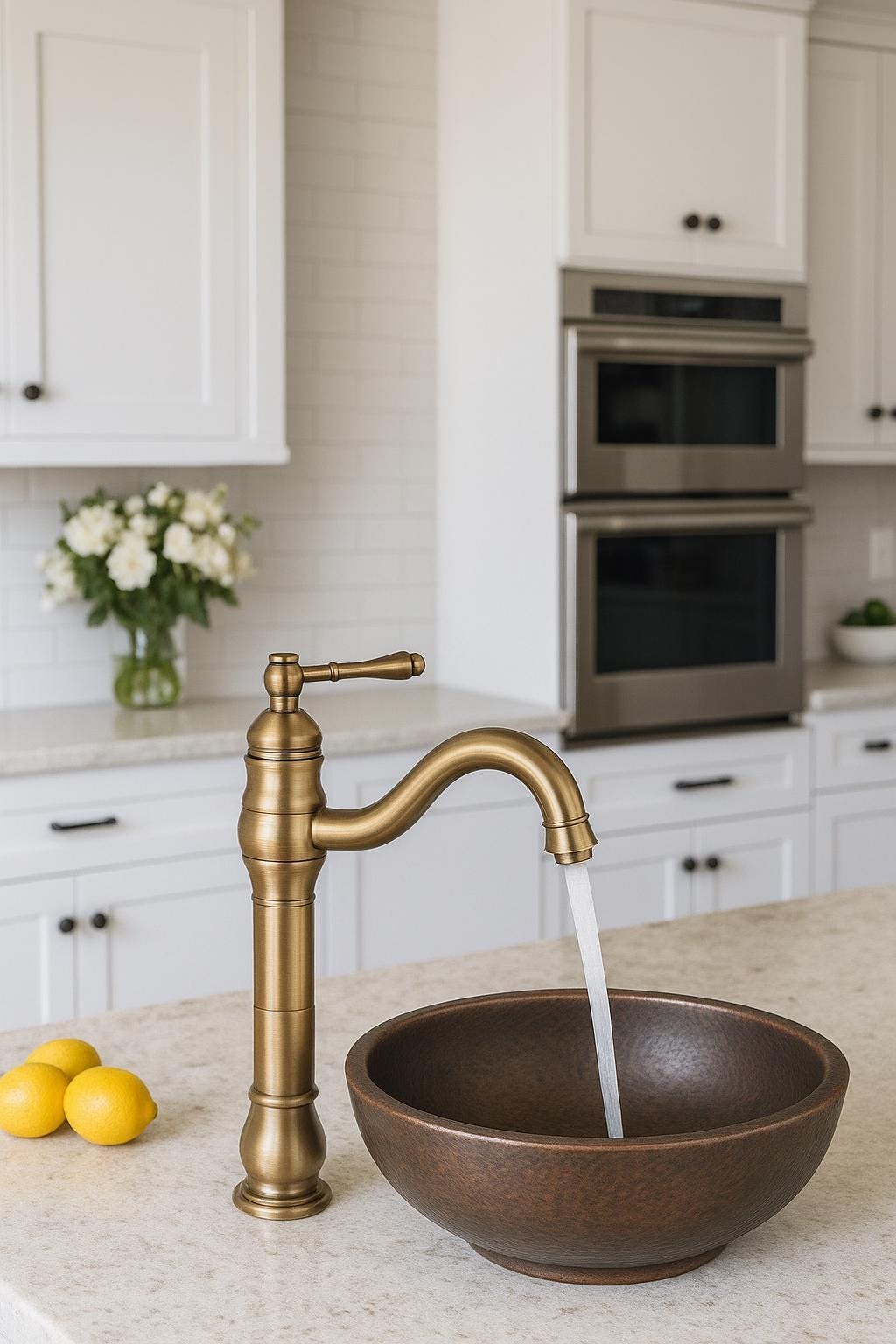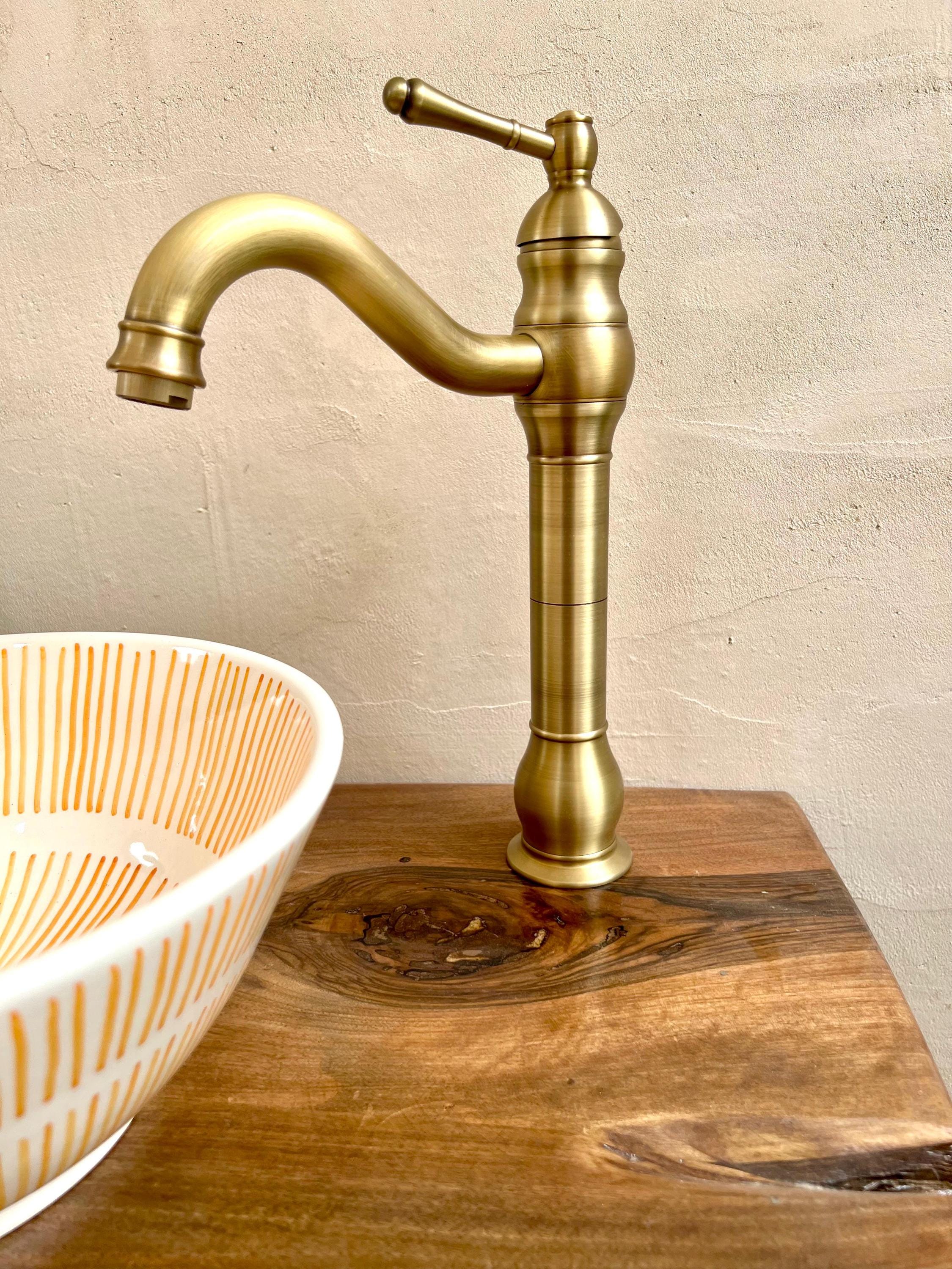 ✨ Ideal for: ✔️ Ideal for bar sinks, vessel basins, and compact spaces ✔️ Perfect for rustic, vintage, Moroccan, and farmhouse decor ✔️ Handmade look with old-world brass finish ✔️ Solid, durable brass construction built to last