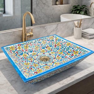 Handmade Moroccan Ceramic Square Sink: Hand-Painted Bathroom Decor