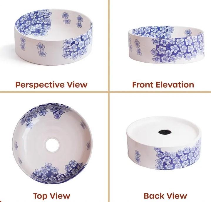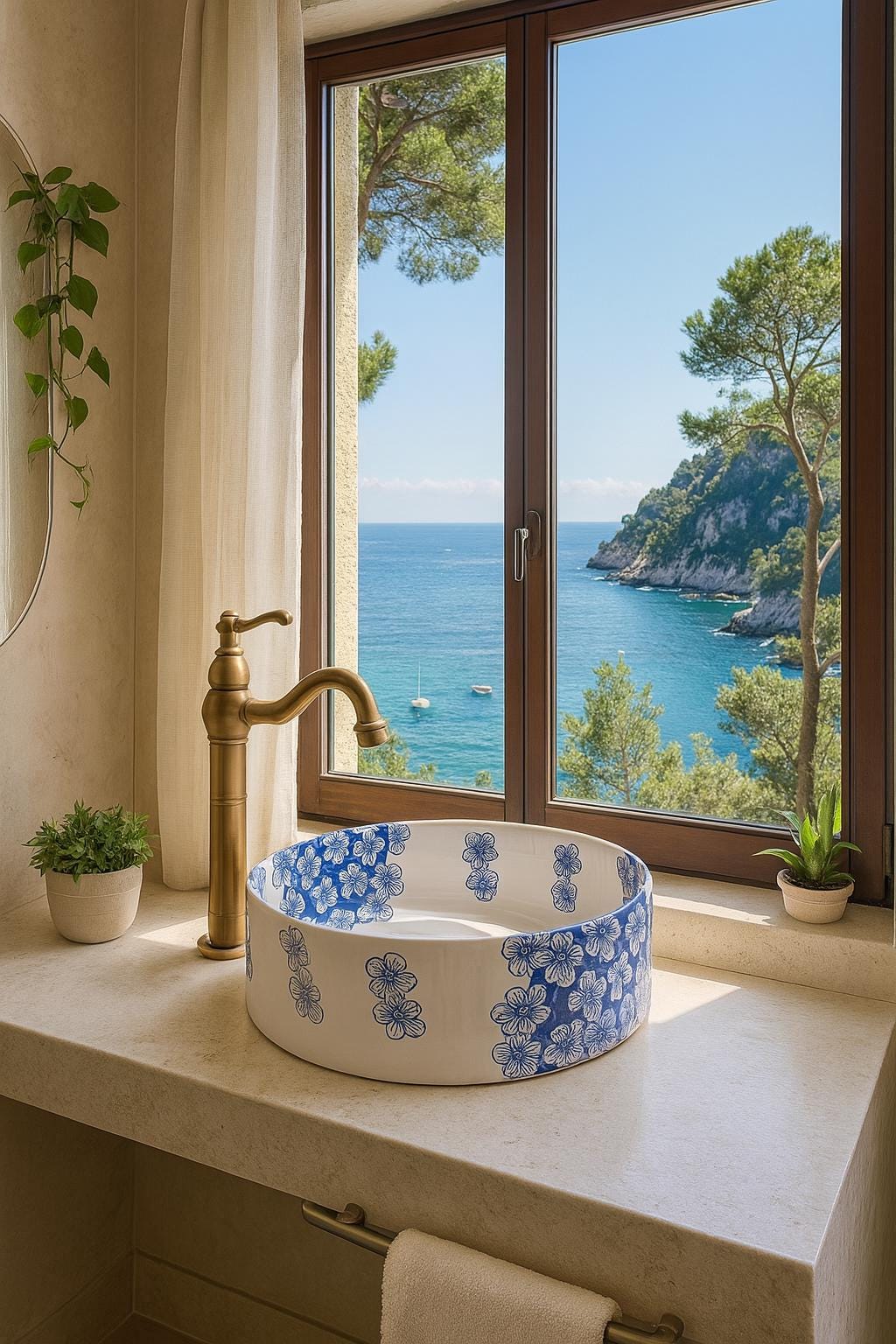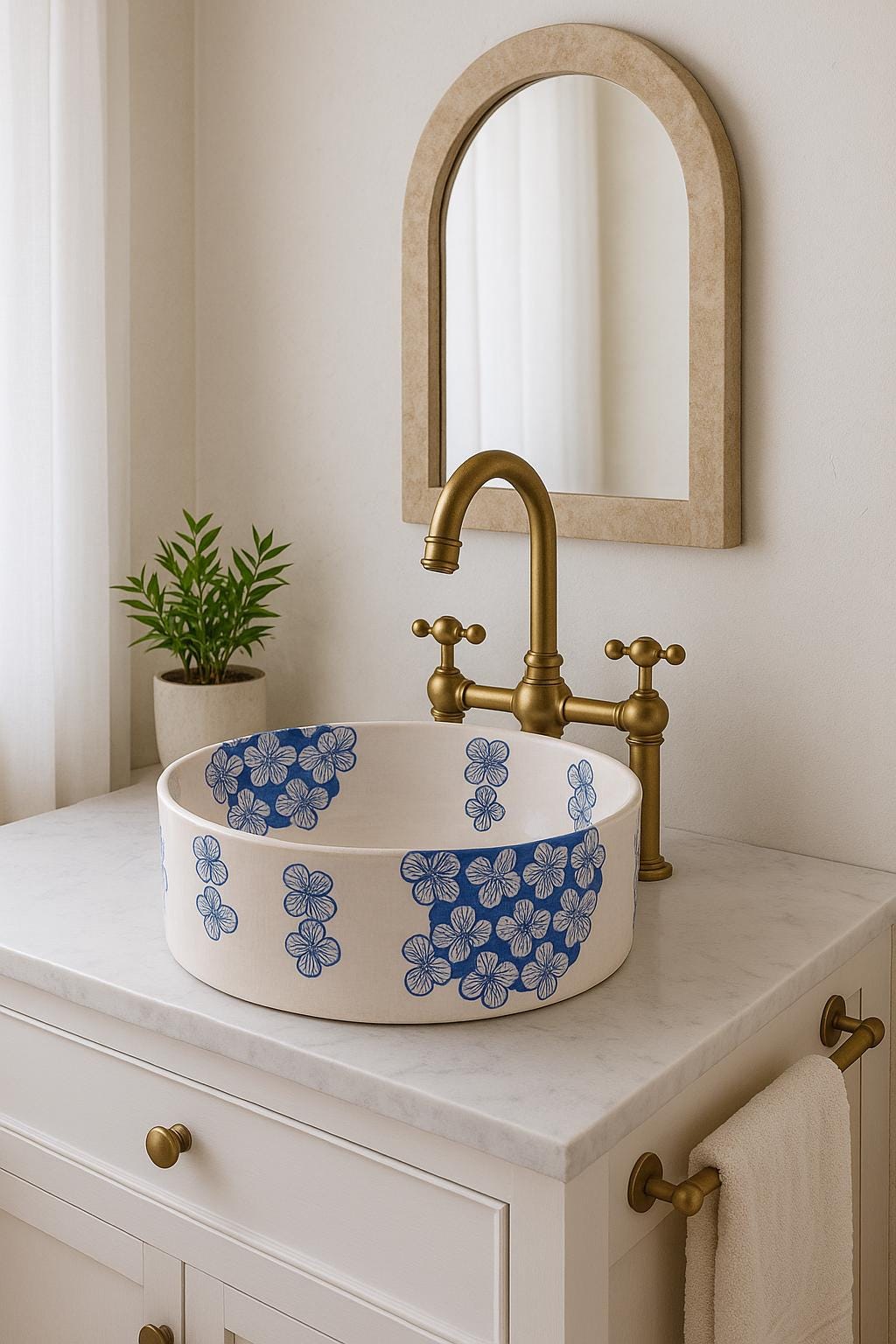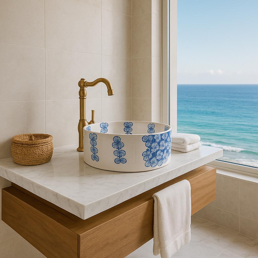 Handmade Moroccan Ceramic Sink: Blue Flower Design, Free Drain