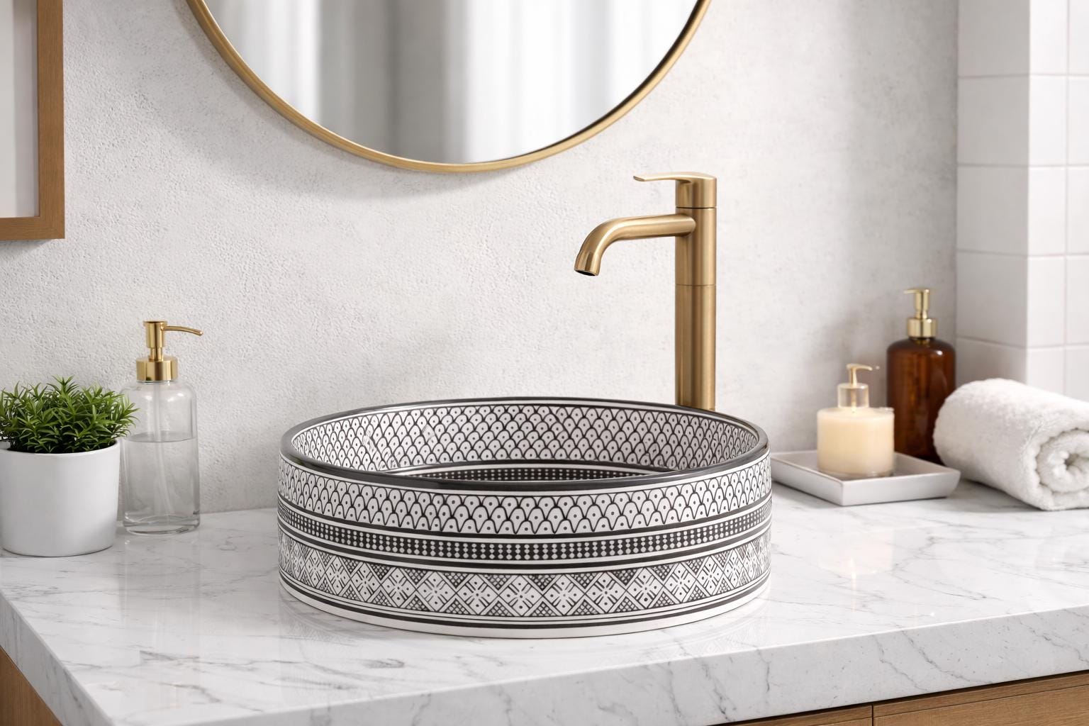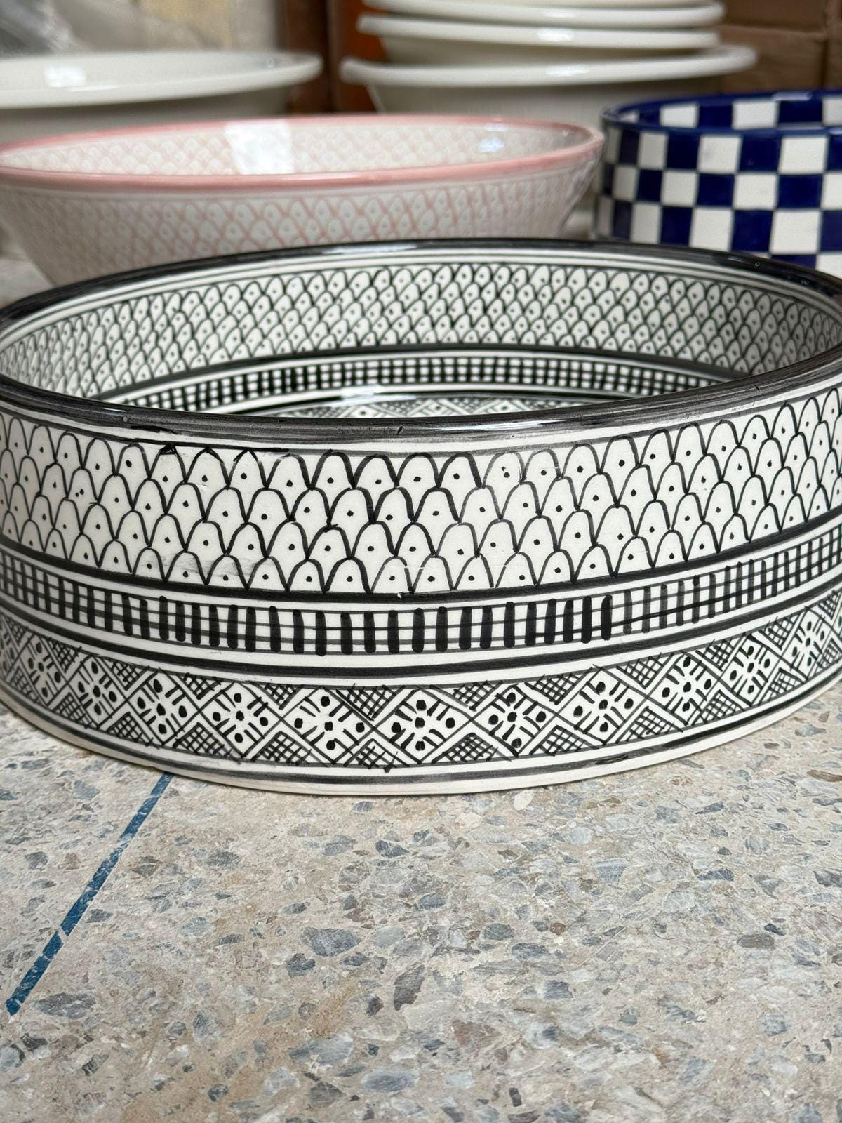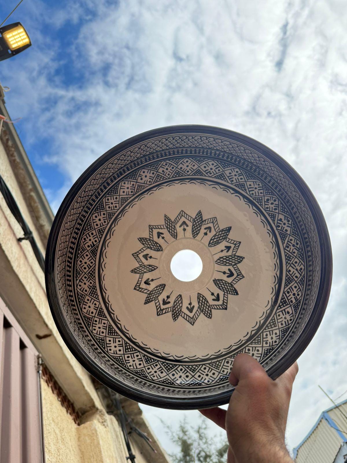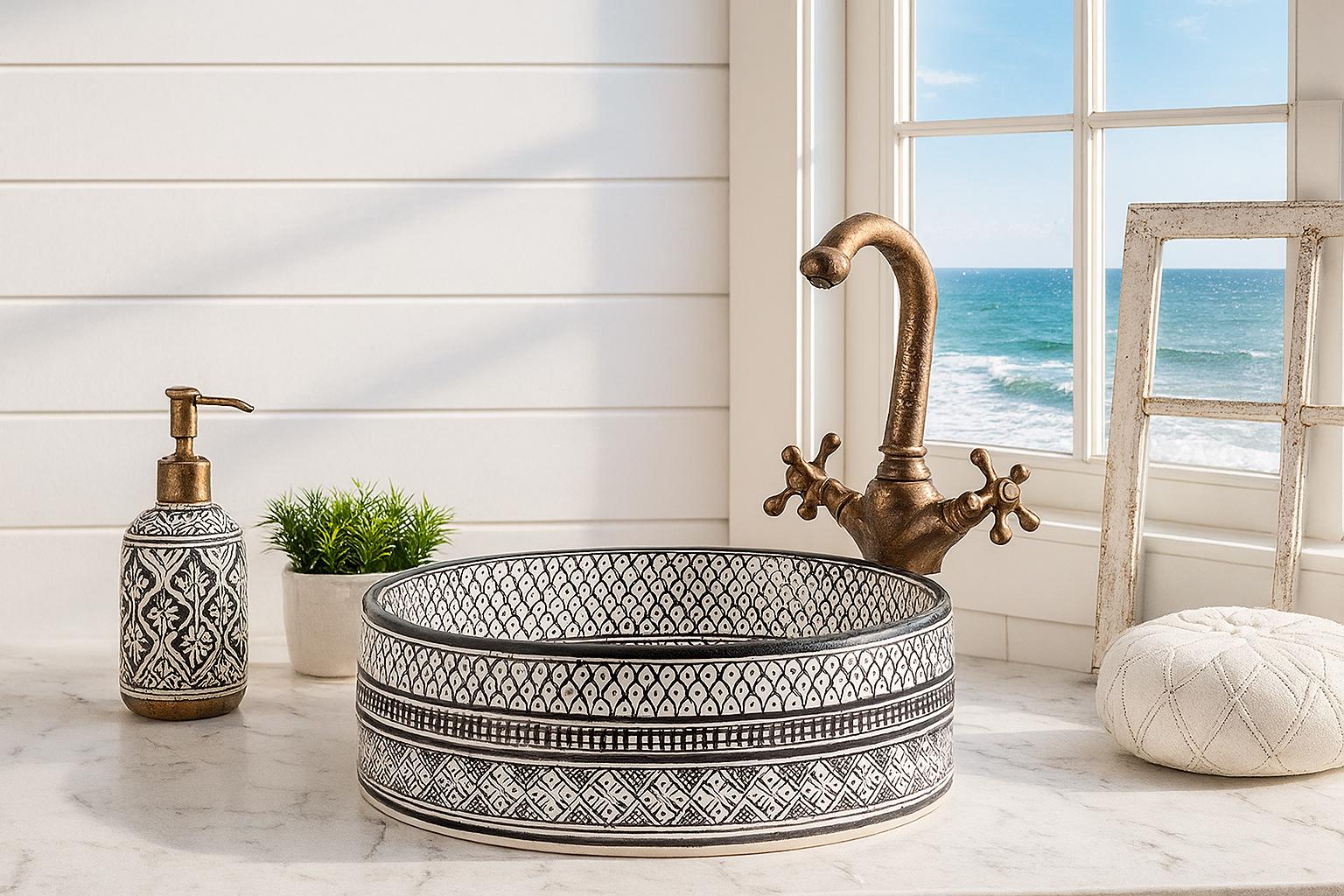 Handmade Moroccan Ceramic Sink: Fish Scale Design, Free Drain