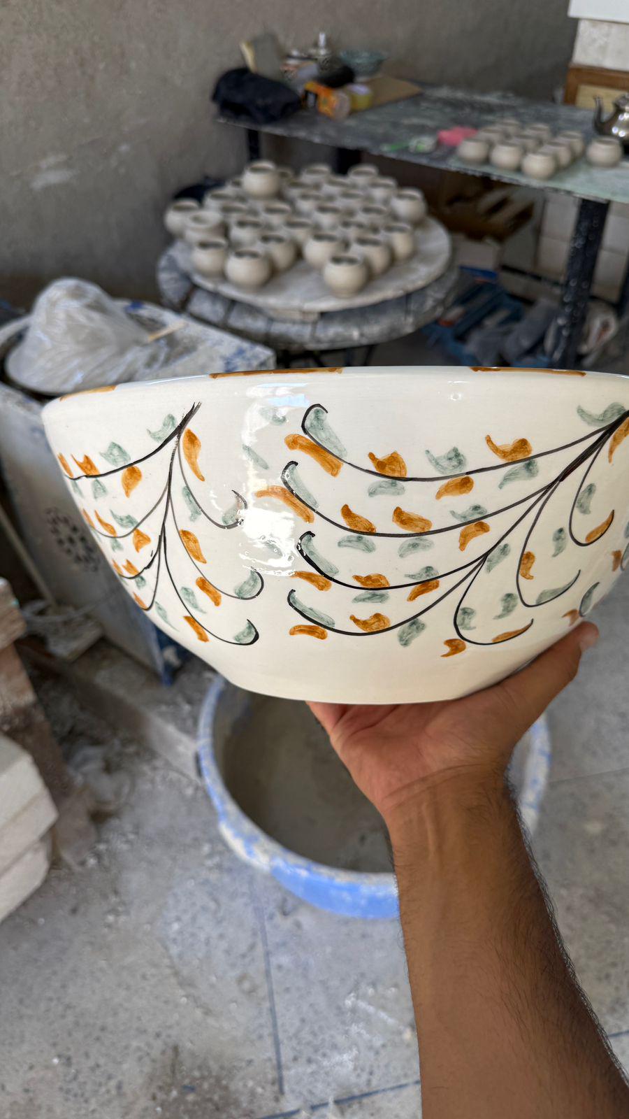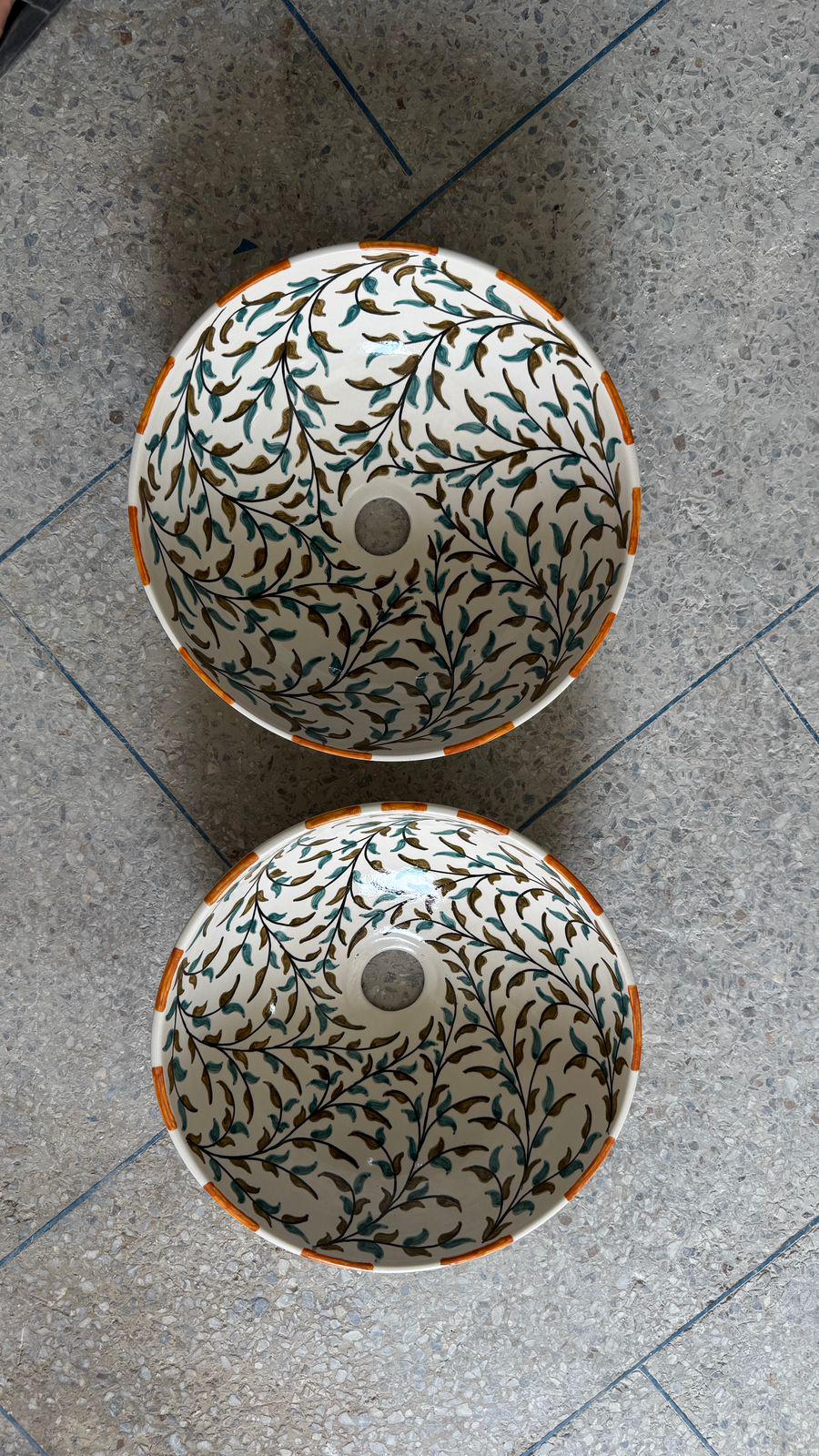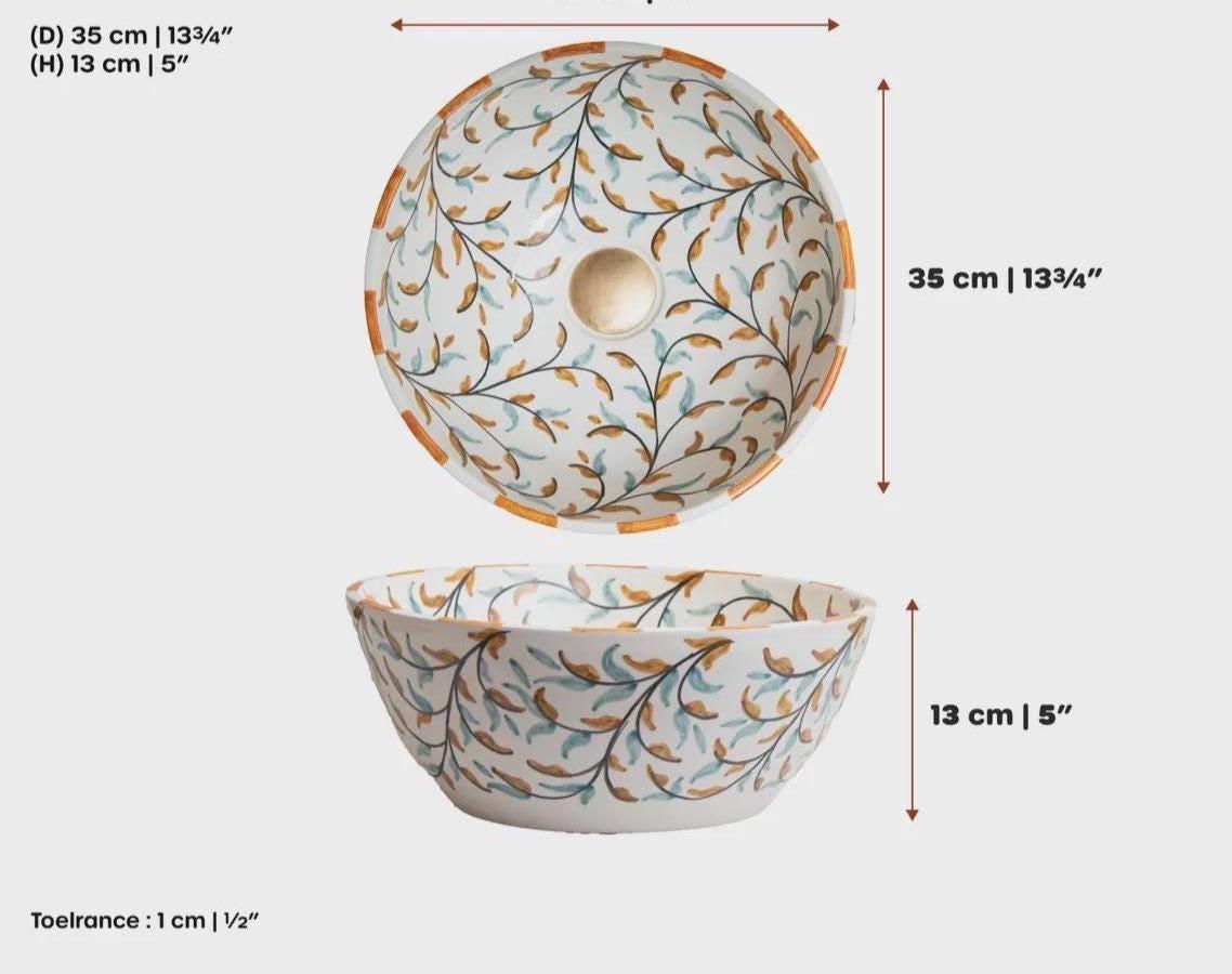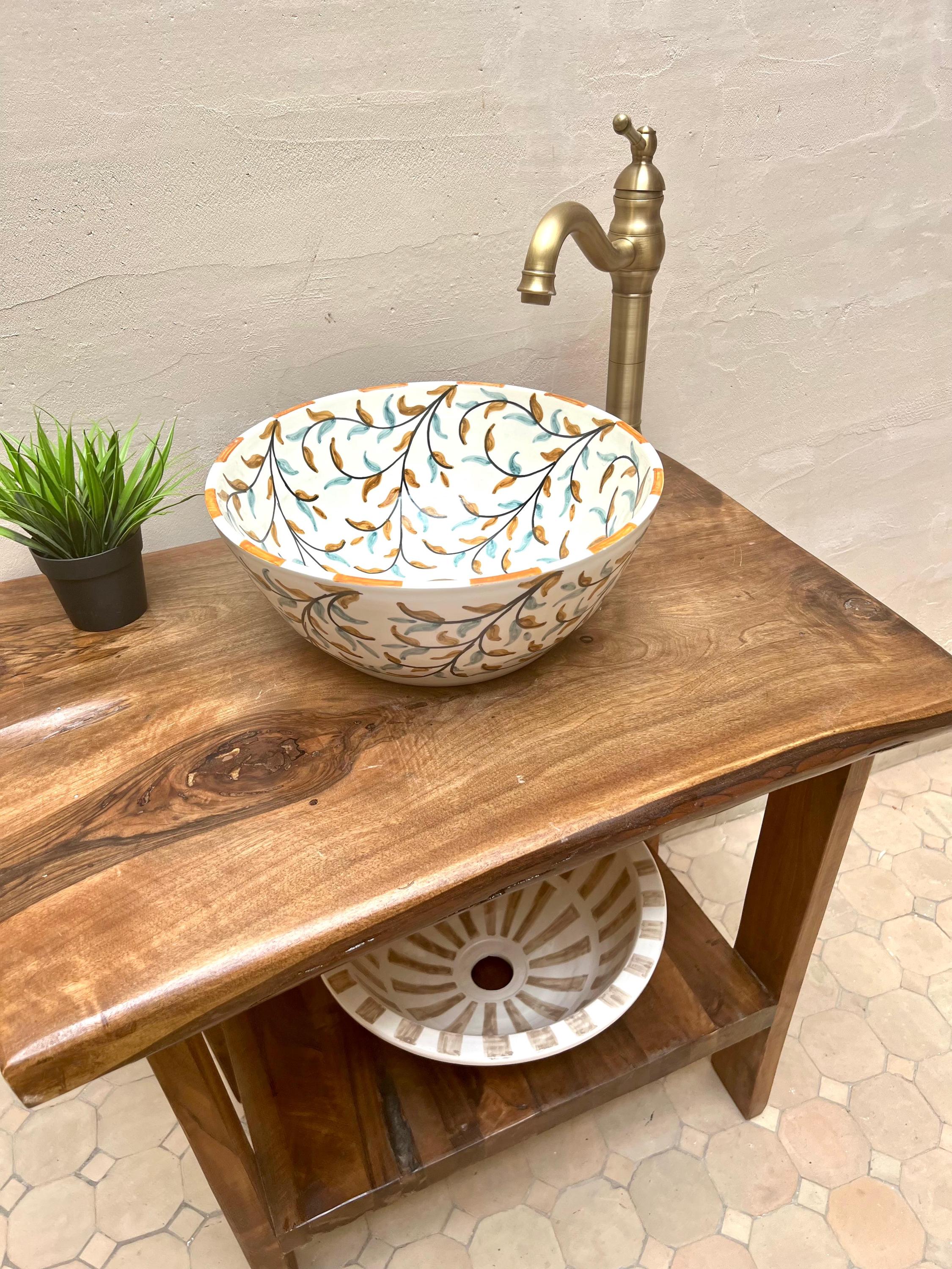 Handmade Moroccan Ceramic Sink: Soft Beige Leaf Design