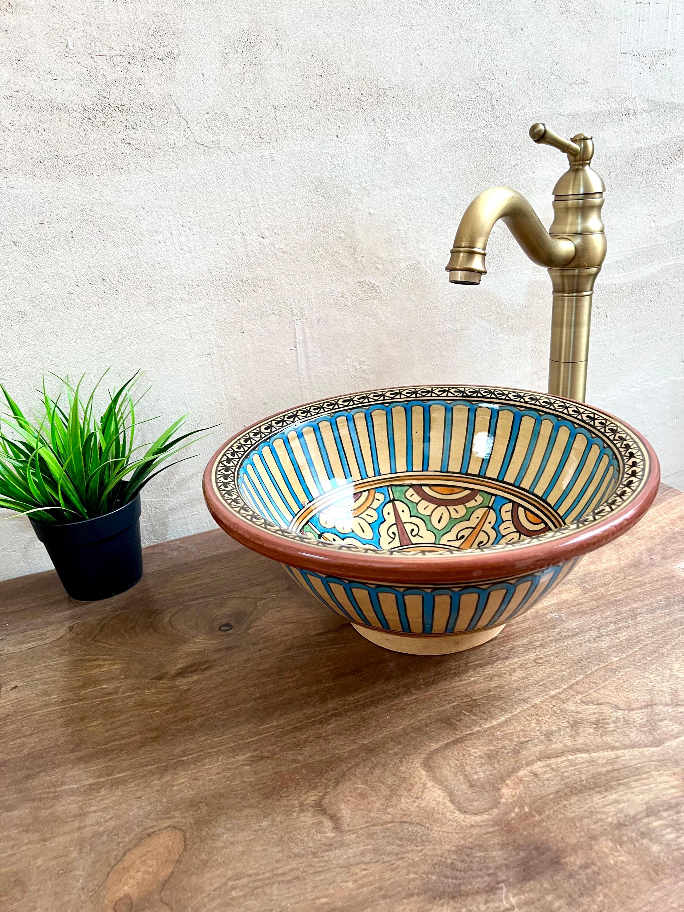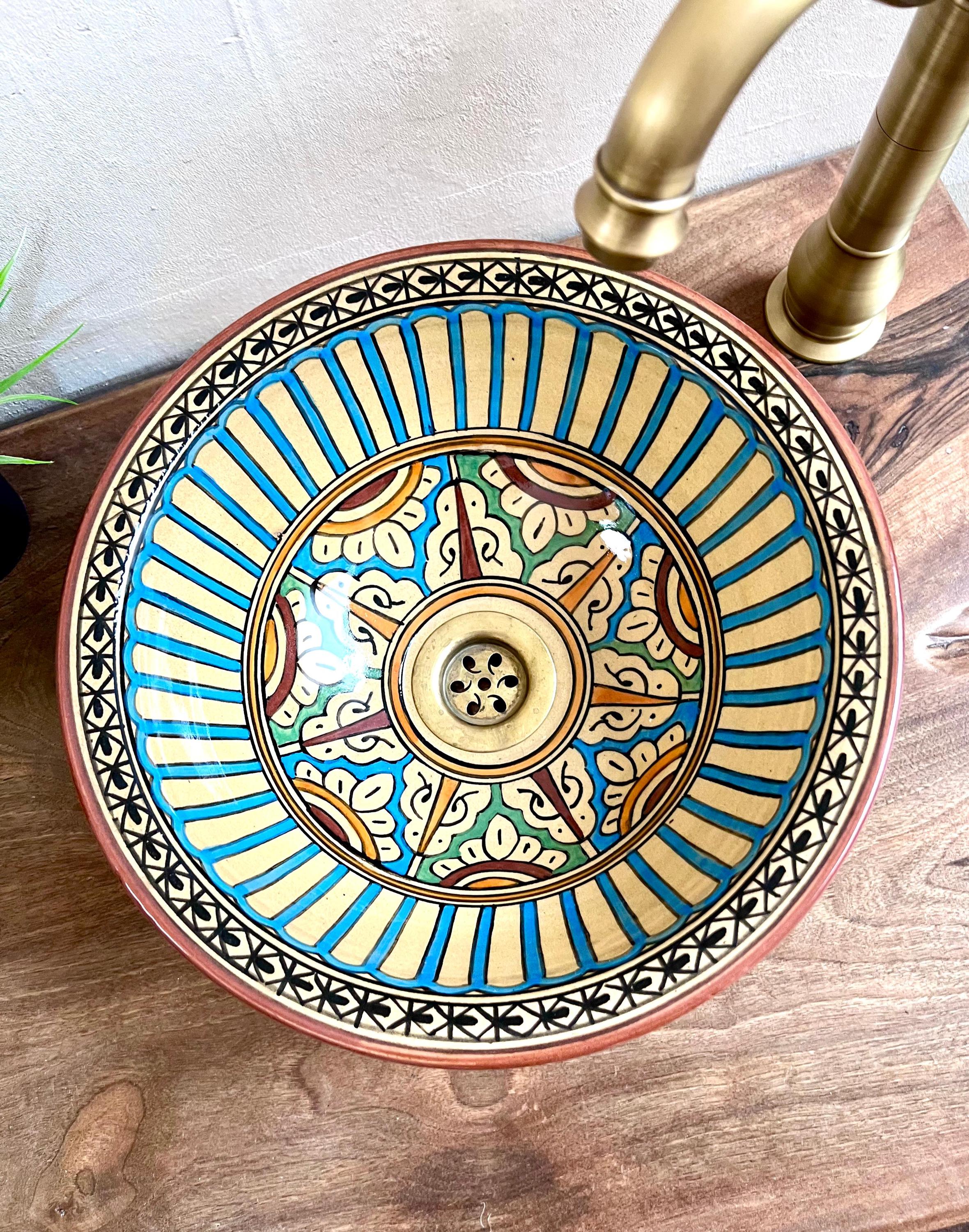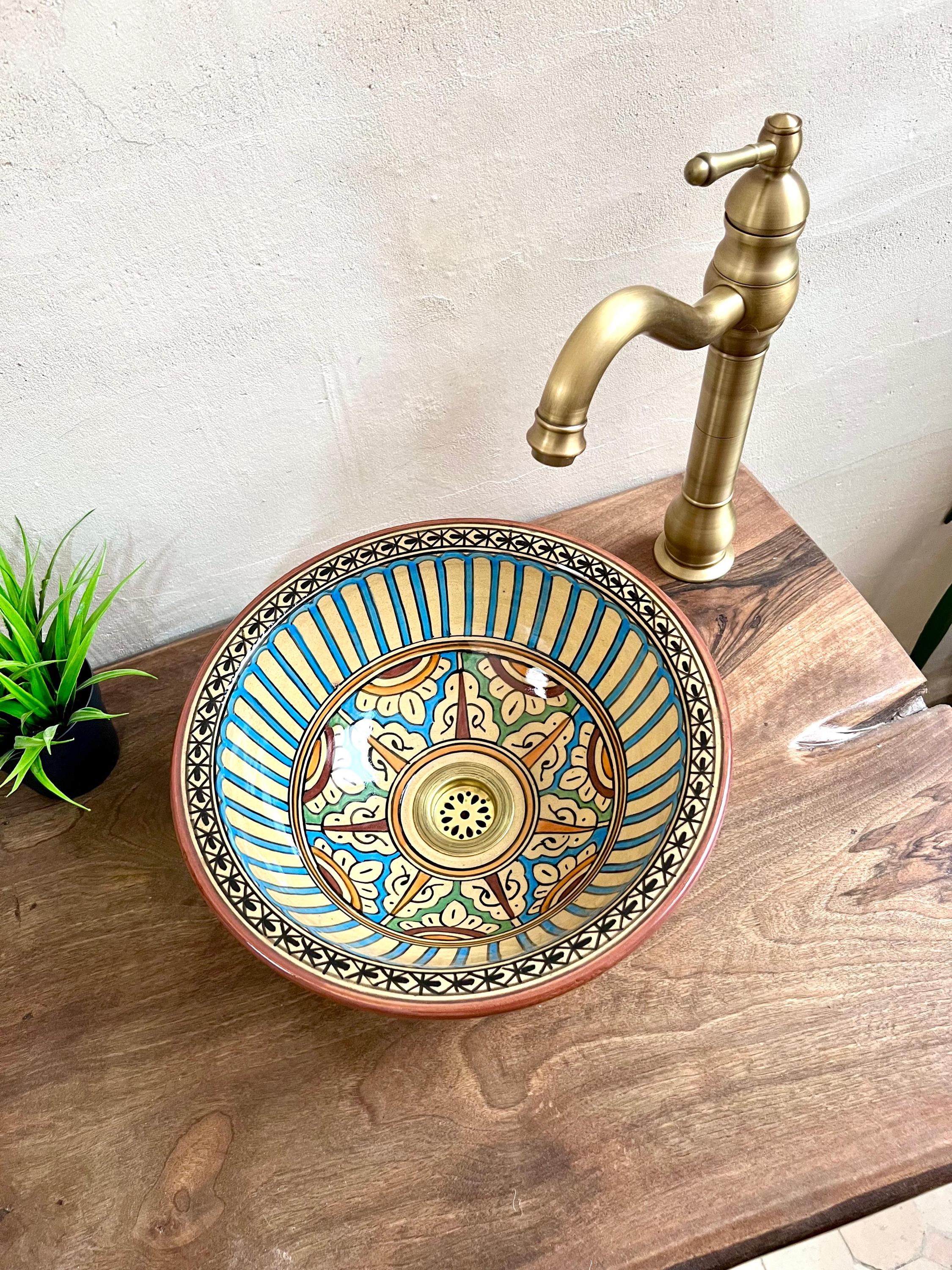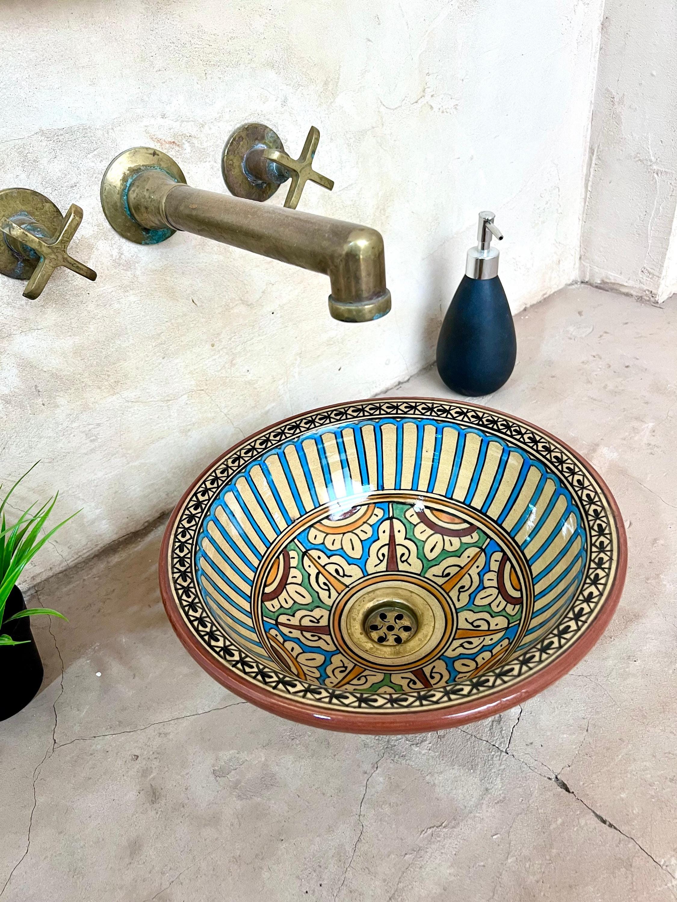 Hand-Painted Moroccan Ceramic Sink: Bathroom & Kitchen Decor, Free Drain