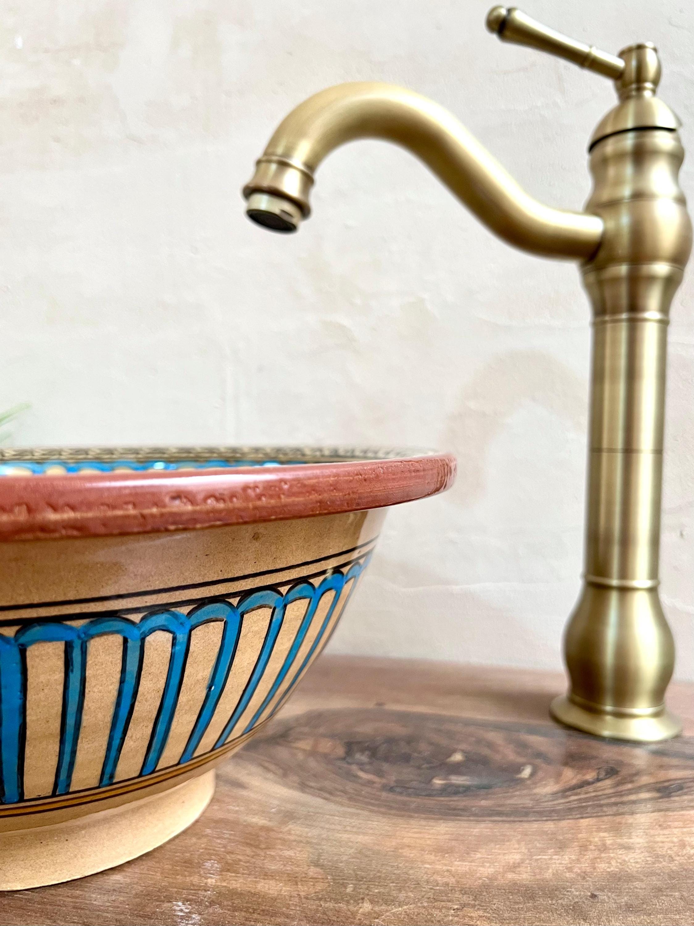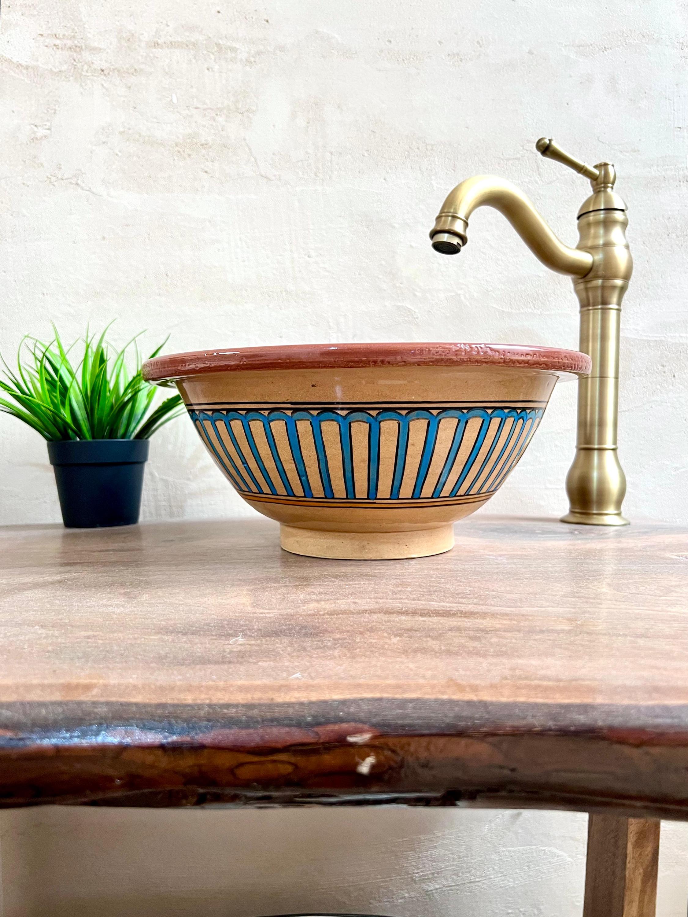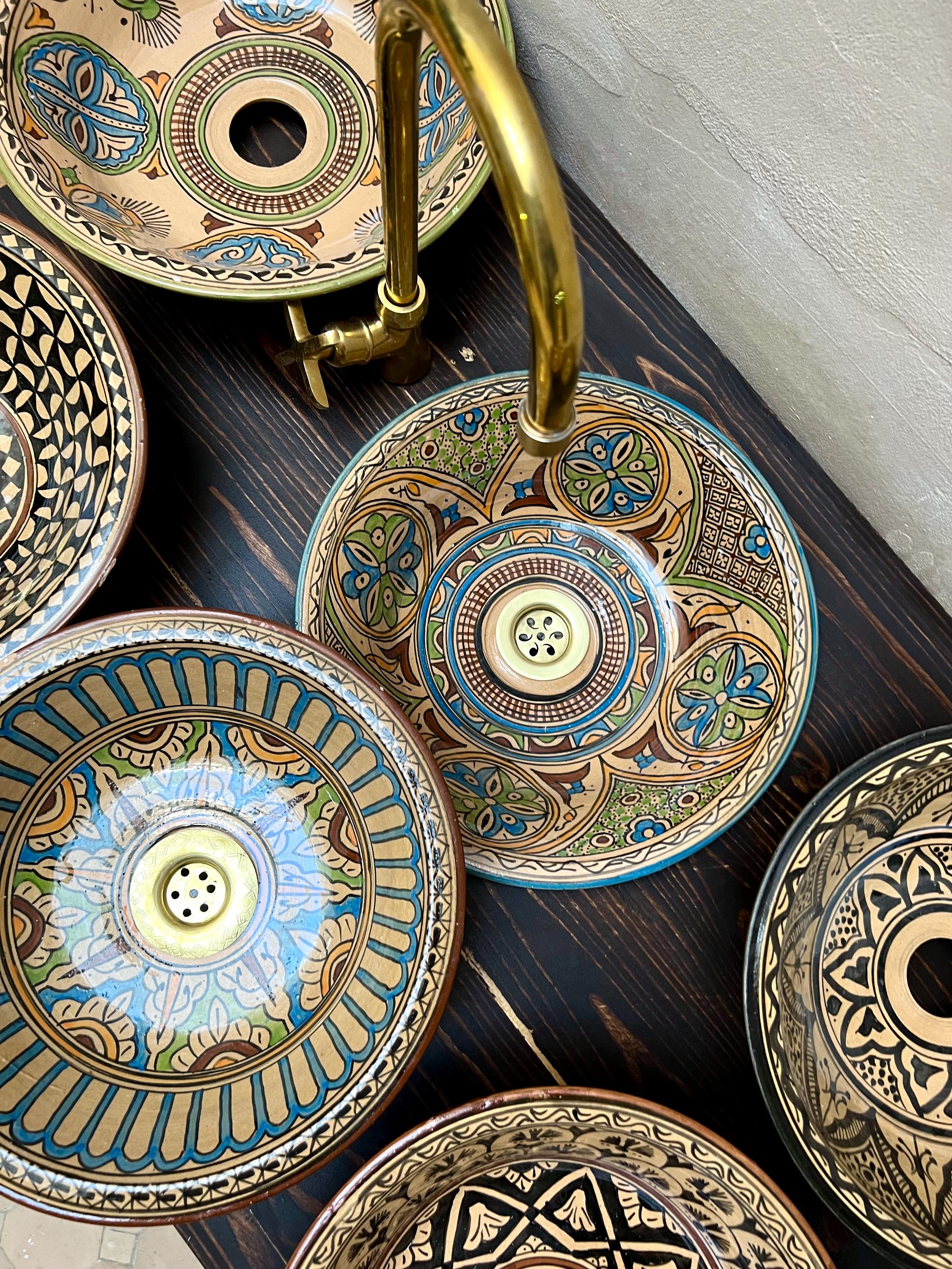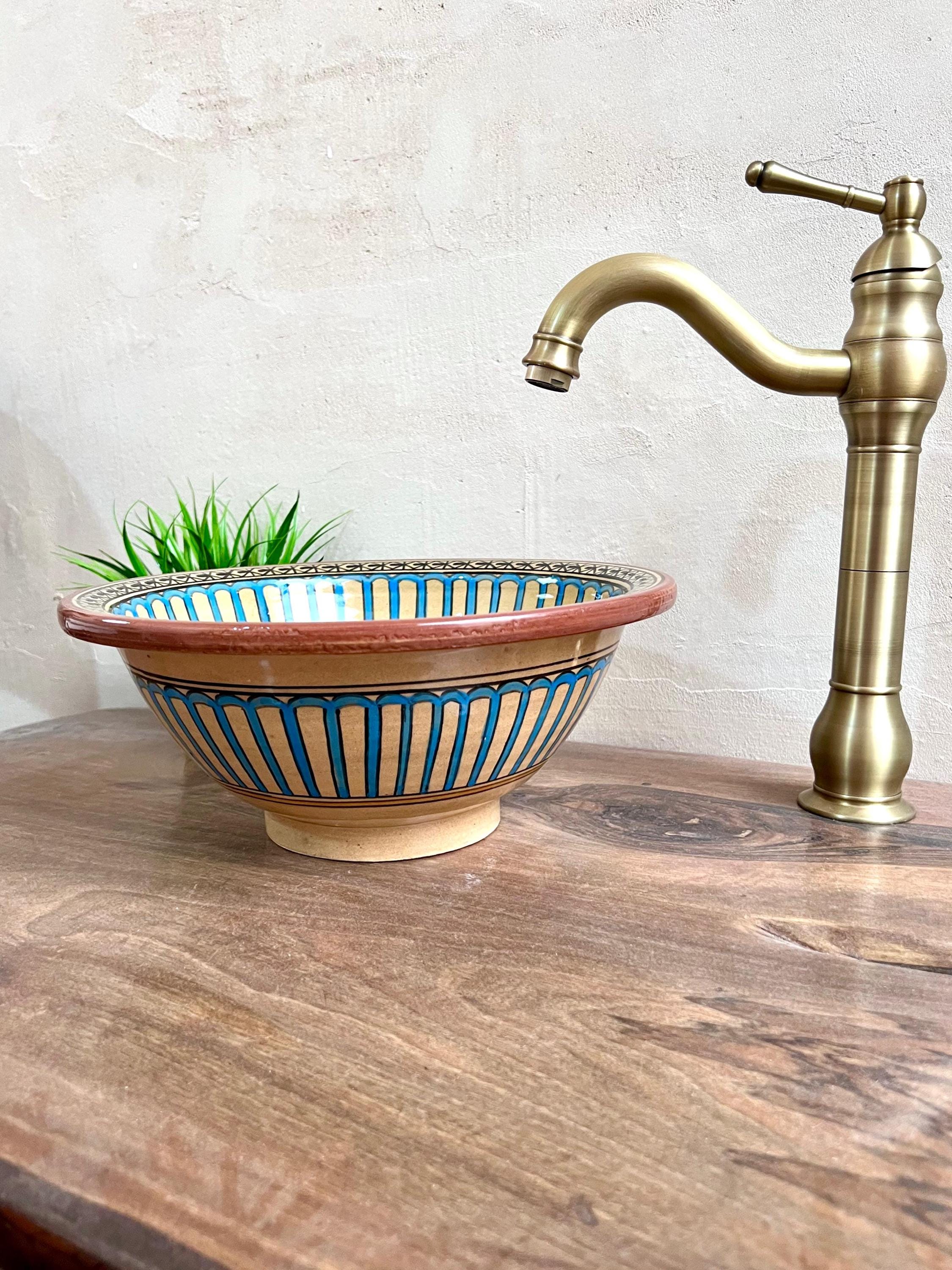 Hand-Painted Moroccan Ceramic Sink: Bathroom & Kitchen Decor, Free Drain