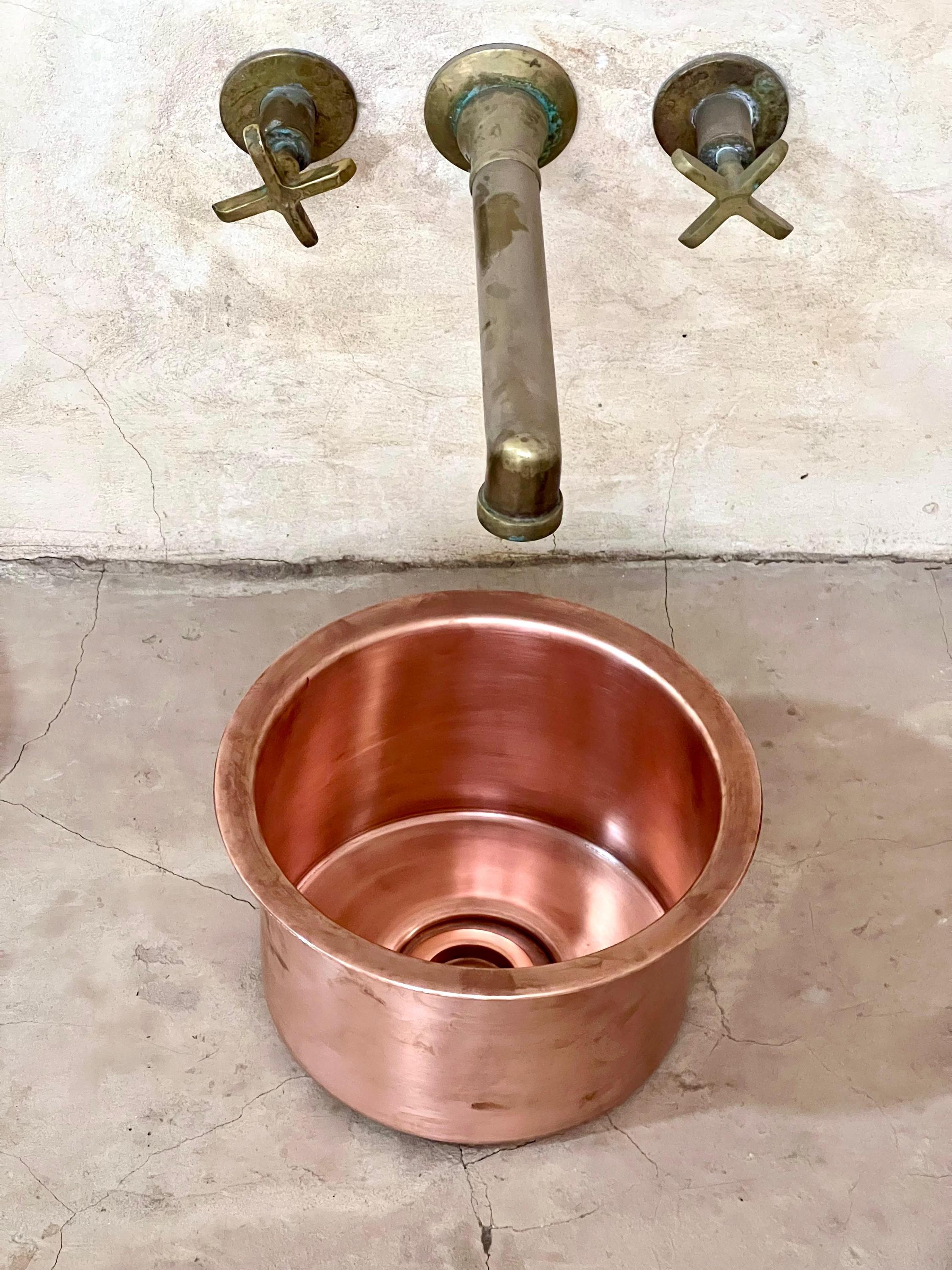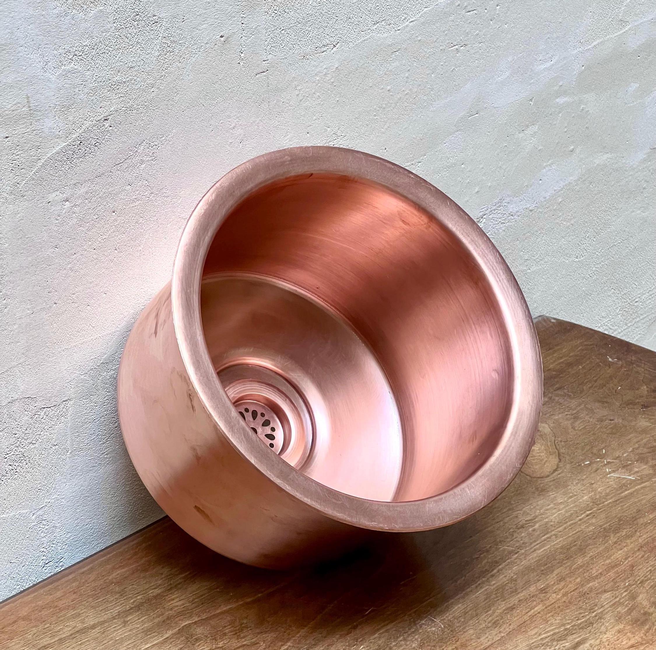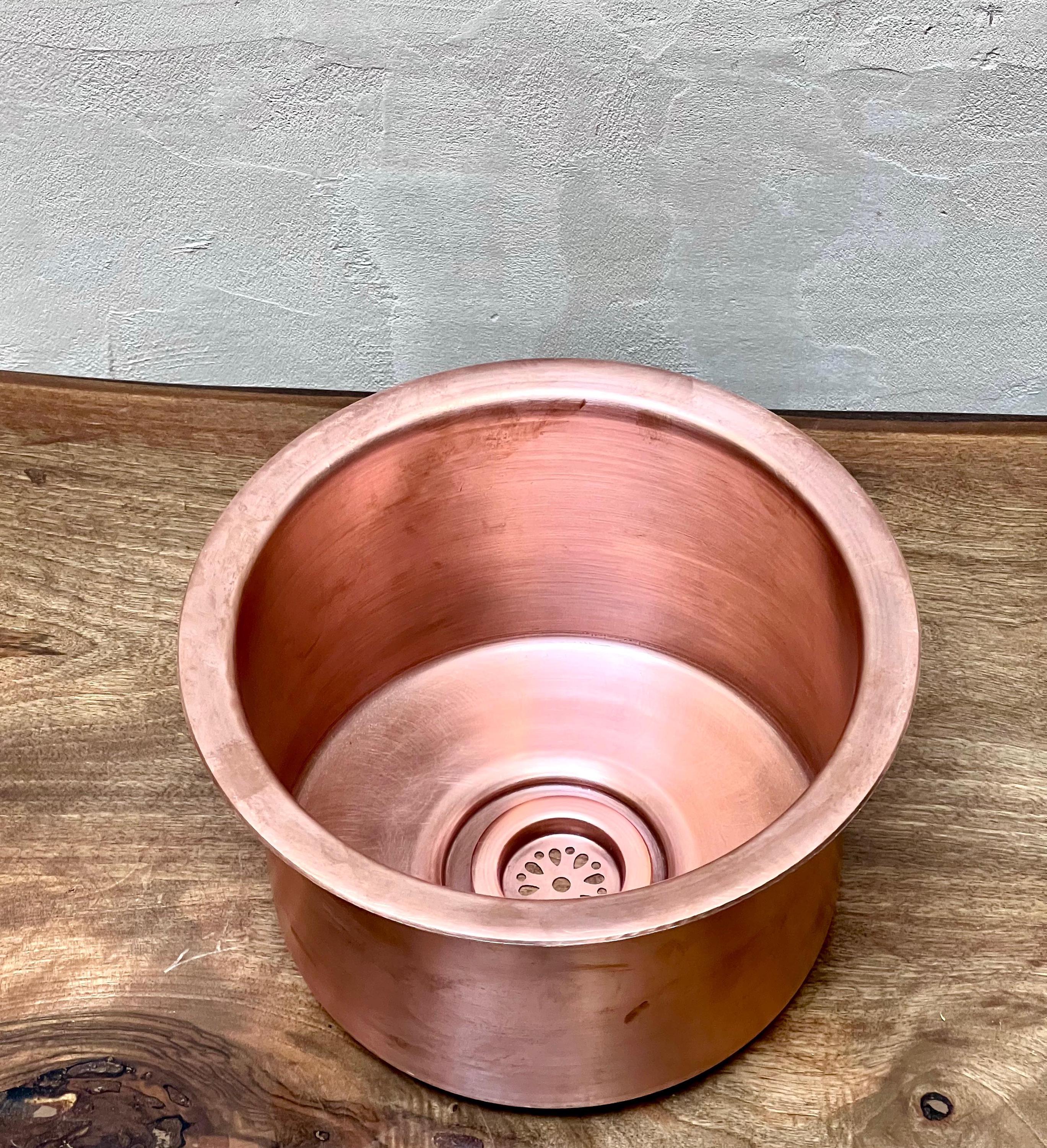 This stunning Moroccan copper bar sink is handcrafted by skilled artisans, featuring a rich, warm finish that adds elegance to any space. Made from high-quality materials, it is durable, easy to clean, and perfect for kitchens, bars, or small wash areas. Its unique design brings a touch of Moroccan charm and timeless beauty to your home. The sink comes with both silver and copper drains included for free. If you need a different size, feel free to contact us.