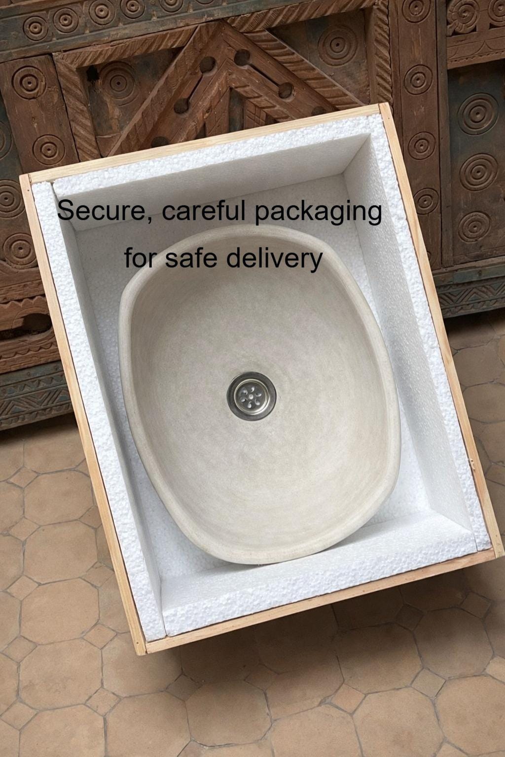 The Tadelakt is treated for durability, moisture protection, and long-lasting performance. Easy to install and compatible with standard vessel faucet and drain systems, it offers both beauty and functionality for everyday use.