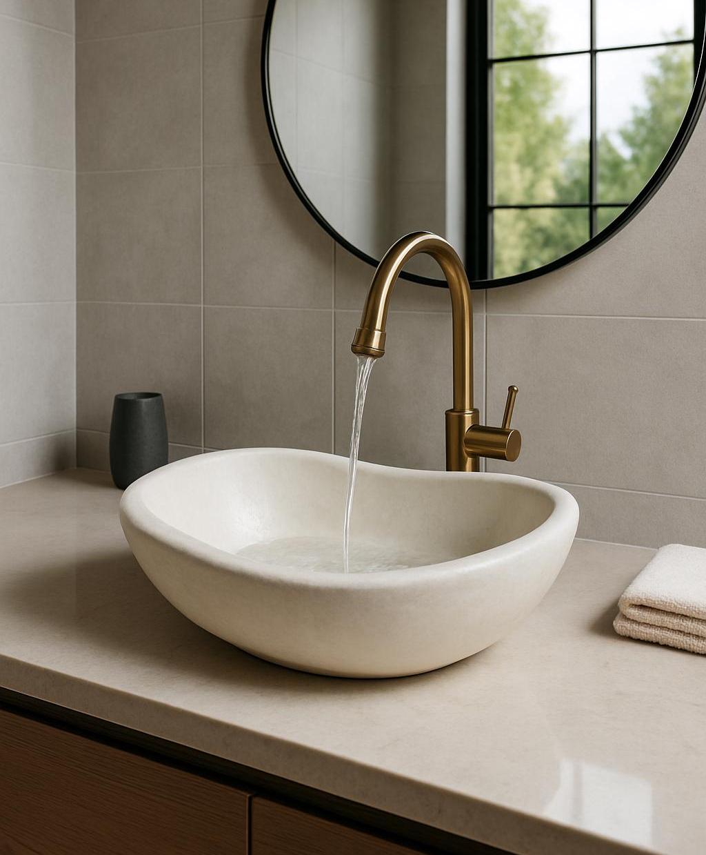 Each piece is handcrafted using the traditional Moroccan Tadelakt technique, known for its silky finish, organic texture, and exceptional water resistance. Natural variations in the surface give every sink its own character and artistic presence.