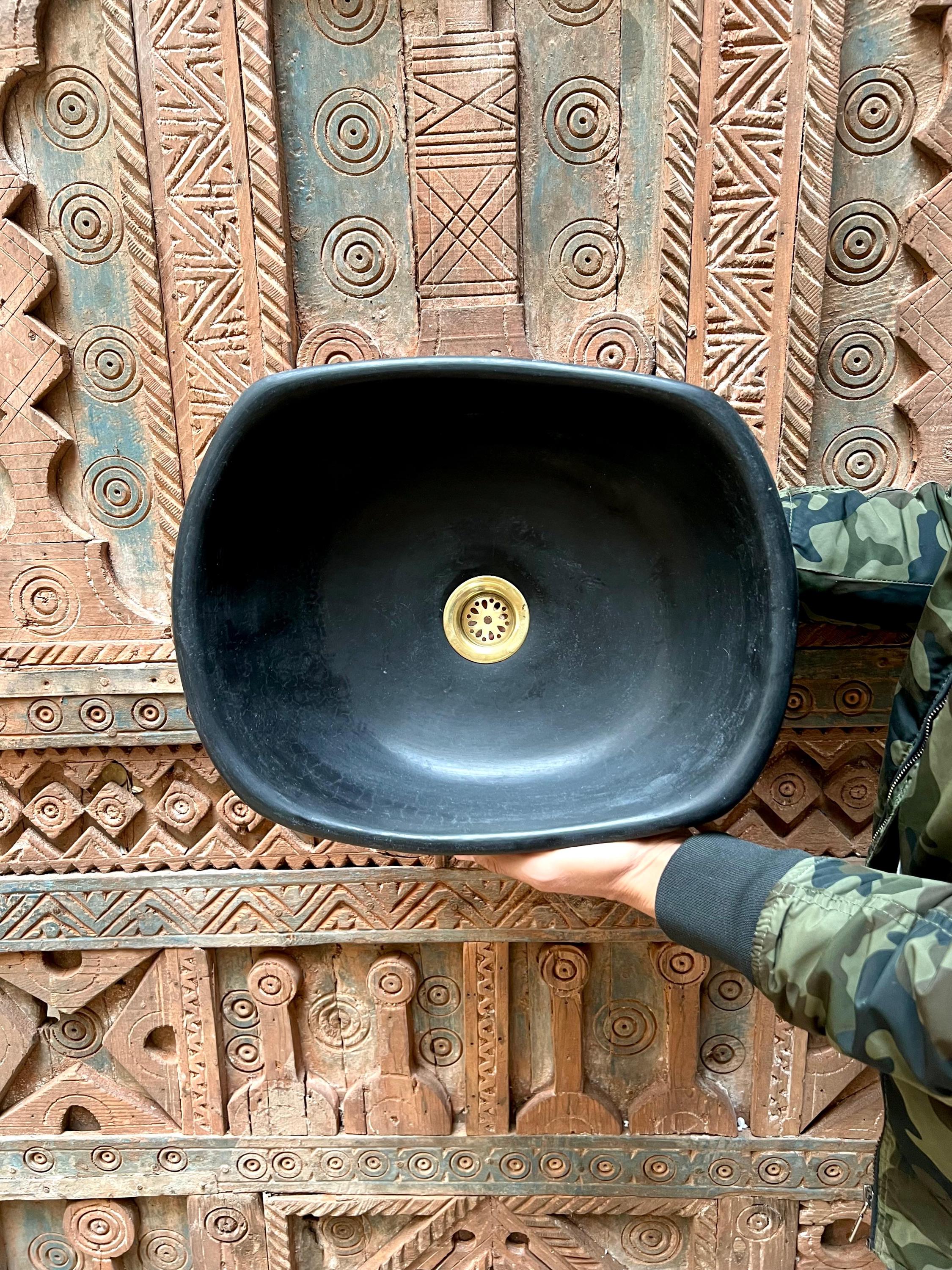 This unique sink, made of authentic Tadelakt in Morocco, brings a refined natural touch to any bathroom. Its elegant oval shape and smooth anthracite finish create a timeless, contemporary look that fits beautifully on vanity tops and countertops.