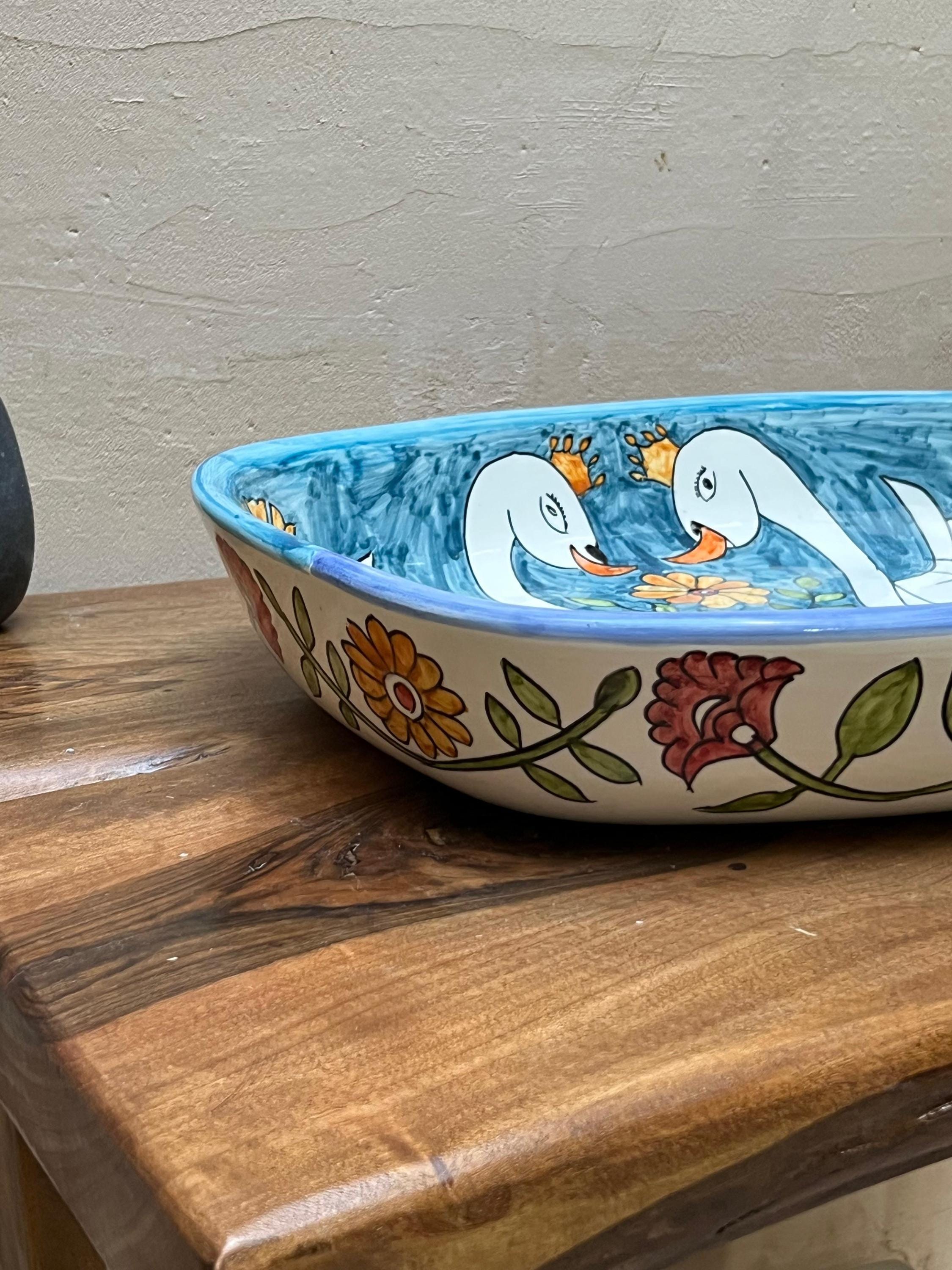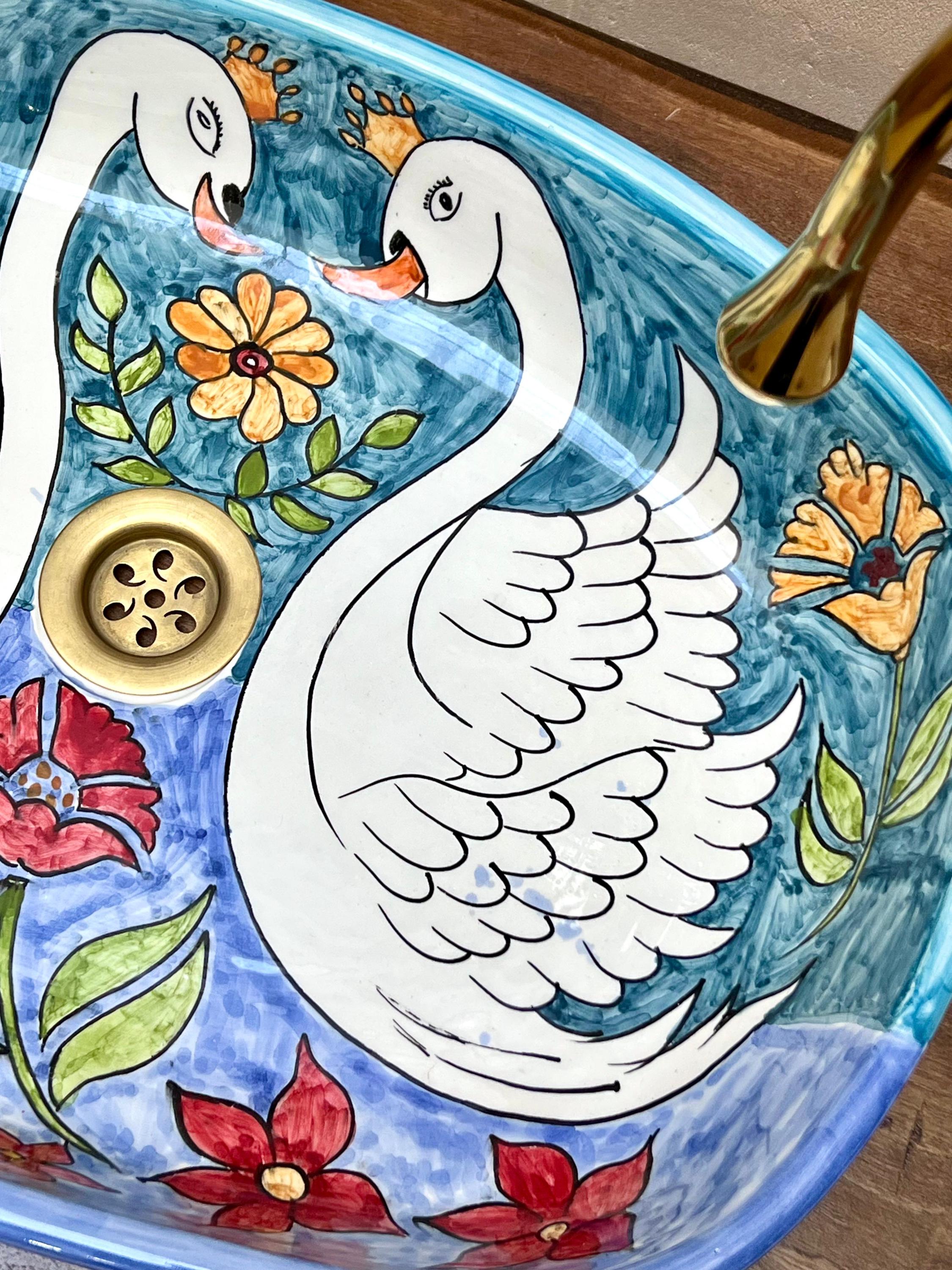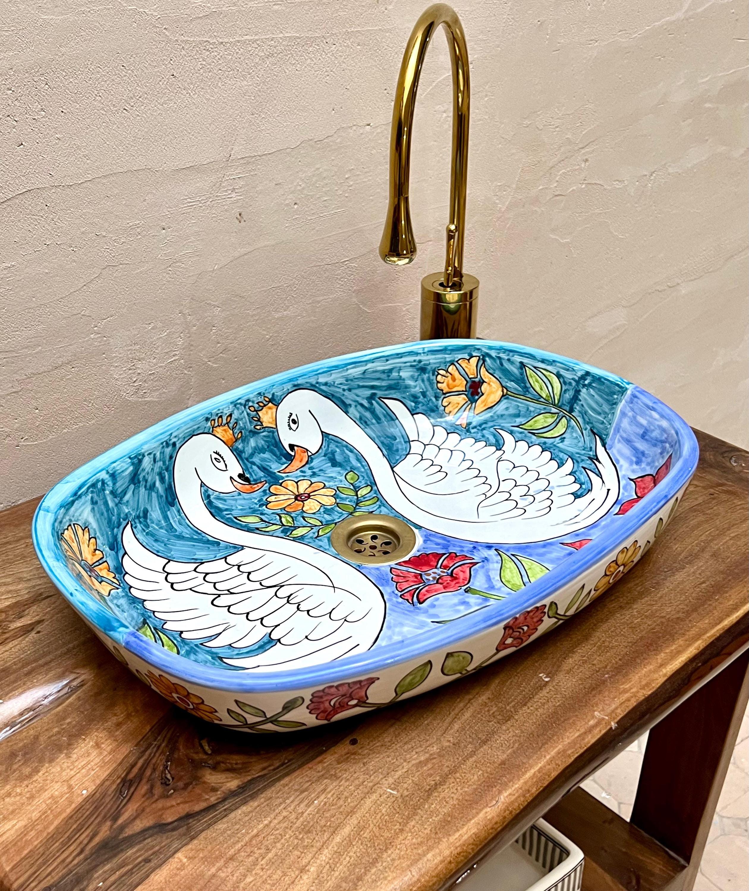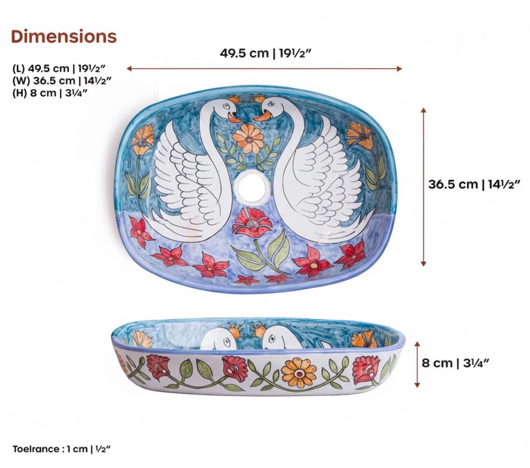 Handmade Moroccan Ceramic Sink: Queen Duck Floral Design, Oval Washbasin