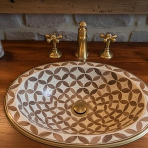 This beautiful Moroccan Oval ceramic sink is handcrafted by skilled artisans in Fes, made from high-quality clay, and features intricate hand-painted designs with a smooth glazed finish. Made from high-quality ceramic, it is durable, easy to clean, and perfect for bathrooms, kitchens, or powder rooms. Its timeless design adds a touch of Moroccan elegance to any space. The sink comes with both silver and copper drains included for free. Each piece is truly unique, and as a result, minor imperfections are to be expected. If you need a different size, feel free to contact us.