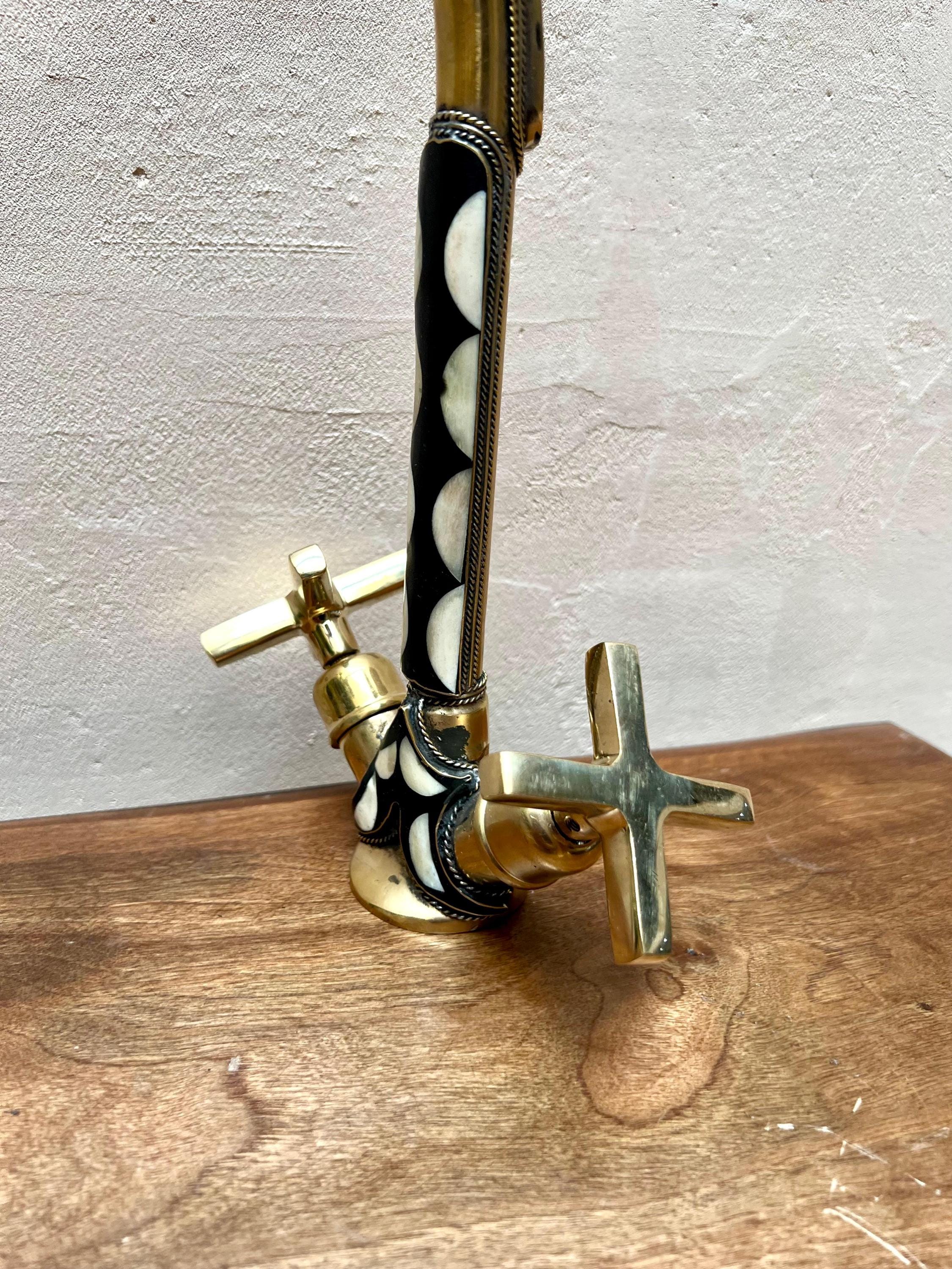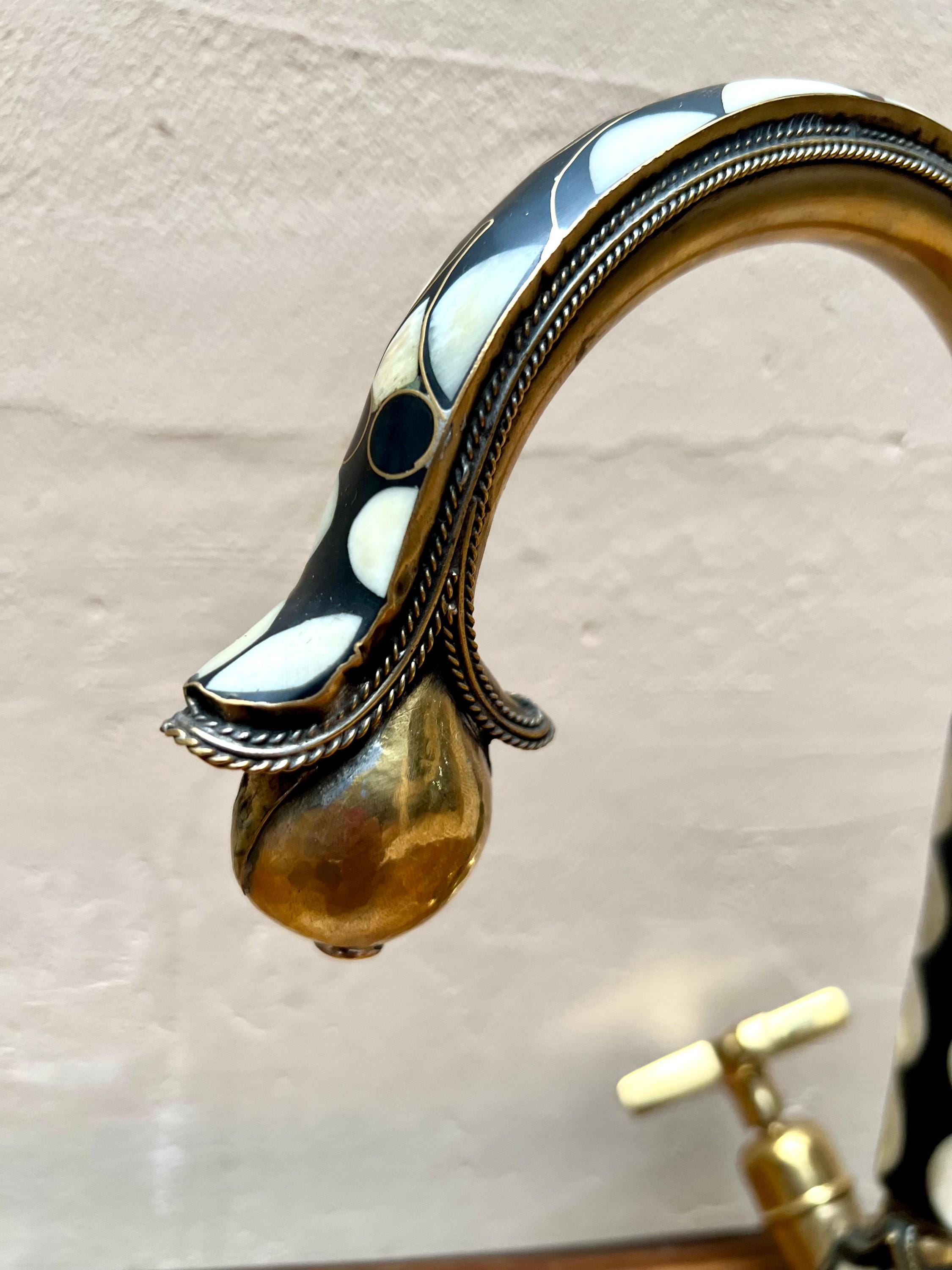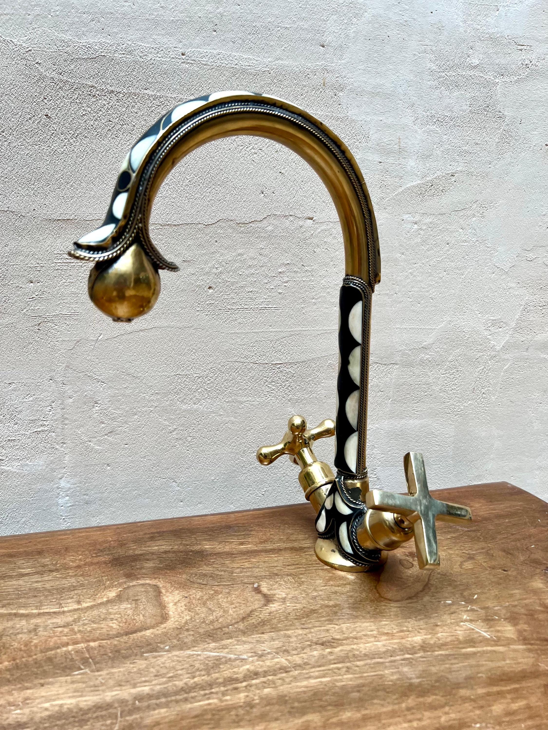 ✔ Material: Brass ✔ Finish: Unlacquered Copper + Black & White Resin ✔ Design: Dual-handle, Swan-neck 🗚 Height: 29 cm | 11.4" ♻ Eco-friendly ♻ 0% lead ❤ MOROCCAN FAUCETS ❤