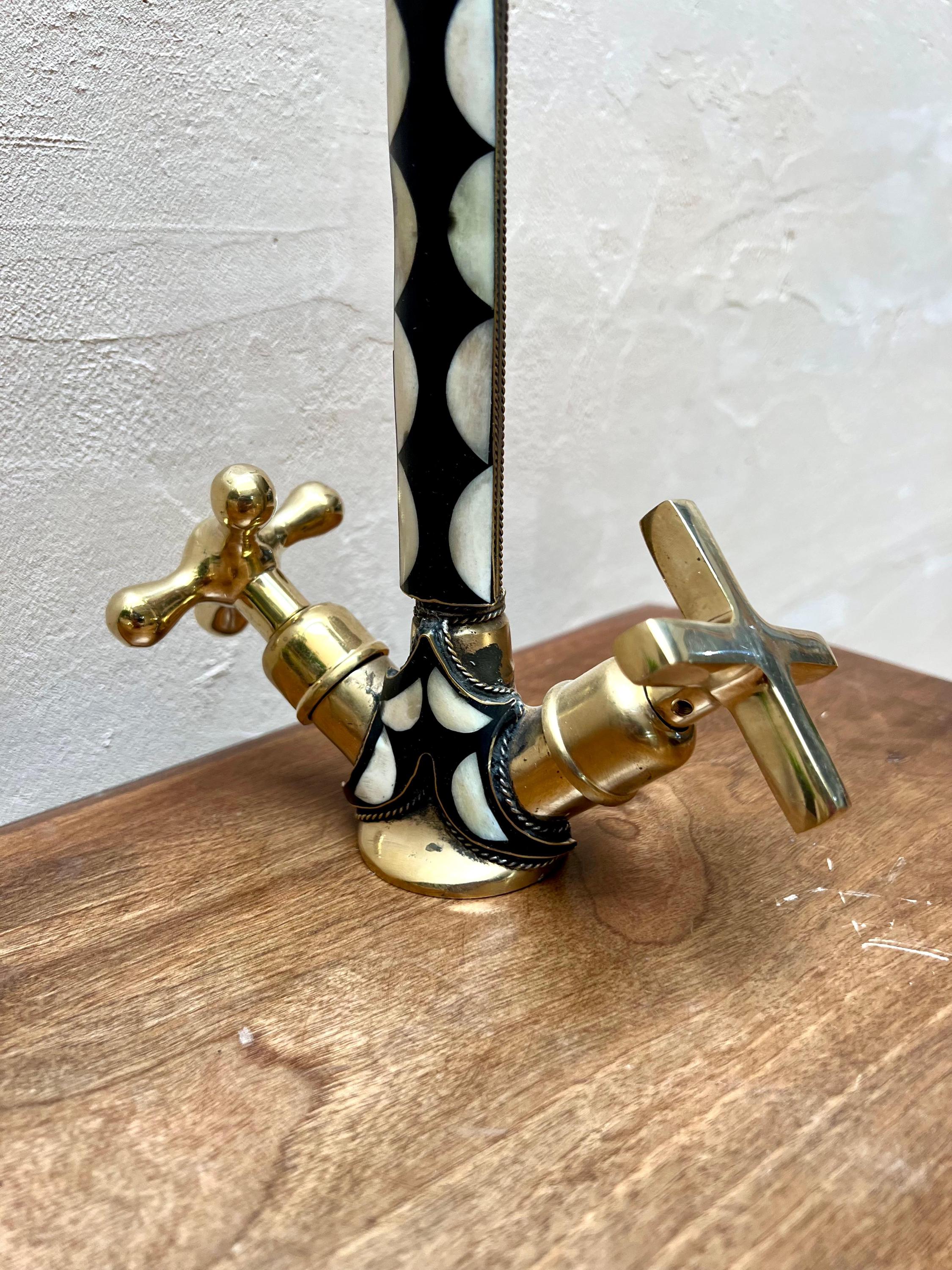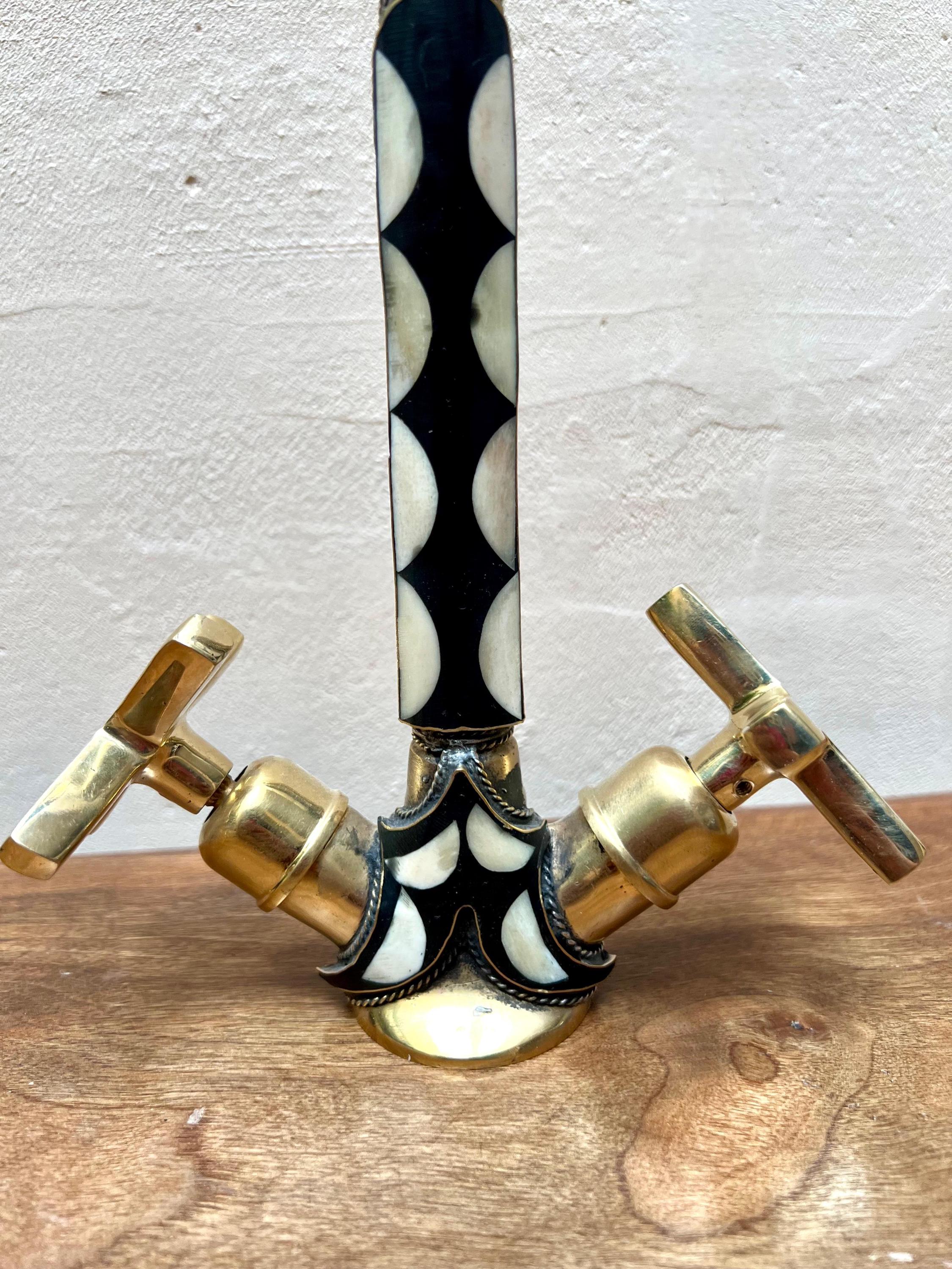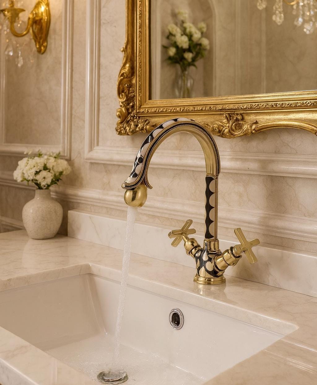 ✔ Material: Brass ✔ Finish: Unlacquered Copper + Black & White Resin ✔ Design: Dual-handle, Swan-neck 🗚 Height: 29 cm | 11.4" ♻ Eco-friendly ♻ 0% lead ❤ MOROCCAN FAUCETS ❤