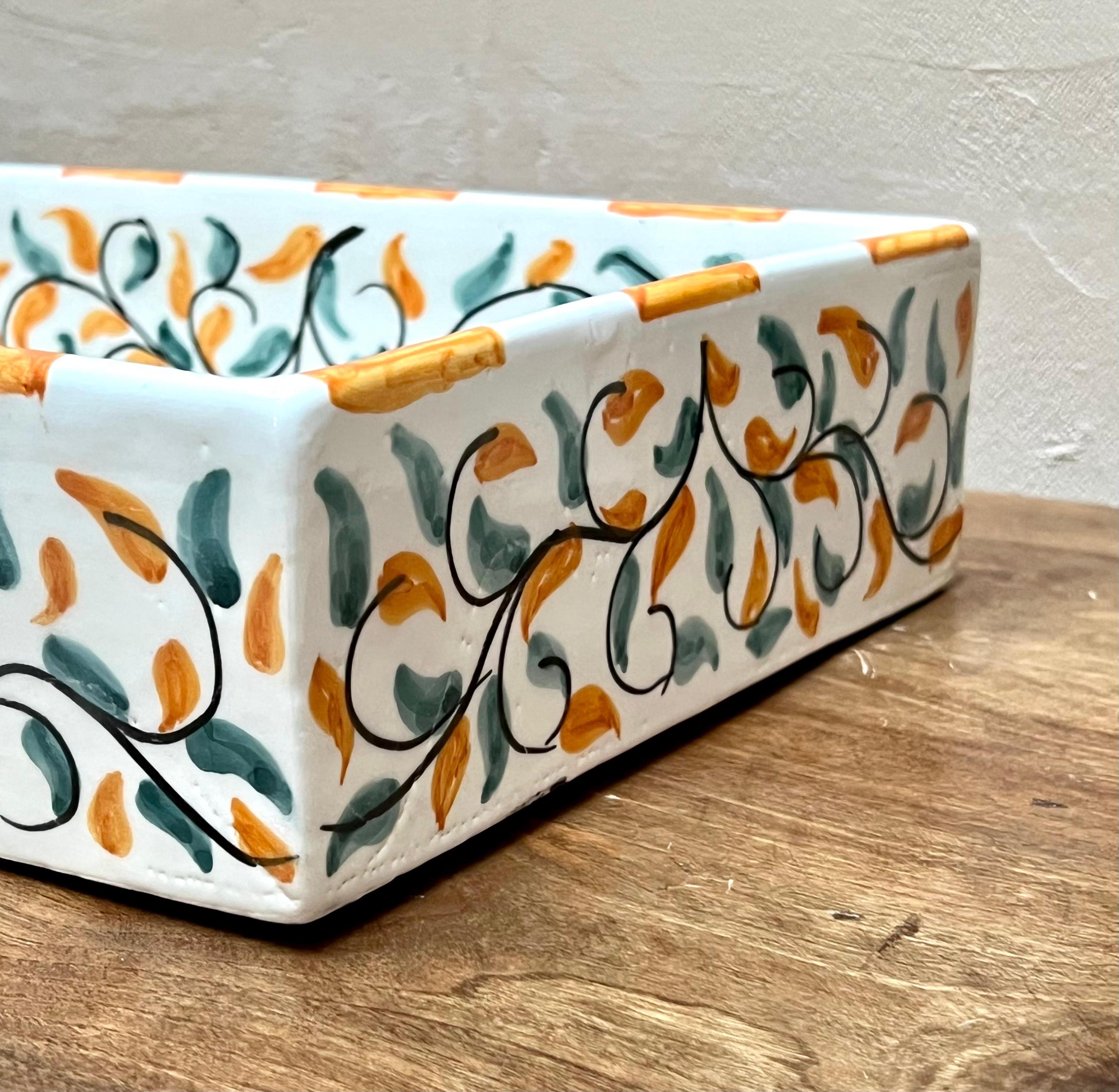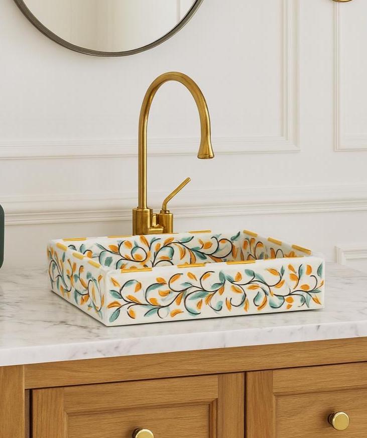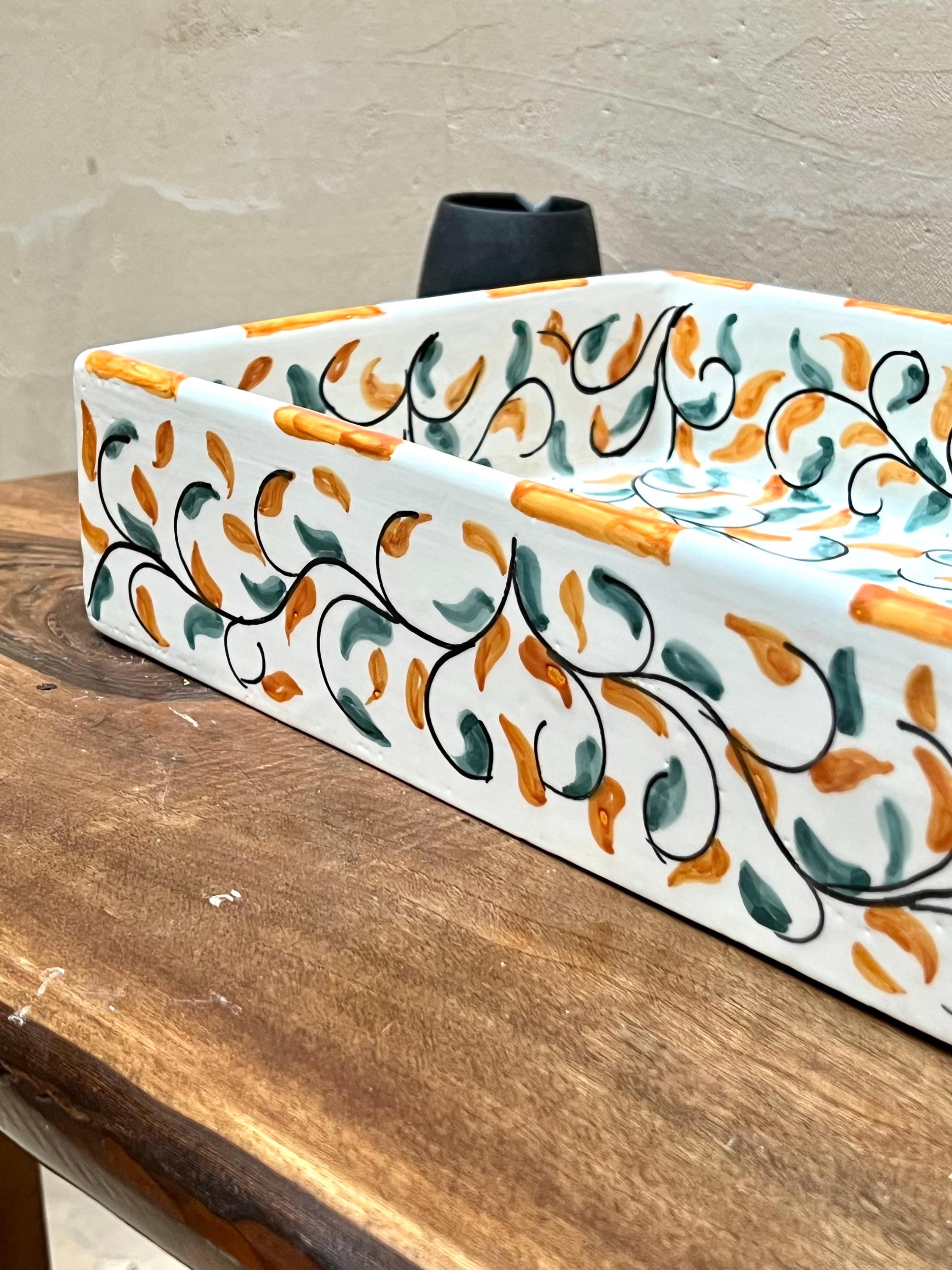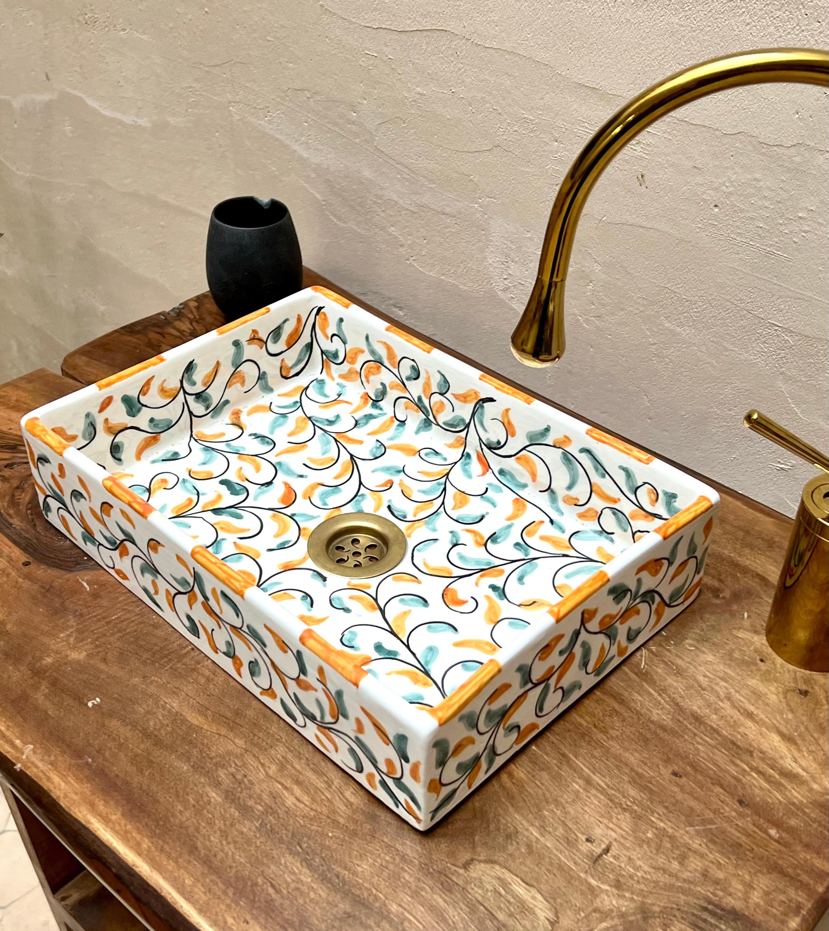 Handmade Moroccan Ceramic Sink: Leaf Design, Rectangular Washbasin
